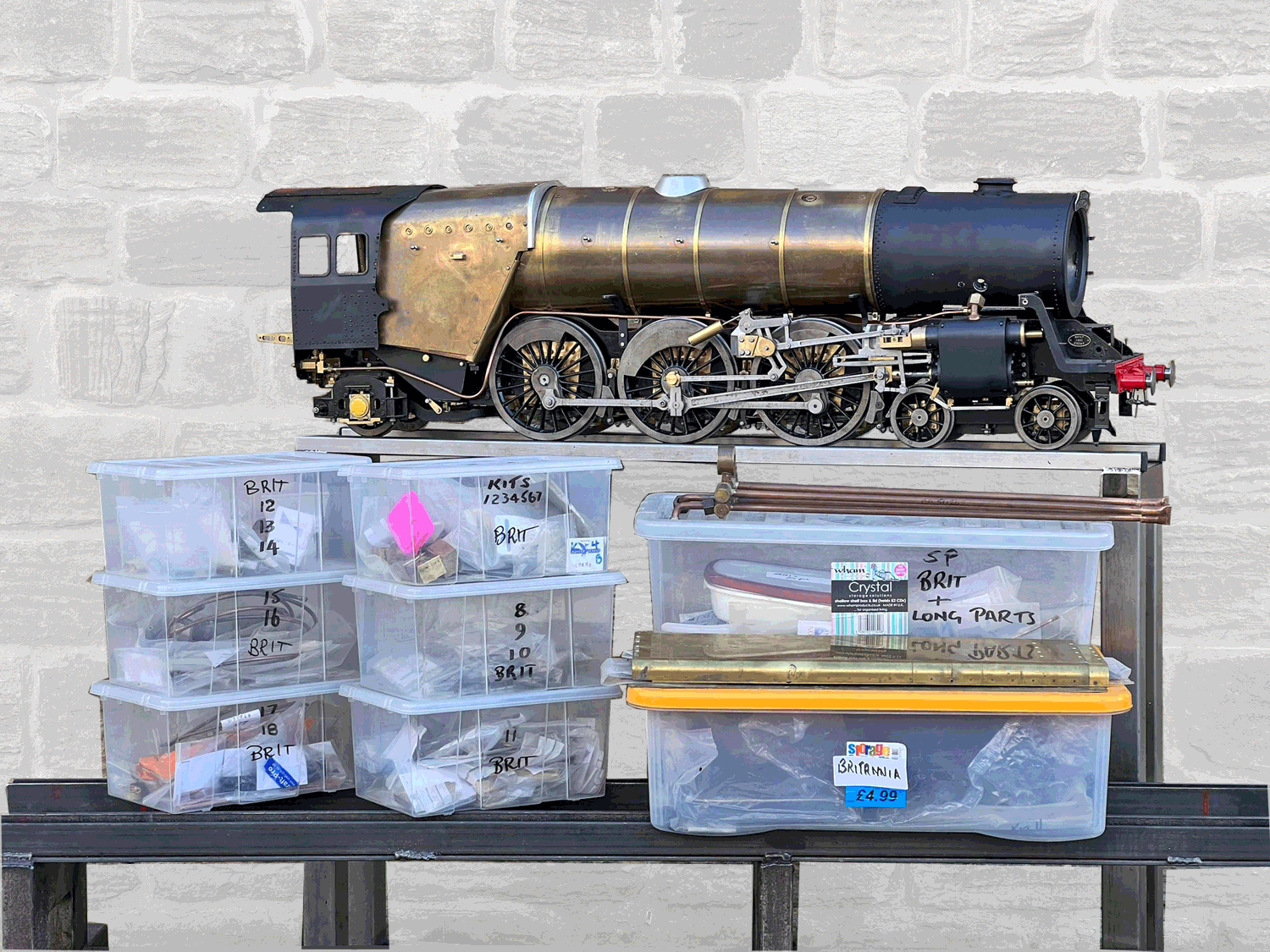 Here we have a very well on the way, and checked complete kit for a Winson/Modelworks 5″ Gauge BR Britannia.  Assembly so far has been done by a very meticulous and experienced model engineer builder of Modelworks kit locomotives, and the project has now sadly stalled due to ill health.