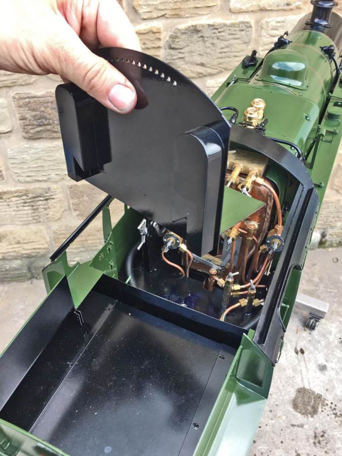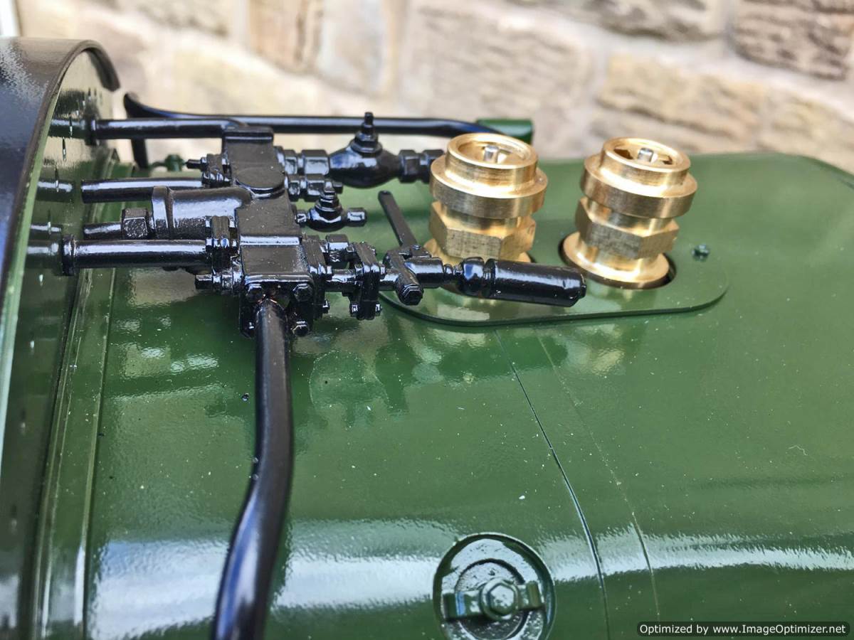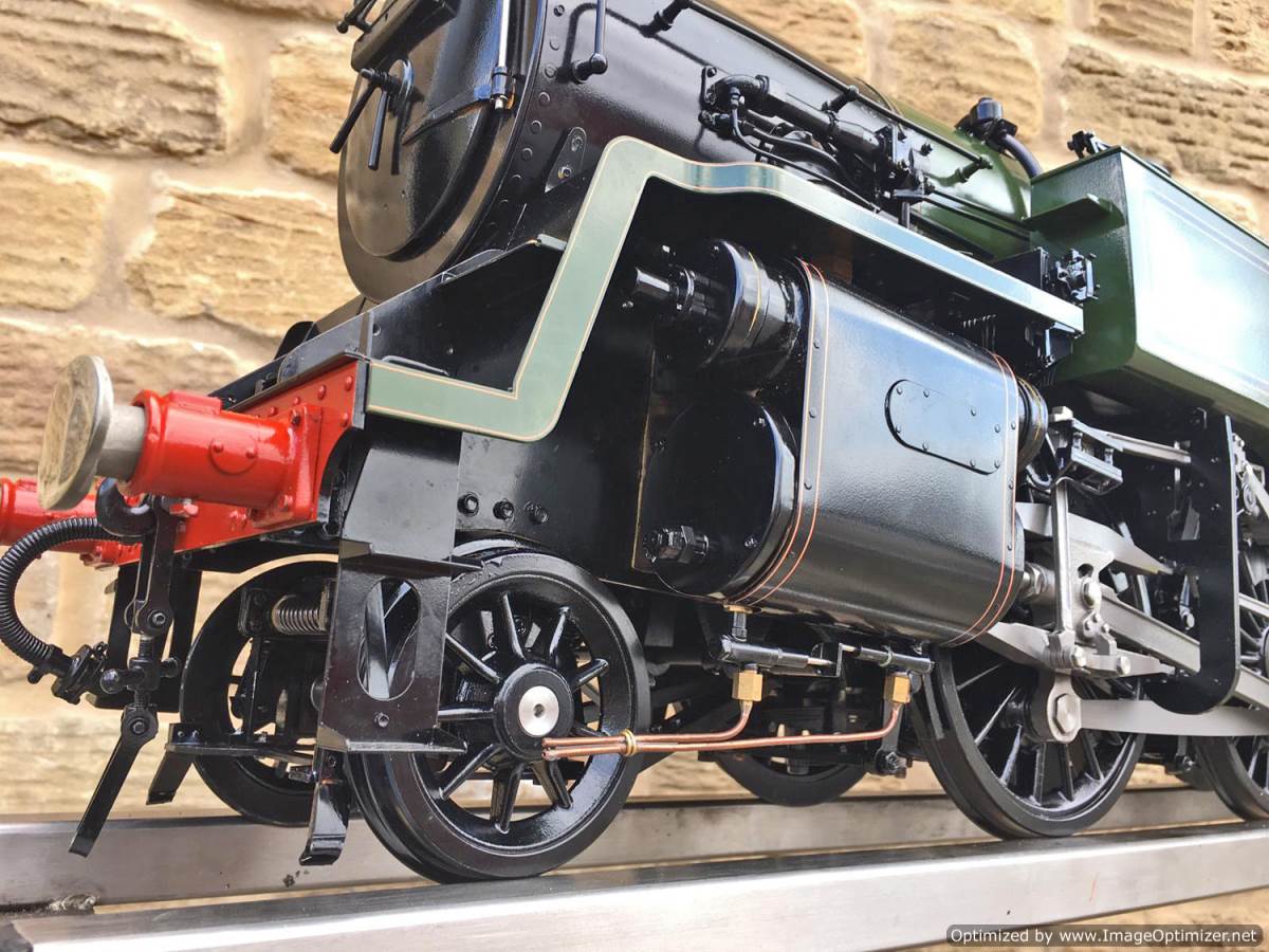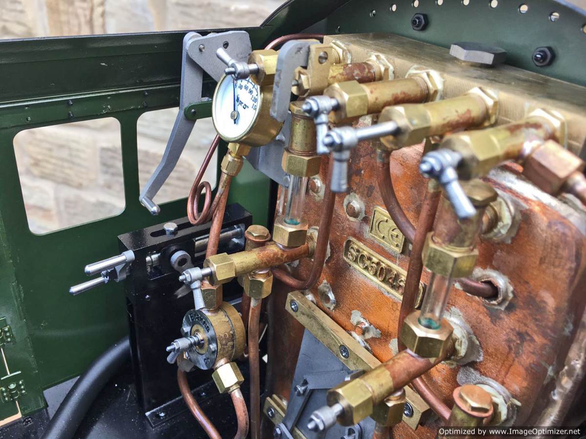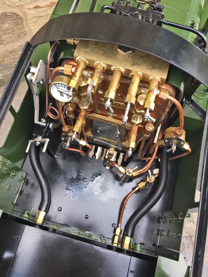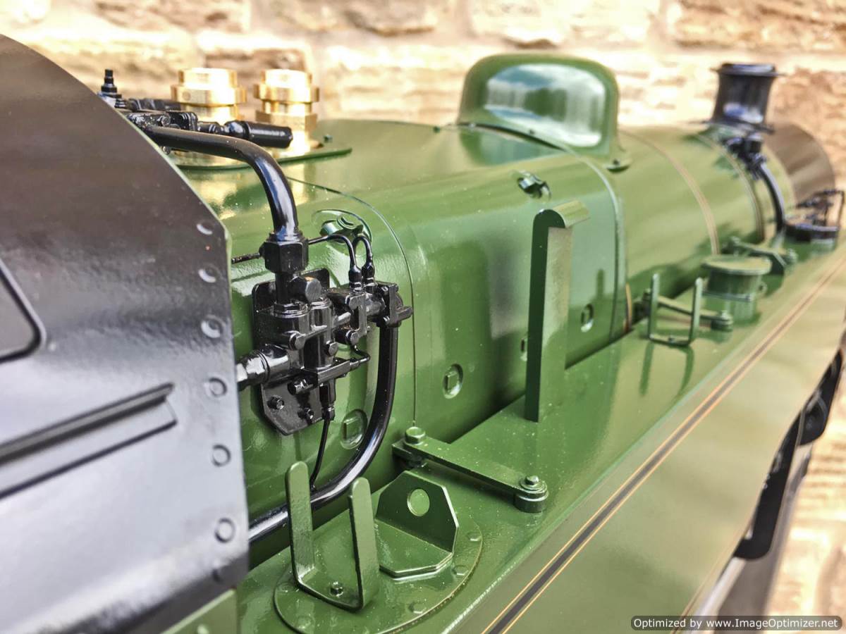 The model has a silver soldered copper boiler, CE marked and hydraulically tested to twice working pressure. Included are the full compliant of certificates and paperwork including an EU Declaration of Conformity.  The loco was inspected by Mike Pavie before initial delivery including a 1.5 x hydraulic boiler test to ensure there was no leakage from the boiler fittings. The model was also run on air as part of that inspection.