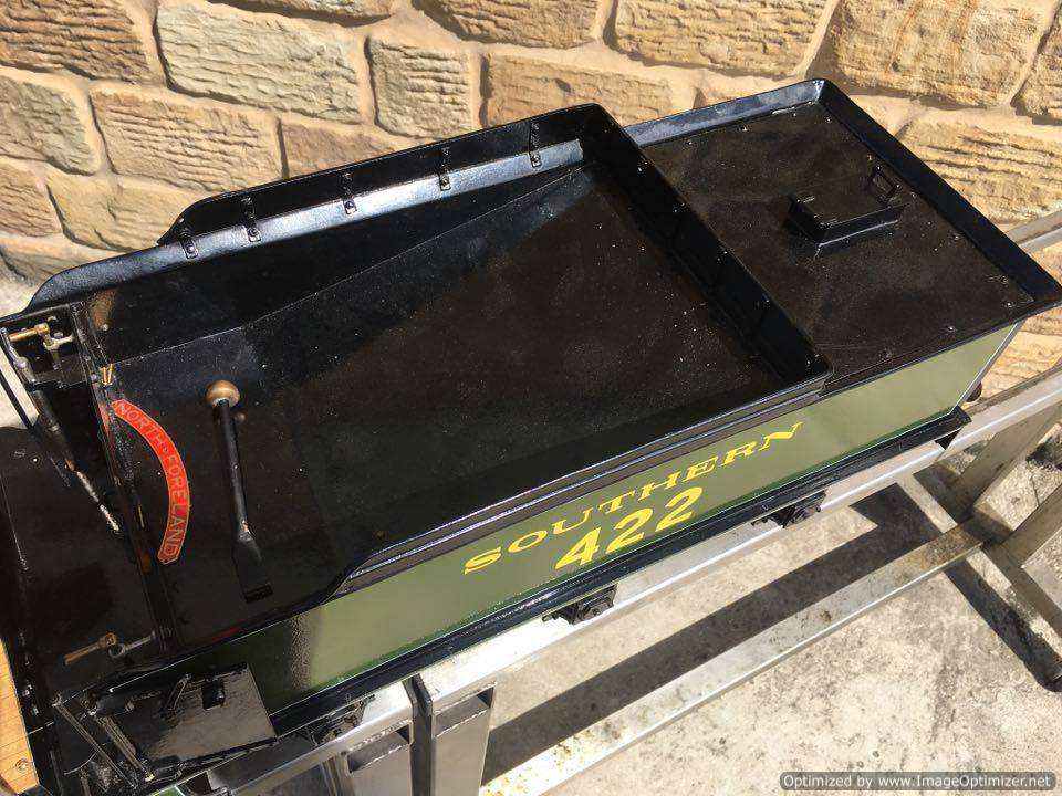 The photos show the model as she is right now, and to be fair, we would probably let her go as she is for around the £8500 mark if pushed,.... but we are planning a full rebuild, new boiler cladding to the correct shape, new and lower cab to the correct shape, detailing here n there, cylinder covers, splasher mounted oil boxes,.... new paint into gold lined Marsh Umber, because it's such a beautiful and brilliant livery. The price below therefore is for the locomotive finished into that condition, not as you see her here.