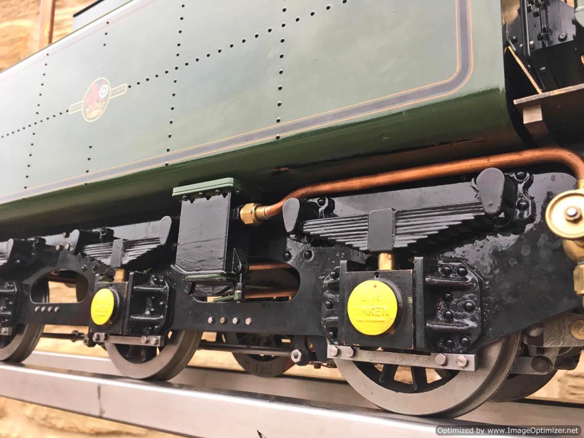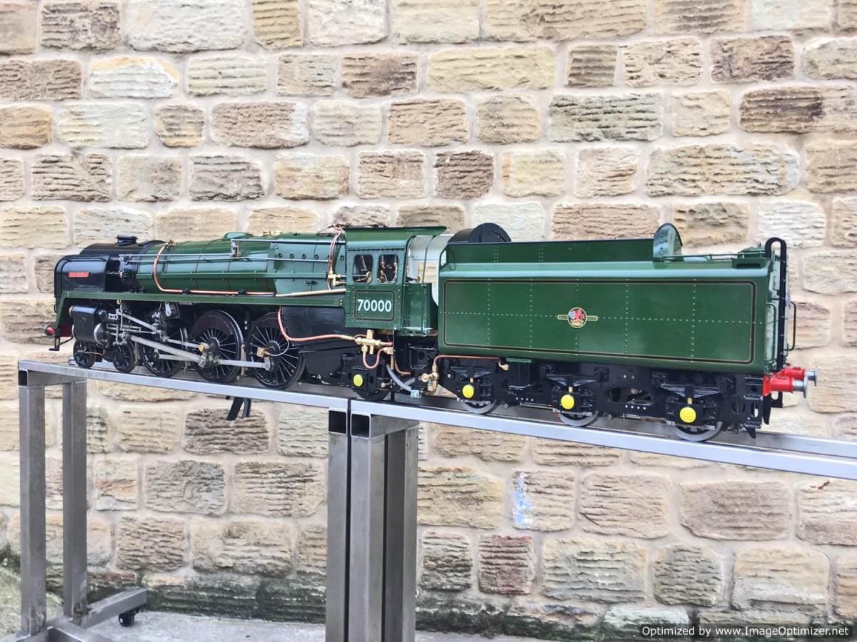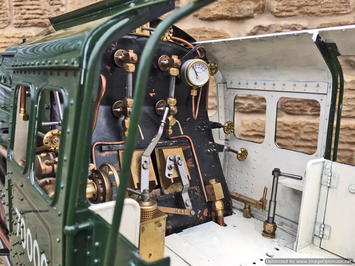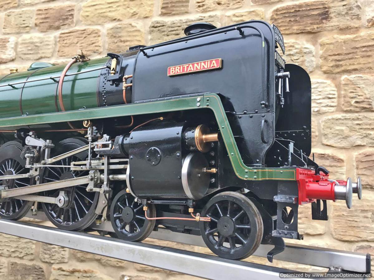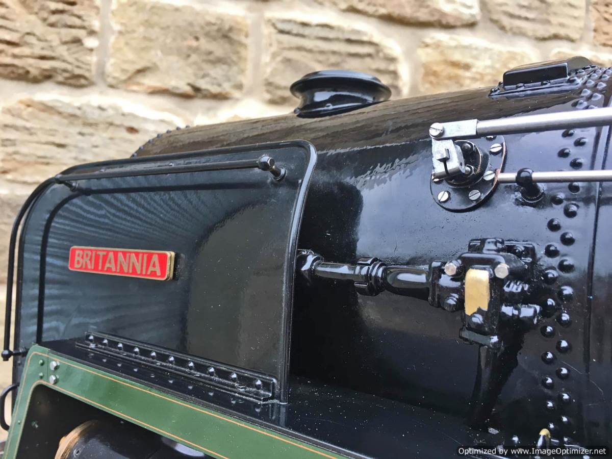 We think she’s to a combination of the Perrier and the Spink drawings, and obviously contains no Modelworks bits at all. Most of the Hewson detailing castings are there, including the scale reverser, and pleasingly there is even a fully balanced water scoop on the tender! Fitted with a pair of chunky injectors, an axle pump with a footplate mounted bypass valve, and of course a hand pump in the tender. We've got a couple of little jobs to do before she's ready to leave, but all in all this is a beautifully made, professionally boilered brand new Britannia and she's ready to play.
