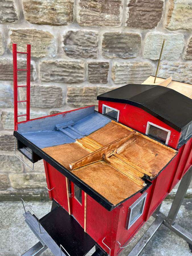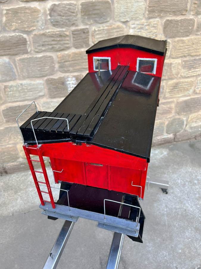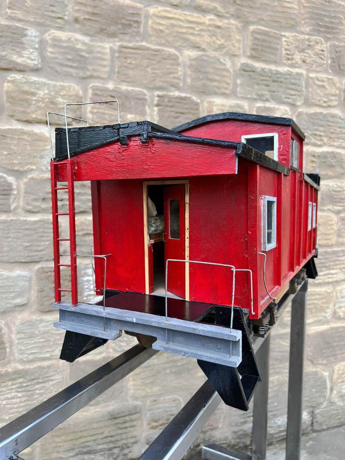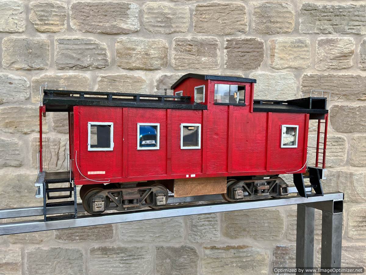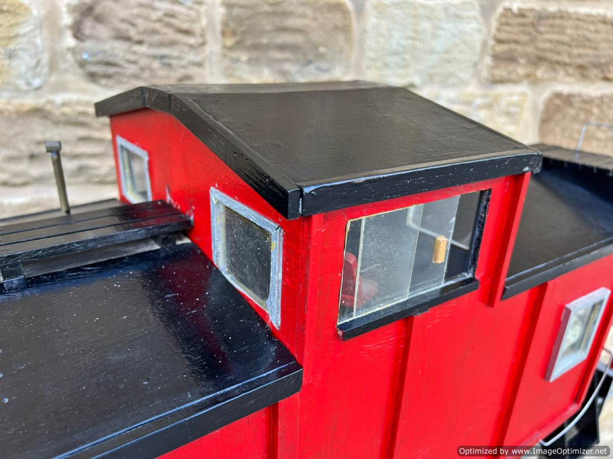 Here we have a a 5" gauge American style 'caboose' guards van. All scratch built wood construction and nicely made, with attractively detailed solidly cast bogies. All free rolling and ready to be pared with that 5" American loco!