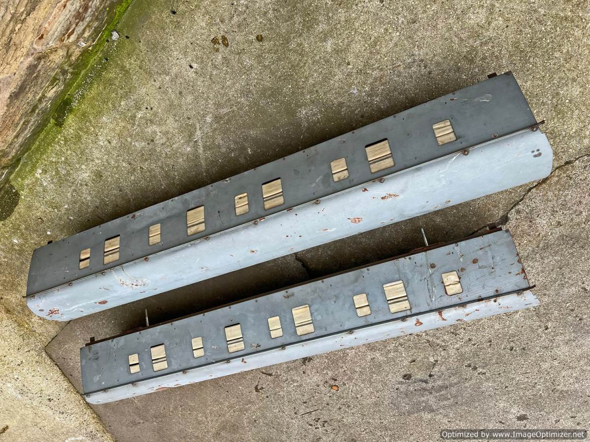 Here we have a pair of Brent Hudson produced 5" gauge MK1 BG full brake carriages. Laser cut zintec bodies welded to the steel tube chassis, complete with the bearer plates and bogie centre pins. The cast resin ends are also present. These are really solidly constructed so they will support the load of passengers riding on their roofs.