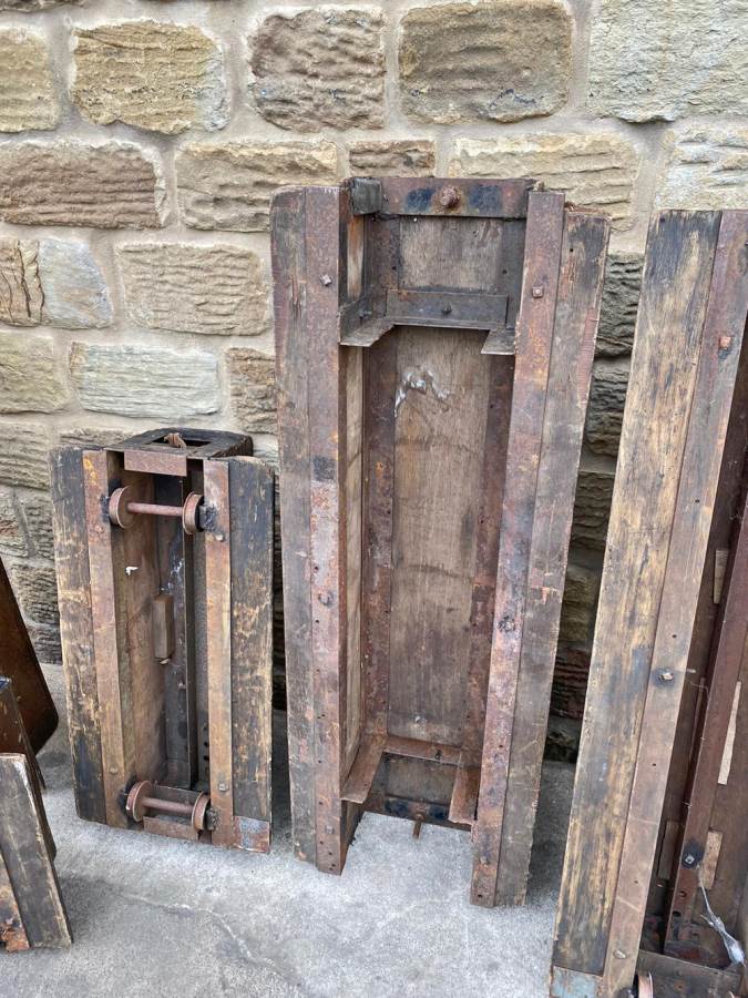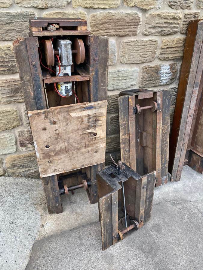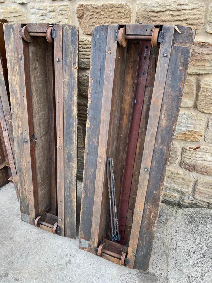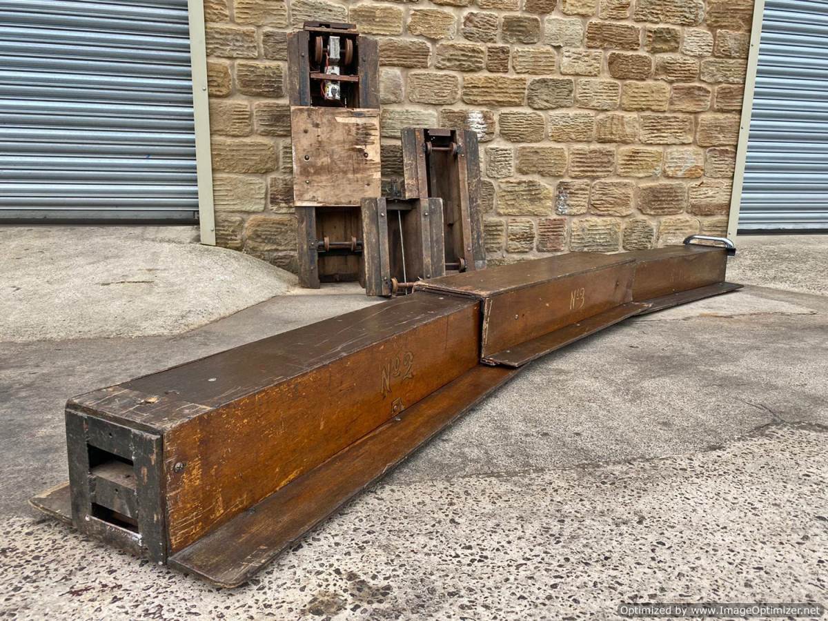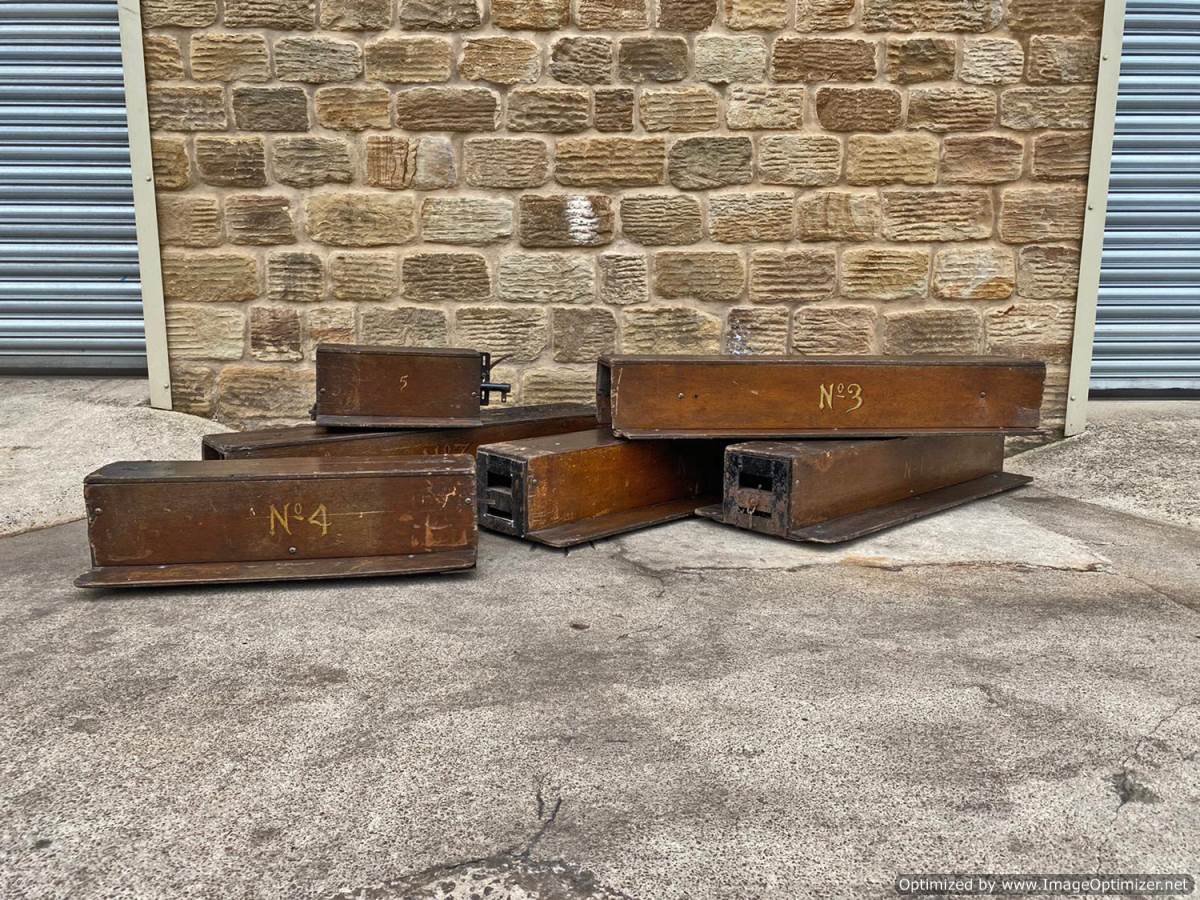 Here we have a mixed and interesting rake of ground level 5" gauge driving trucks and carriages. It's clearly an incomplete set of wagons that have originally made up a complete train. A mixture of independent ready to roll trucks and articulated, suspended centre sections, a motorised unit and a single axle trailer unit that appears to be designed to latch onto either the rear of a loco or indeed one of the carriages. They are all showing their age, but the woodwork is still both viable and attractive. The whole thing, whilst clearly requiring work to bring back to former glory, has a lovely old fashioned feel to it. It's a pretty little rake that deserves to find the TLC it needs.