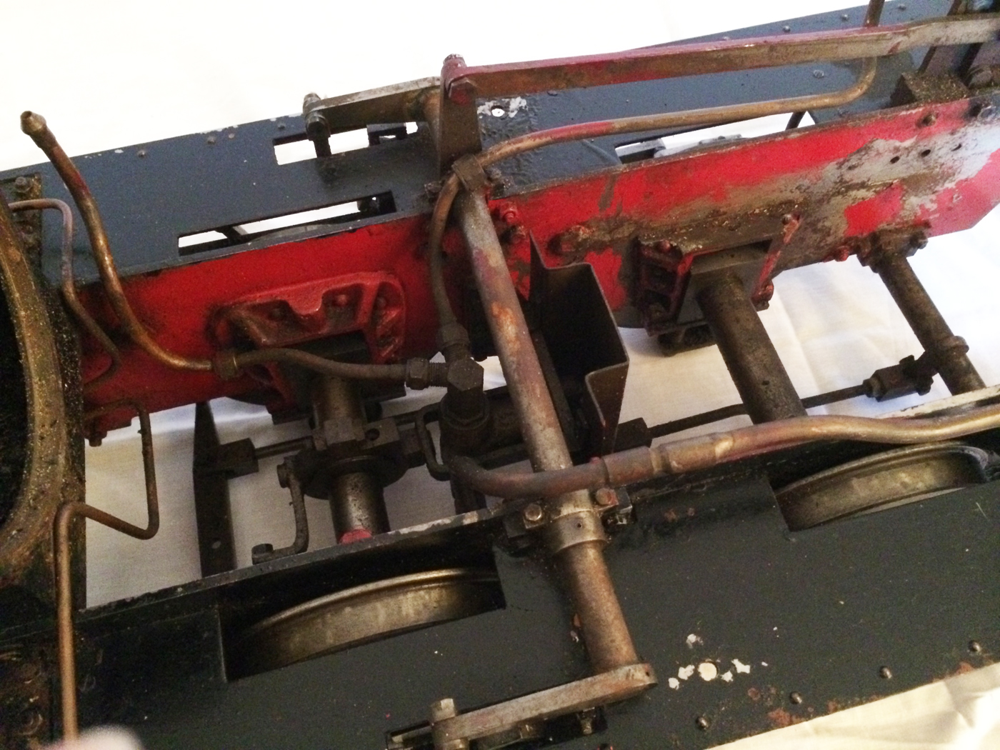 This has been a running model, but has been stripped to receive it's new boiler. Mechanically everything has been well built, and is still very tight. The boiler is new and un-steamed, and has been built by a careful model engineer. We have pumped it up to twice working pressure and all is just as it should be. It will need plumbing up, the backhead fittings adding and a regulator making and fitting. The superheaters will need to be made and then of course it will need the boiler cladding making. It will also need a grate making and fitting, the ashpan making, probably the odd little other bit and bob that is bound to pop up,.... and then the whole thing would benefit from a nice splash of fresh paint.