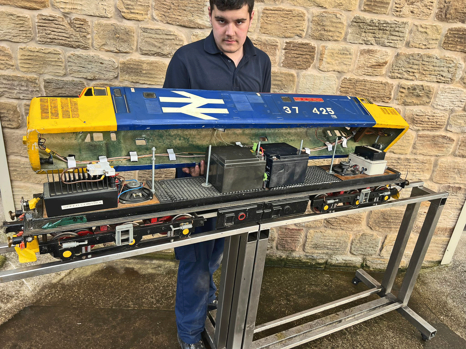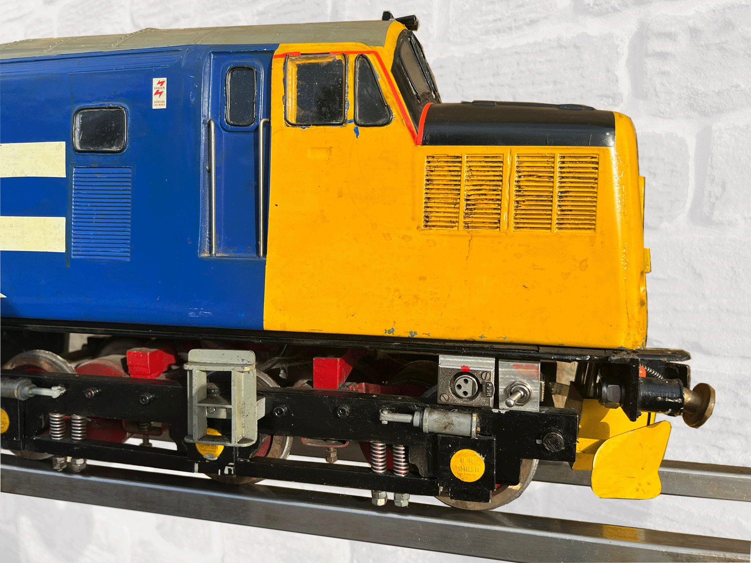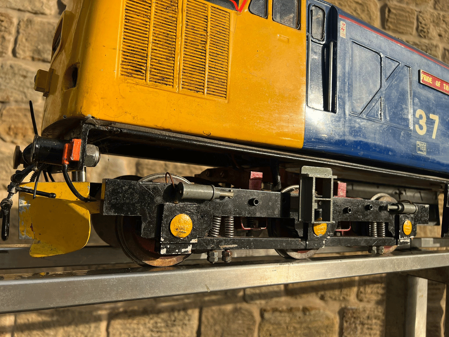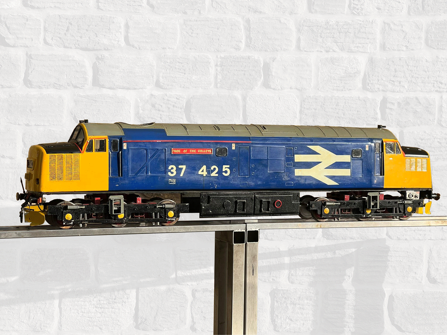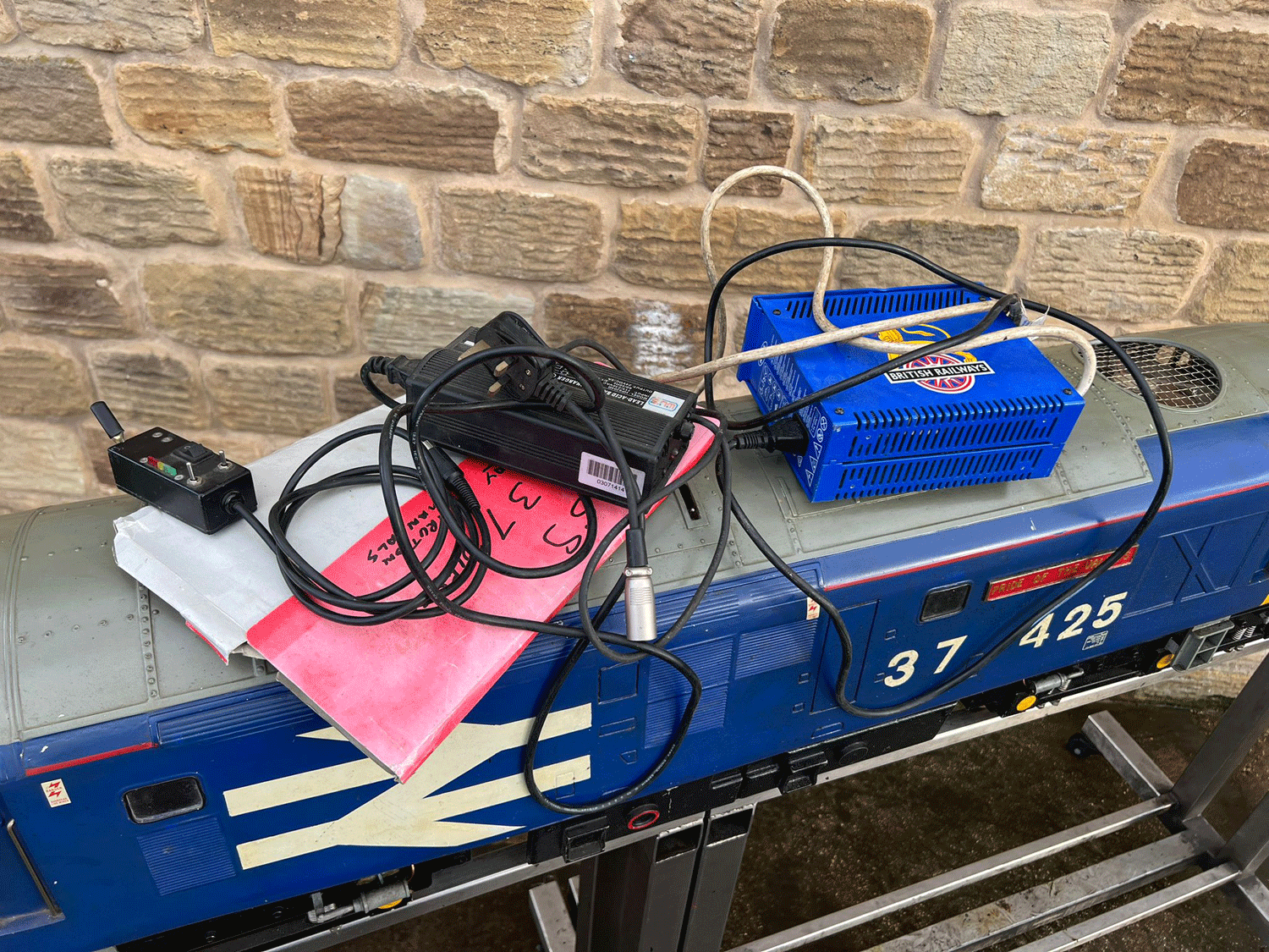 Here we have a 5" Class 37 Diesel (battery electric) all ready to run. Fully fitted with a sound card, working fan and of course directional lights. It is complete with batteries but they could do with renewal.
