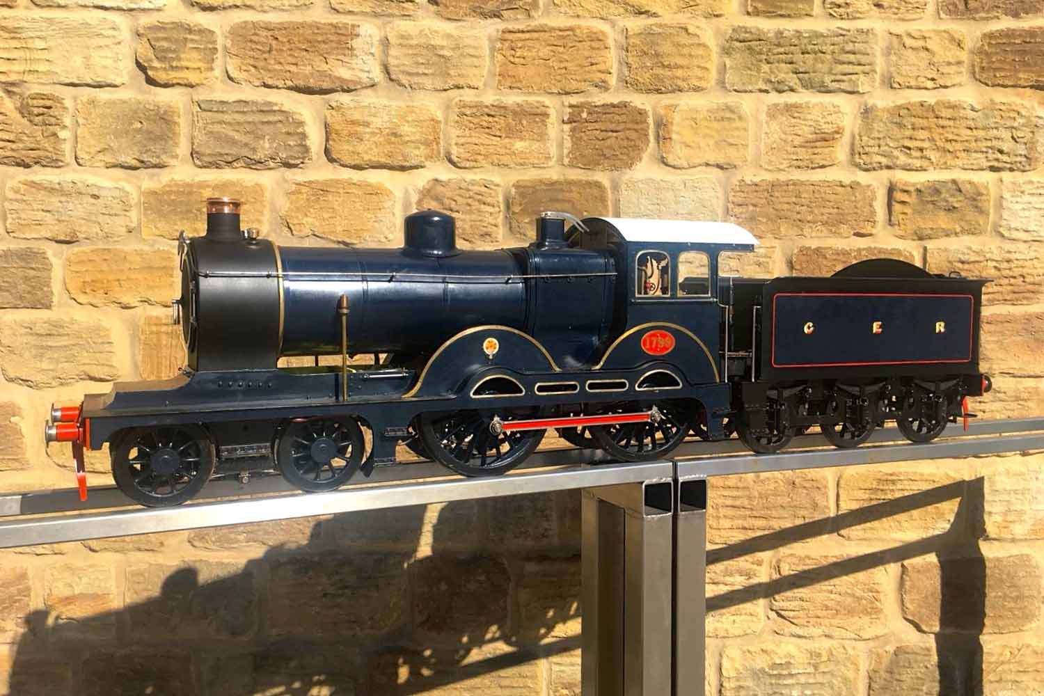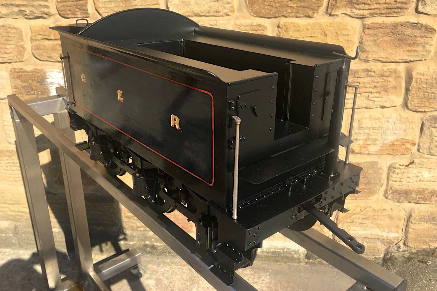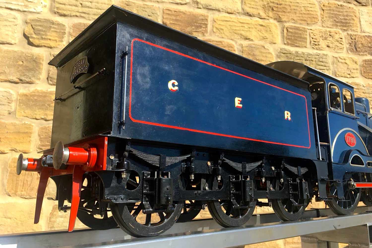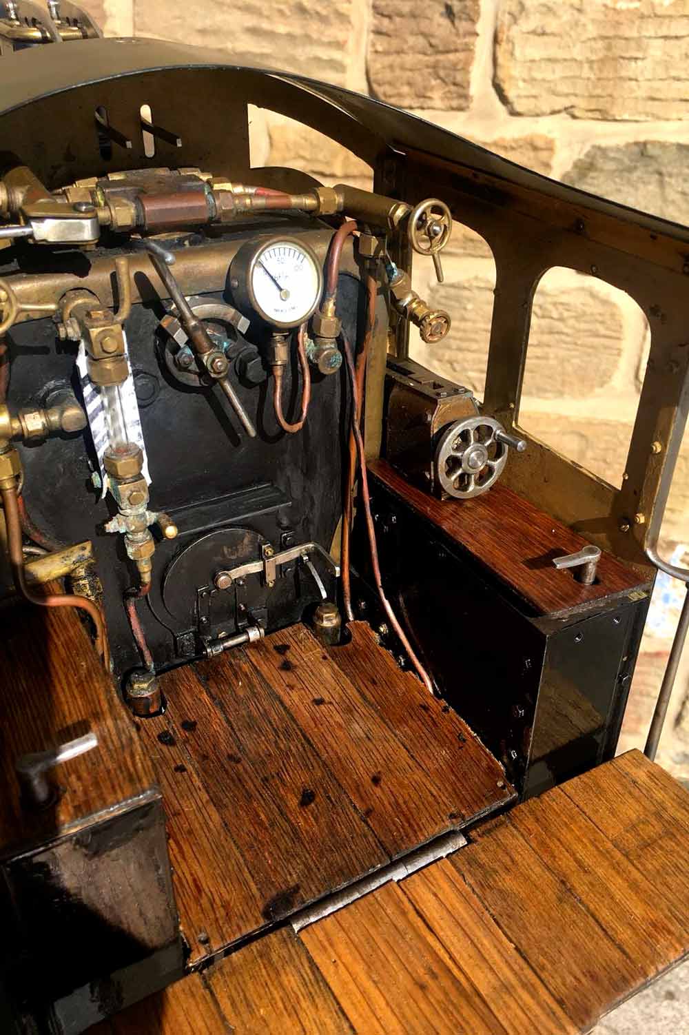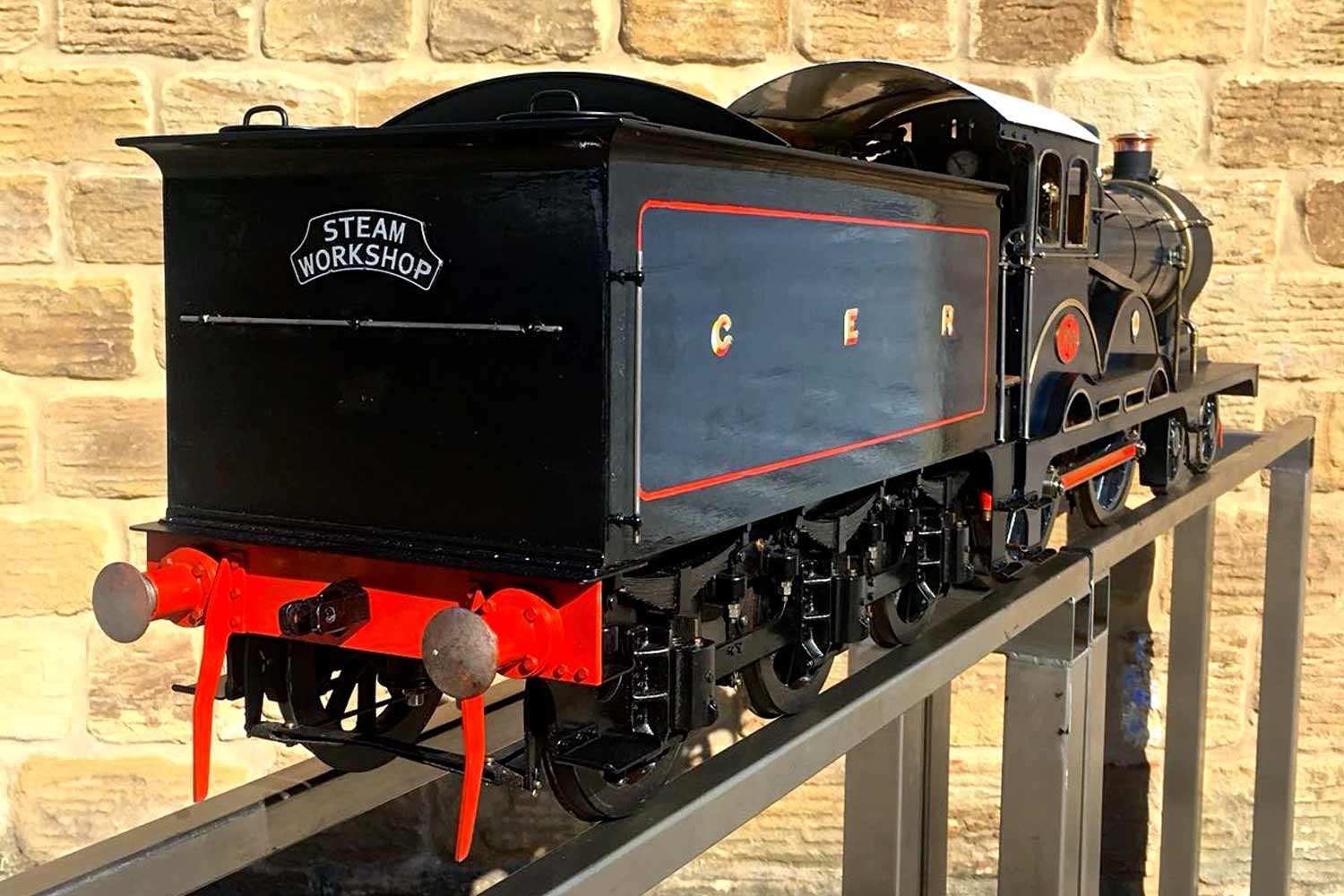 Here we have a particularly well made 5" gauge GER Claud Hamilton 4-4-0. This one is a bit special in that it's a very rare, possibly unique works drawings built loco, not built to the Martin Evans design. Martin Evans essentially designed his Claude along similar lines to his Maid of Kent, with the valves on top of the cylinders and using MoK wheels amongst other things. This one is correct. The valve gear is arranged as per the original loco and done with a good deal of finesse and model engineering skill, the wheels are correct and of course it's got lots of lovely detailing too. Backhead detailing is certainly a pretty decent stab at the real thing, accepting the obvious practicalities of it also being a running and usable loco.
