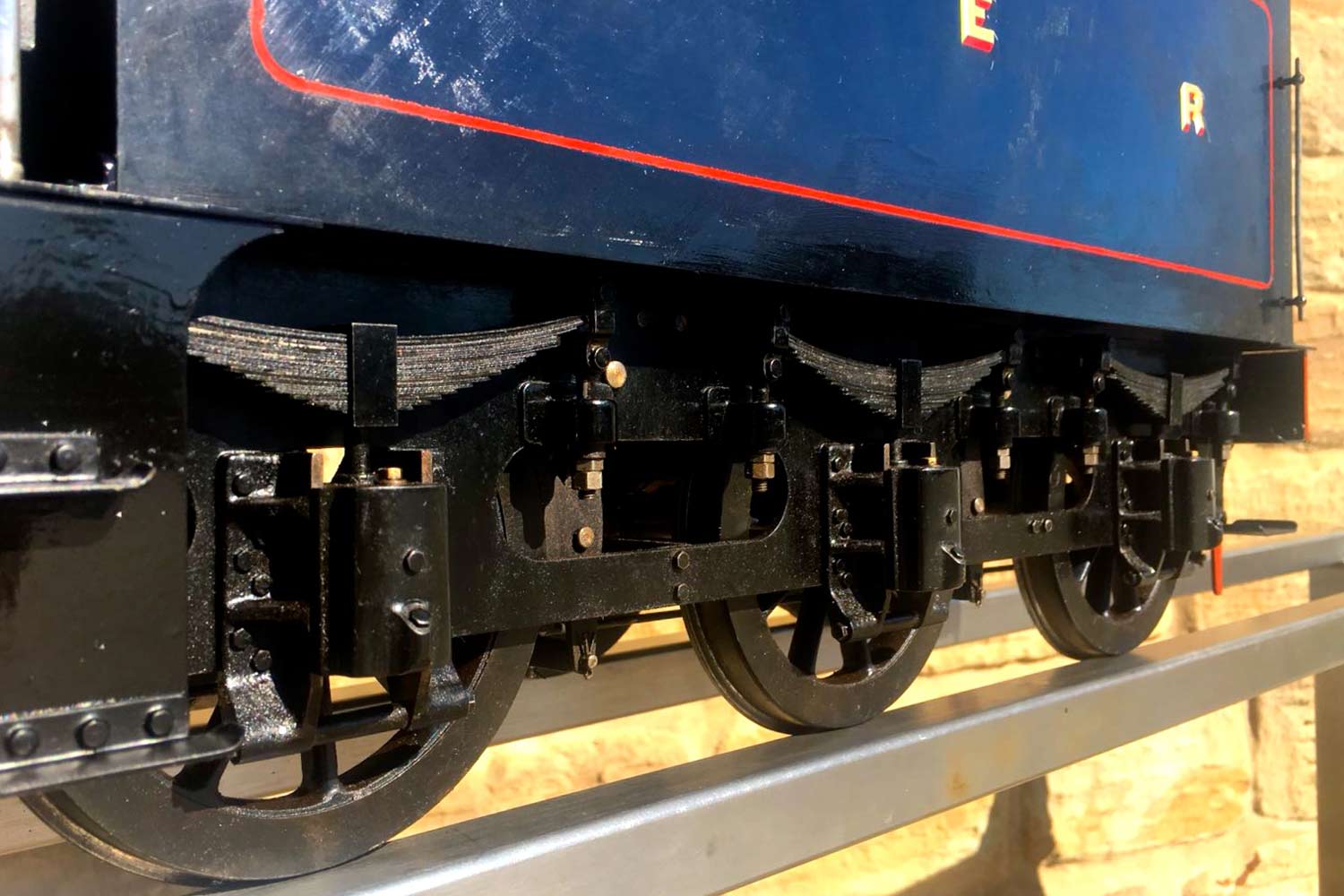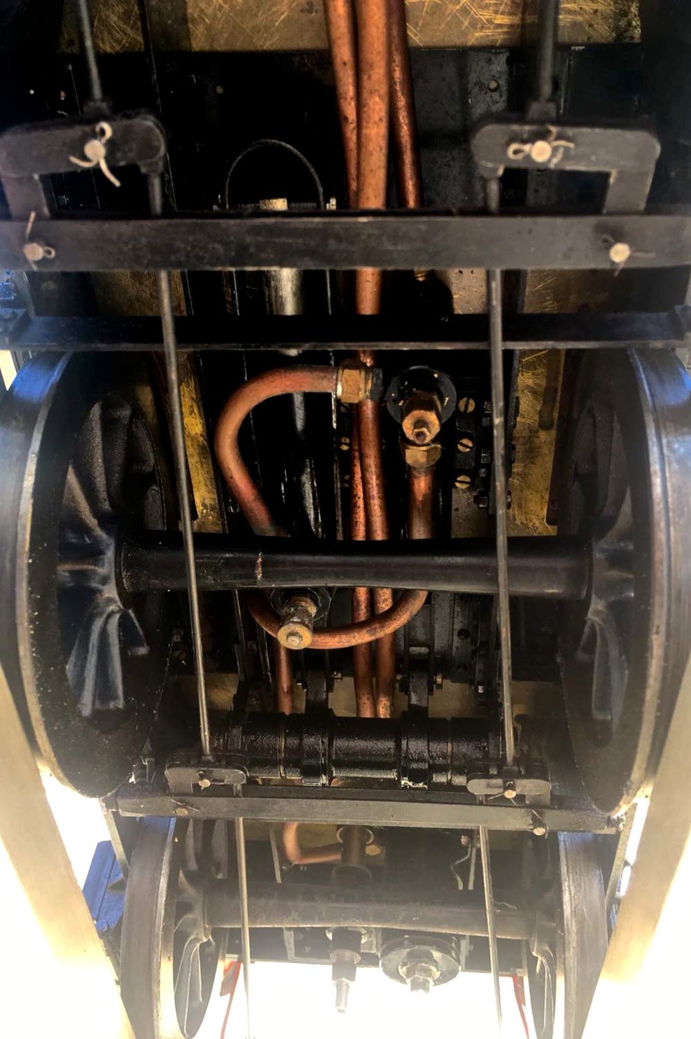Fitted with twin vertical injectors behind the cab footsteps, there is also an elaborate double acting hand pump and water filtration system under the tender, with a spur to take an auxiliary water feed from a driving truck should you have one. Lubrication is both mechanical under the front running boards, and displacement under the cab floor, with a sight feed on the footplate. In short, this is a really lovely model, and although it's not something we normally write, the photos don't seem to do it justice. The dark blue of the livery and the light cream of the inner frames have made the camera struggle to pick up the beautiful detail and finish on the valve gear.