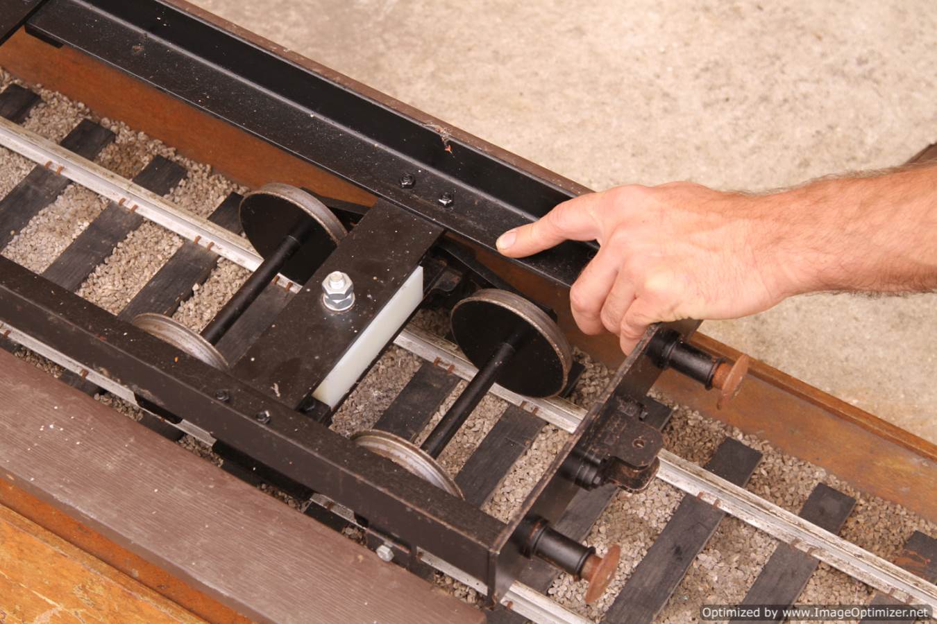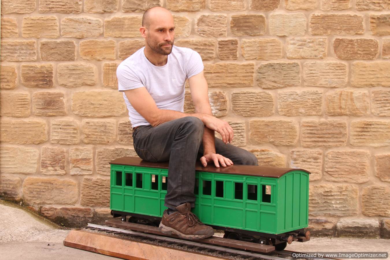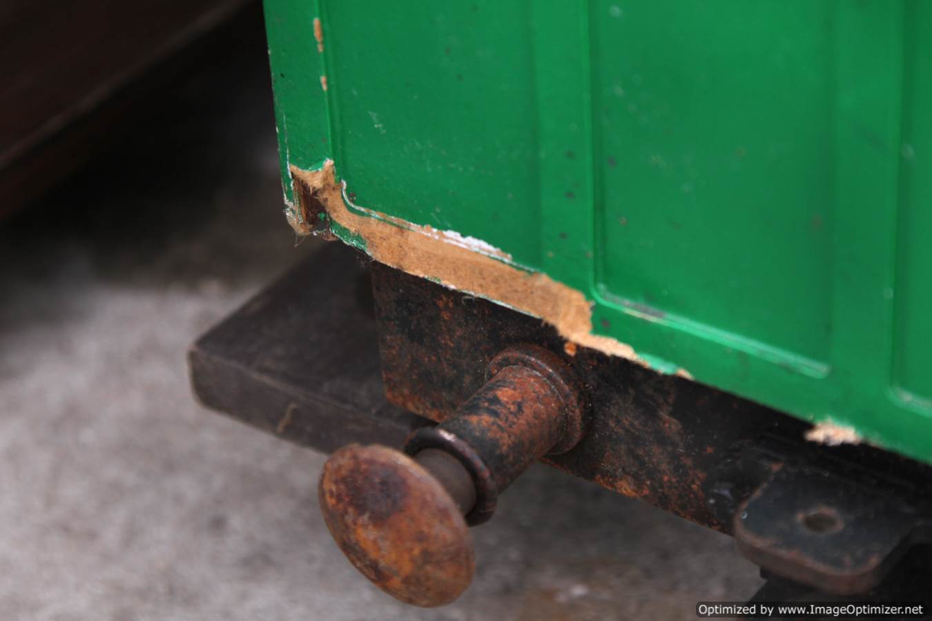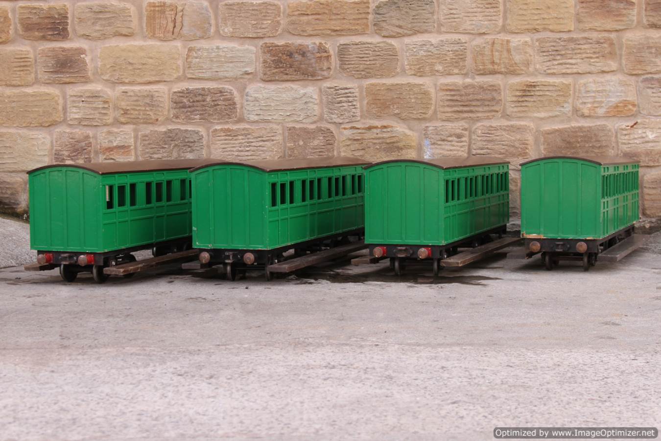 Here we have a full on 5" gauge garden railway set of narrow gauge ride on stock. These are all made commercially by Ride on Railways, and nicely done they are too. There is the odd scuff, scratch and chip on the bodies here and there (we've included a couple of close ups to show you the sort of thing). Nothing that wouldn't be significantly improved with a pot of touch up paint.