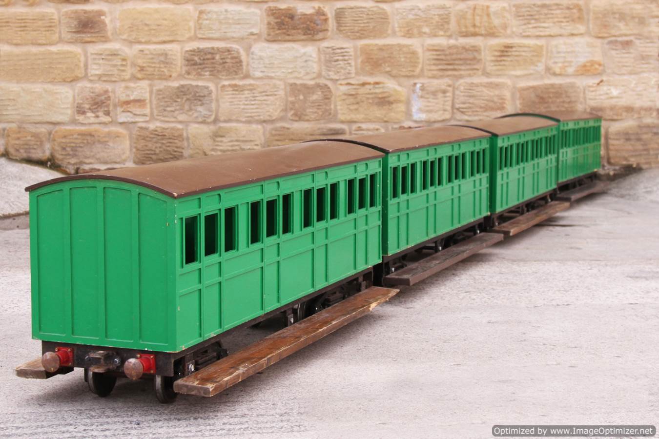All the bogies roll very freely, and the chassis generally are in very good condition as are the seat cushions. We would be pleased to see these all go as one lot to someone who would like to instantly populate their garden railway ready to go,..... indeed the extra couple of wagon bodies if all bought together enable you to run a mixture of different trains without having to buy an expensive 'bottom end' for every body.