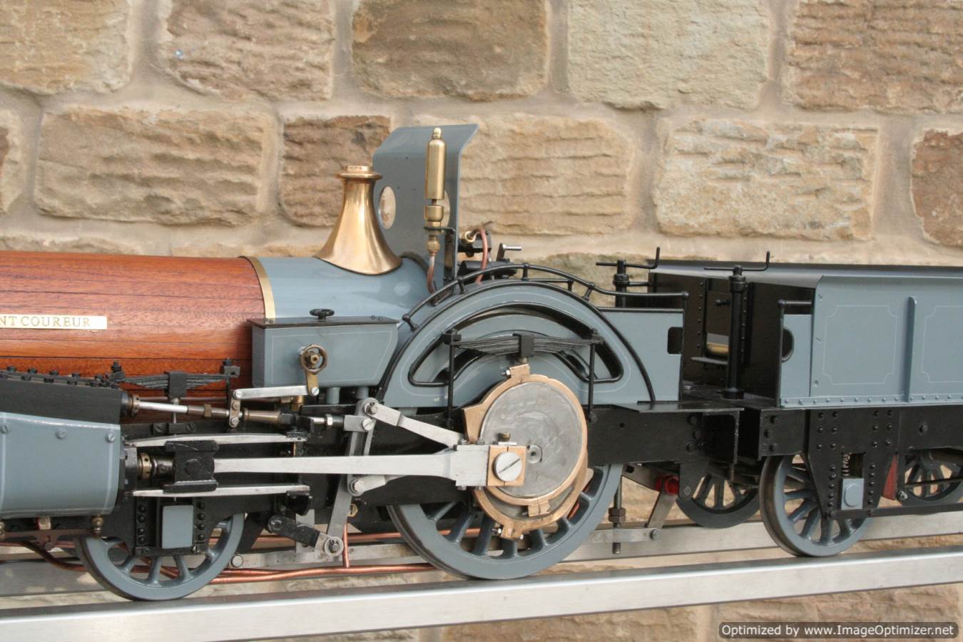 Here we have our first 5" Crampton locomotive built to Brian Arridge's design. A particularly mechanically satisfying engine to watch fly past is a Crampton. The general locomotive layout has taken the name of the designer Thomas Crampton, who, contrary to popular belief wasn't actually a Frenchman, but a Britt. The format of loco was, however far more popularly received by the French and other European countries, far more of the type being built for use in those countries than here in the UK. There were however a good number built by Stevensons and other early companies such as Tulk & Ley. Britain had around 50 of the type running in the 1850s, serving several different railway companies up and down the country, and although this model is not specifically a true representation of any particular prototype, it certainly captures the feel and essence of the full size design.