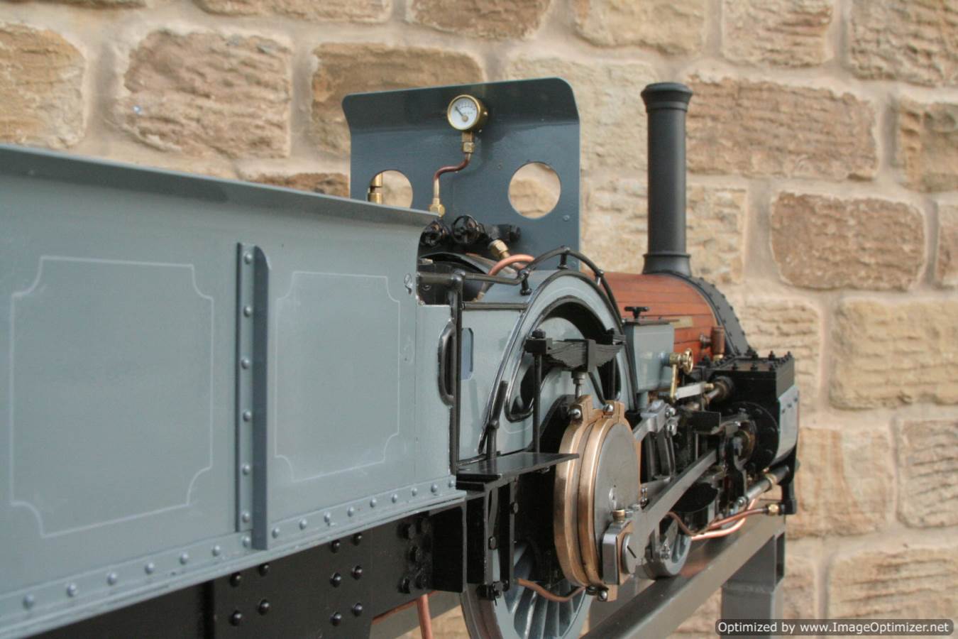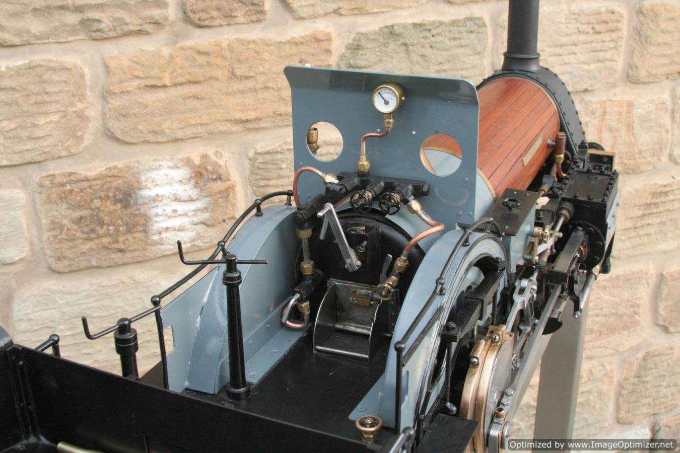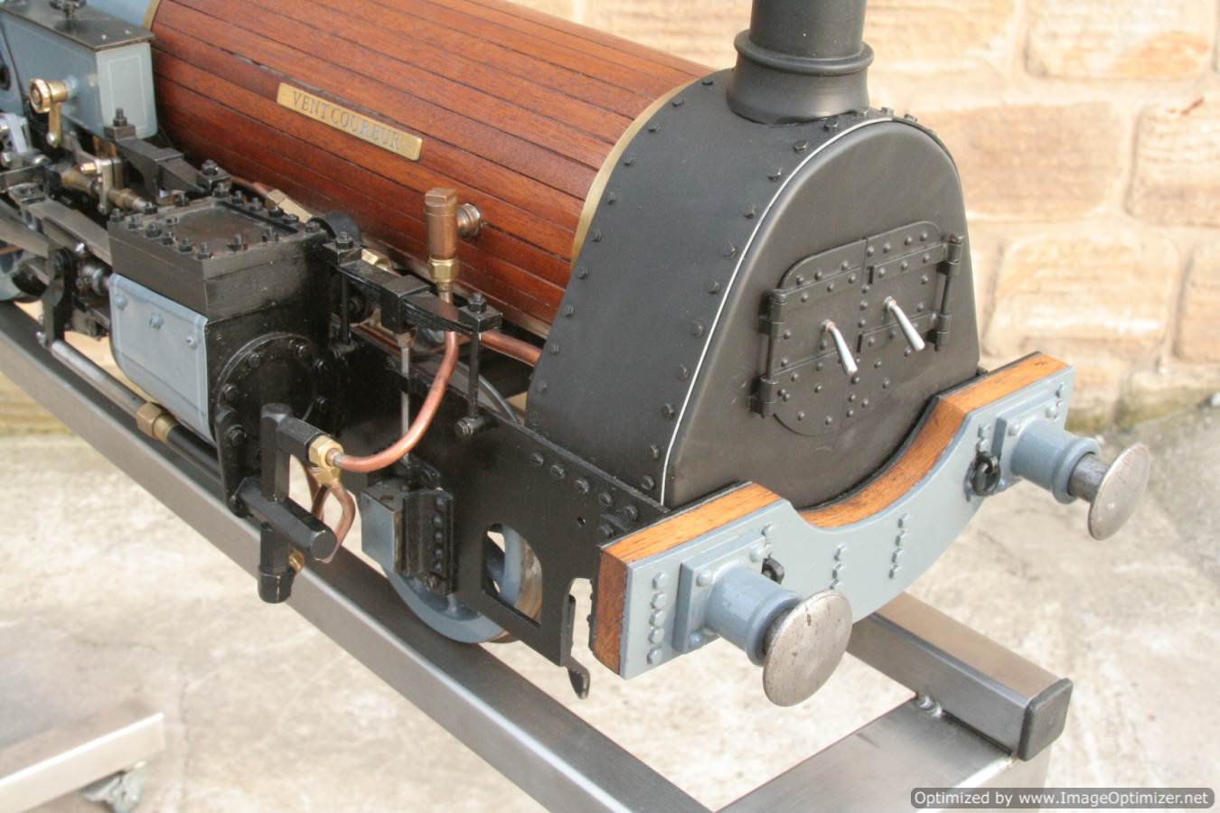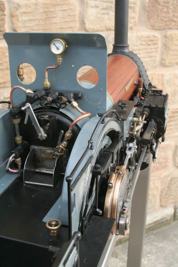 To the model!  This is one that we have had a little hand in.  When it cam in it was missing a few little bits and bobs and in a particularly odeous shade for insipid green!  So we took the decision to give it a quick strip down, re-paint and re-build, as we reckon there's not enough Cramptons out there with a decent finish on em!  For some reason they always seem to be a clumsy green colour, instead of something a little more Victorian and inspiring.  We've been waiting for the right loco to go into grey for some time now, and this one has become it!  So, mechanically she's had brand new pistons and rods, and a general strip down and re-build.  The injector set up is all brand new, and the water pump has been overhauled.  The boiler was tested outside the frames and unclad and comes with a full fresh 4 year hydraulic cert, and a fresh steam cert can be sorted as soon as she leaves.