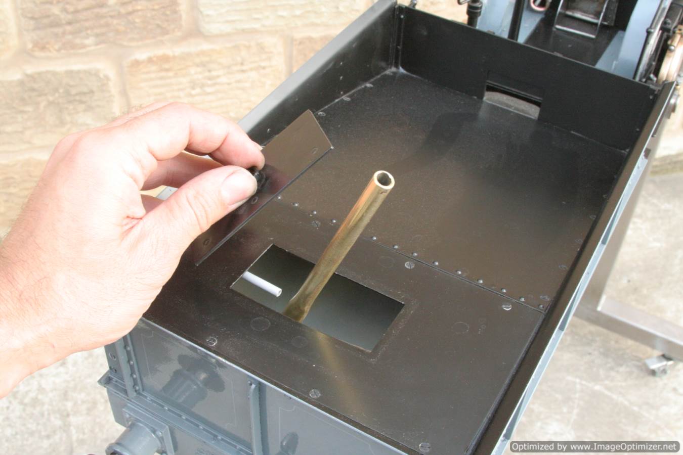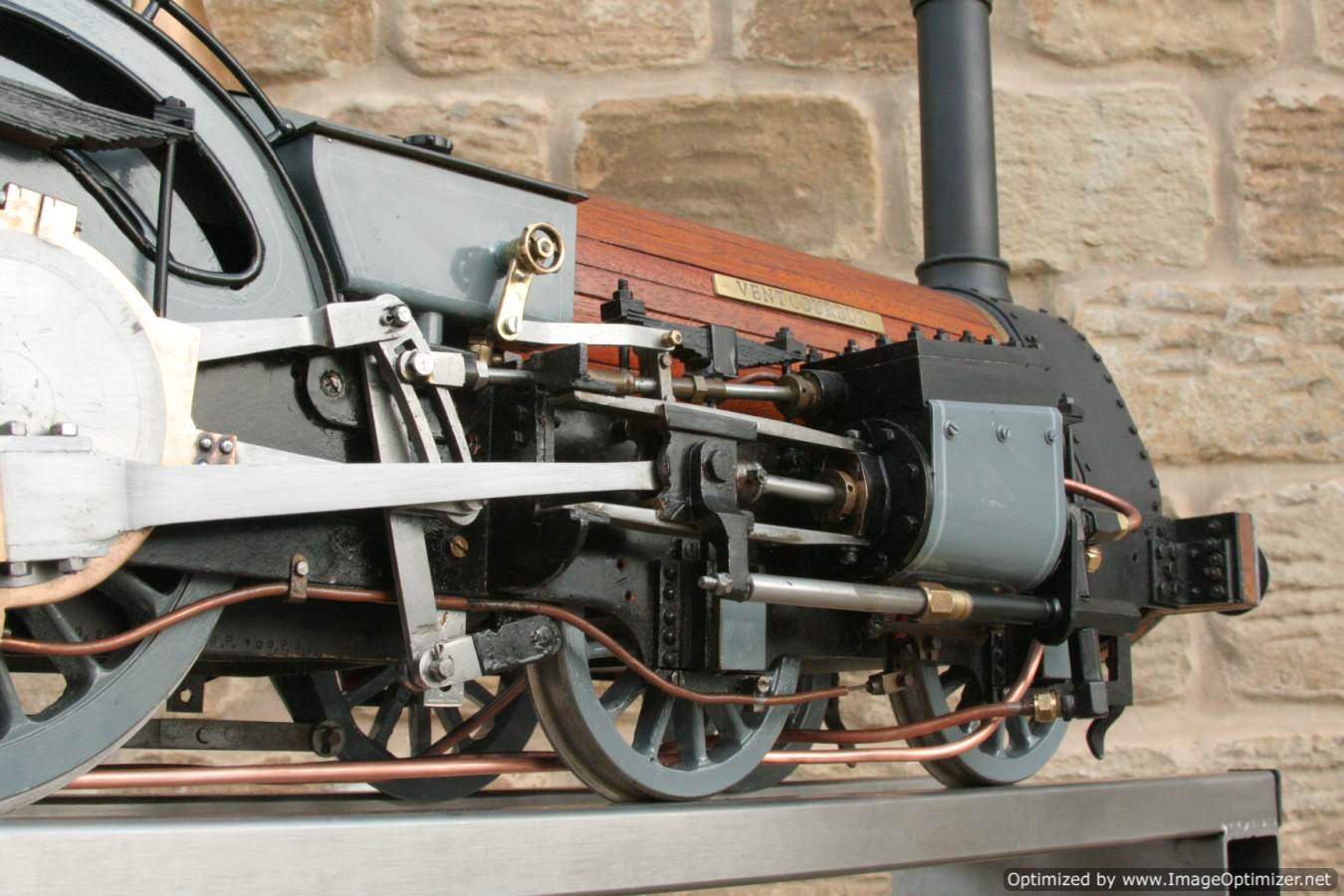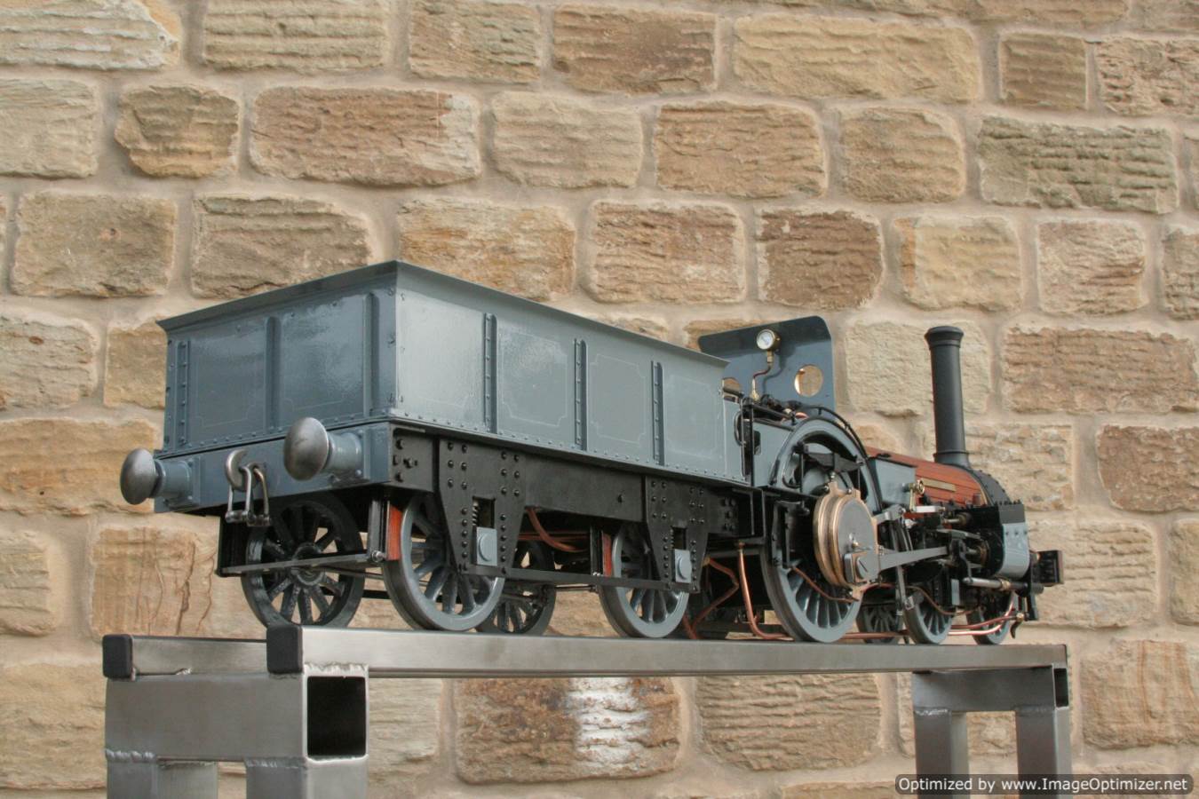To the model!  This is one that we have had a little hand in.  When it cam in it was missing a few little bits and bobs and in a particularly odeous shade for insipid green!  So we took the decision to give it a quick strip down, re-paint and re-build, as we reckon there's not enough Cramptons out there with a decent finish on em!  For some reason they always seem to be a clumsy green colour, instead of something a little more Victorian and inspiring.  We've been waiting for the right loco to go into grey for some time now, and this one has become it!  So, mechanically she's had brand new pistons and rods, and a general strip down and re-build.  The injector set up is all brand new, and the water pump has been overhauled.  The boiler was tested outside the frames and unclad and comes with a full fresh 4 year hydraulic cert, and a fresh steam cert can be sorted as soon as she leaves.