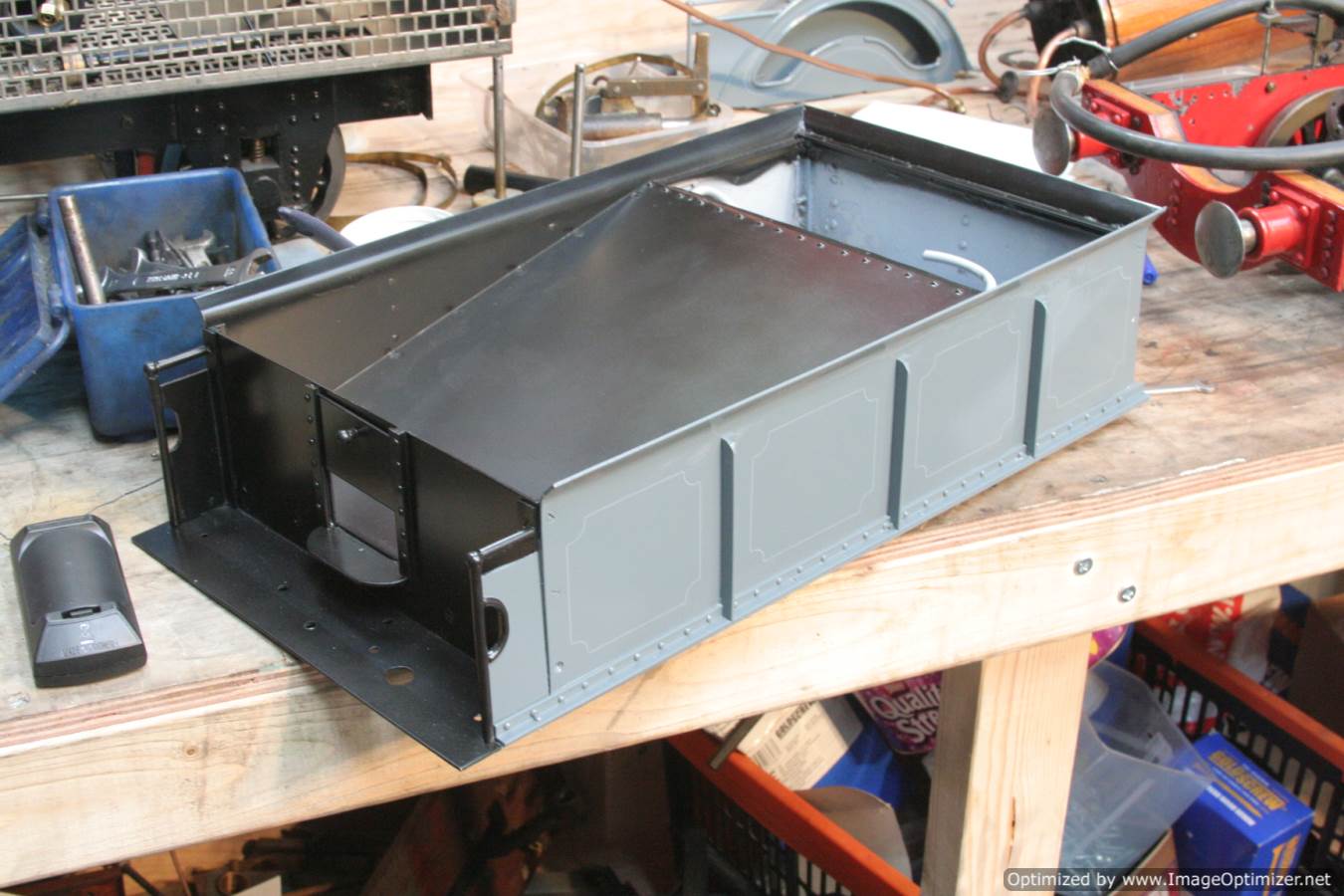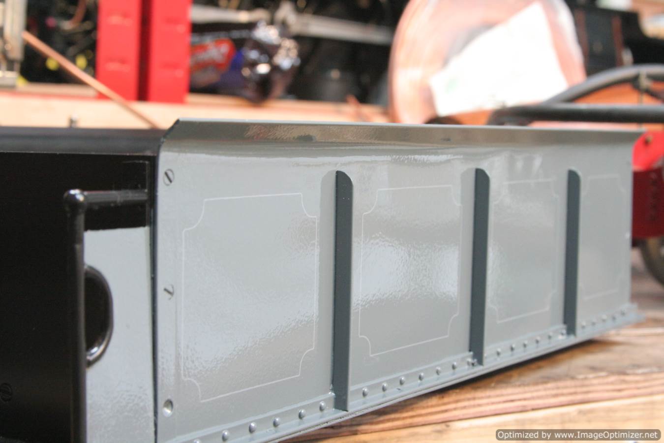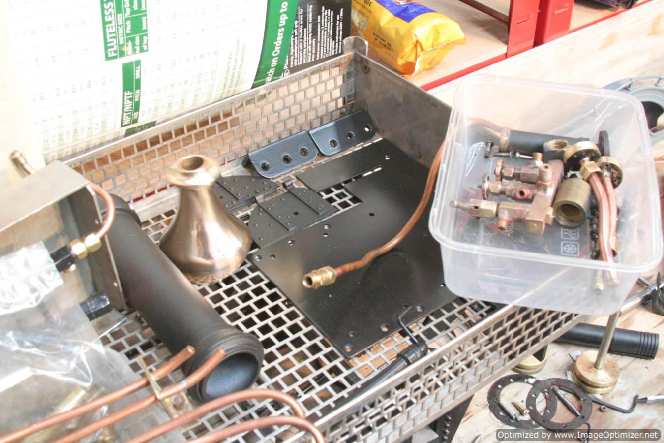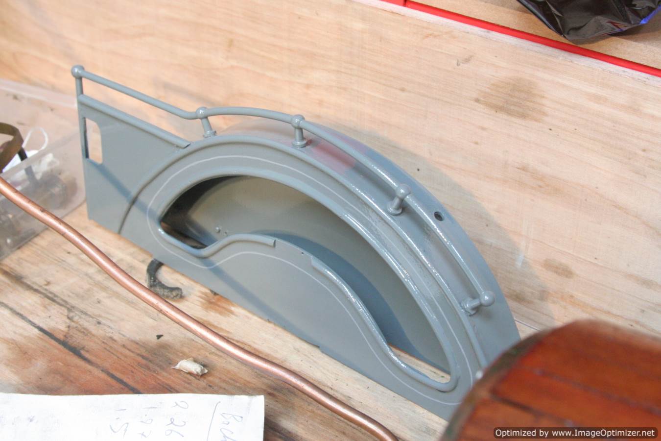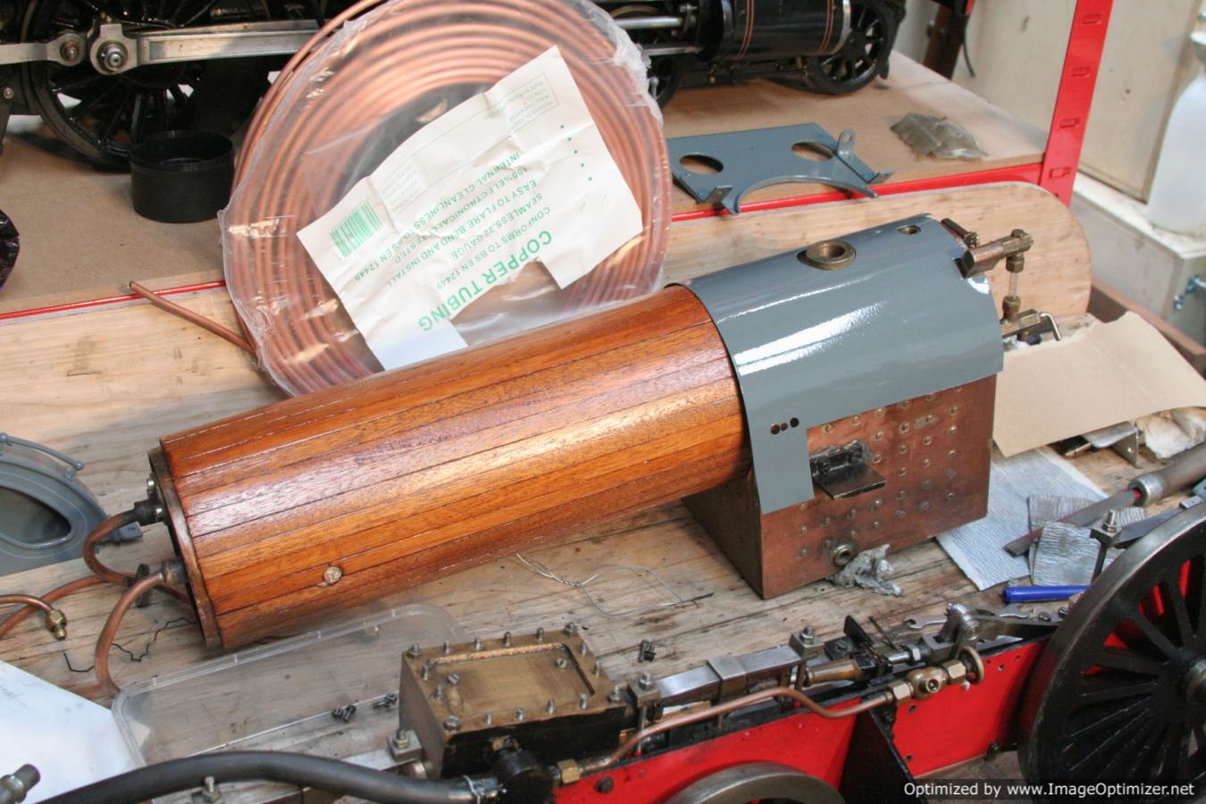 To the model! This is one that we have had a little hand in. When it cam in it was missing a few little bits and bobs and in a particularly odeous shade for insipid green! So we took the decision to give it a quick strip down, re-paint and re-build, as we reckon there's not enough Cramptons out there with a decent finish on em! For some reason they always seem to be a clumsy green colour, instead of something a little more Victorian and inspiring. We've been waiting for the right loco to go into grey for some time now, and this one has become it! So, mechanically she's had brand new pistons and rods, and a general strip down and re-build. The injector set up is all brand new, and the water pump has been overhauled. The boiler was tested outside the frames and unclad and comes with a full fresh 4 year hydraulic cert, and a fresh steam cert can be sorted as soon as she leaves.