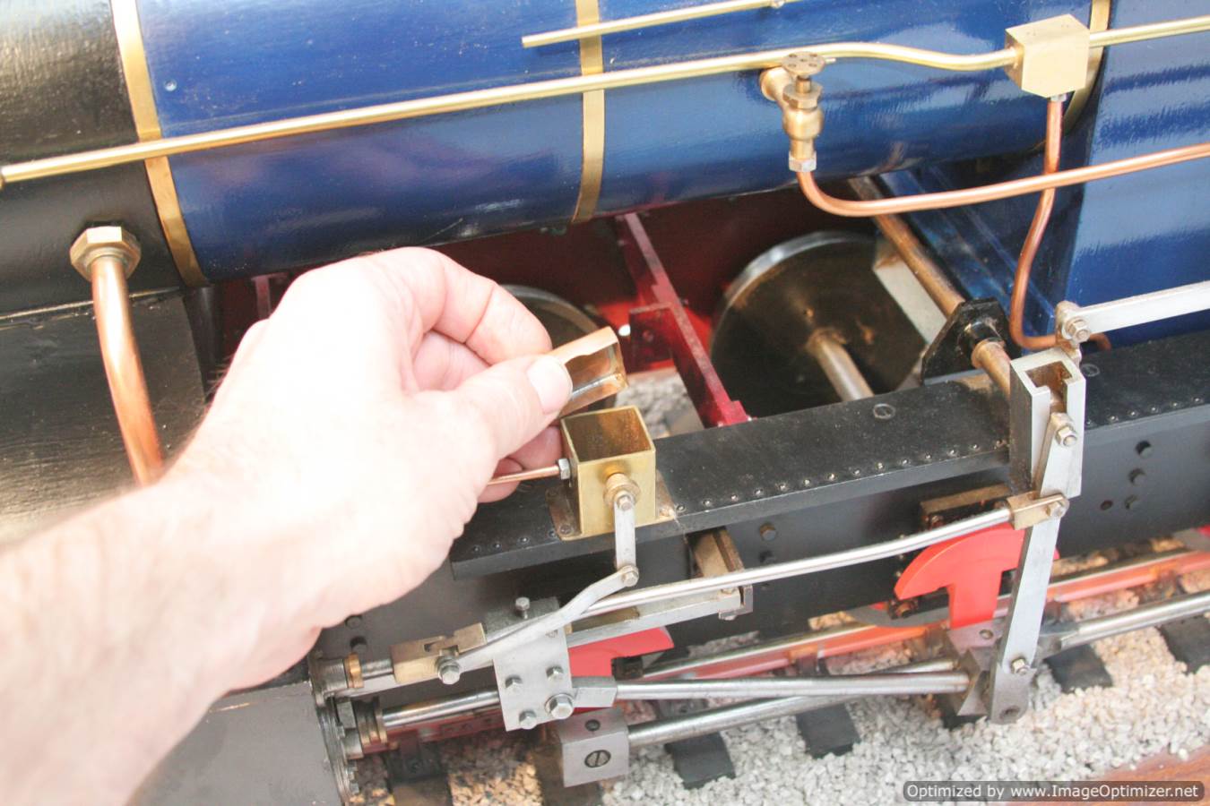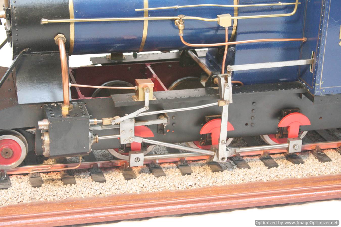 It is not, however, all it may seem at first glance! This is a display model, constructed upon a well engineered and fully rolling bottom end. This is a battery electric steam outline loco waiting to happen. Most of it is metal, and well made. There is space inside the tender to put a battery, and there is space inside the firebox to put a motor driving the axle. The chassis all rolls very nicely, the valve gear and axle boxes are all real, although the cylinders are fake. Solid metal, but fake. The whole thing weighs as much as a sweet pea, as essentially it is all made as per a real working model, excepting of course the lack of a working boiler, and the functional simplifications that were obviously acceptable for a non working steam engine. It's sturdy enough, and functional enough though to very easily convert into a good looking and interesting battery electric loco. These days you can even make it chuff and produce steam if you fancy!