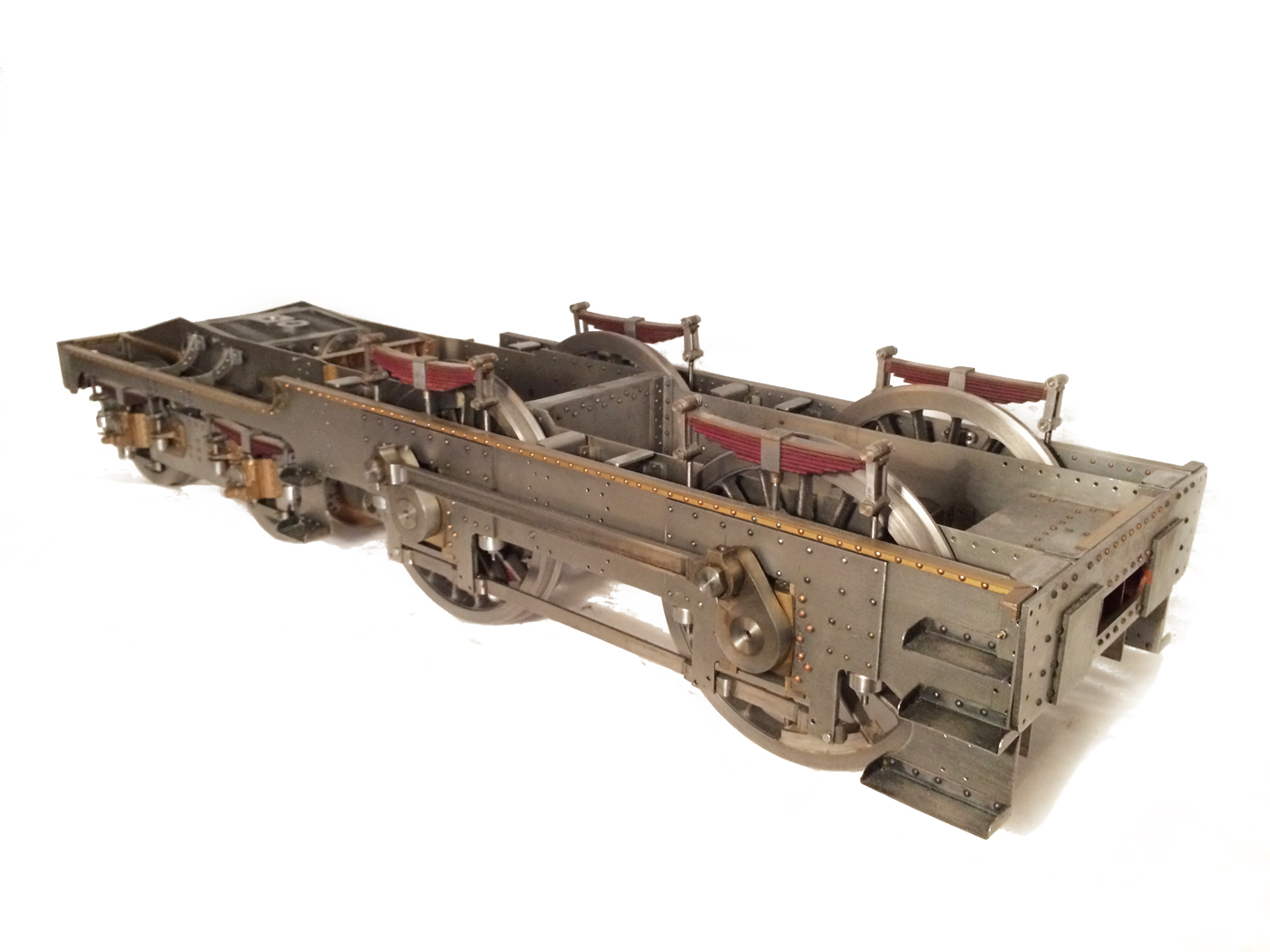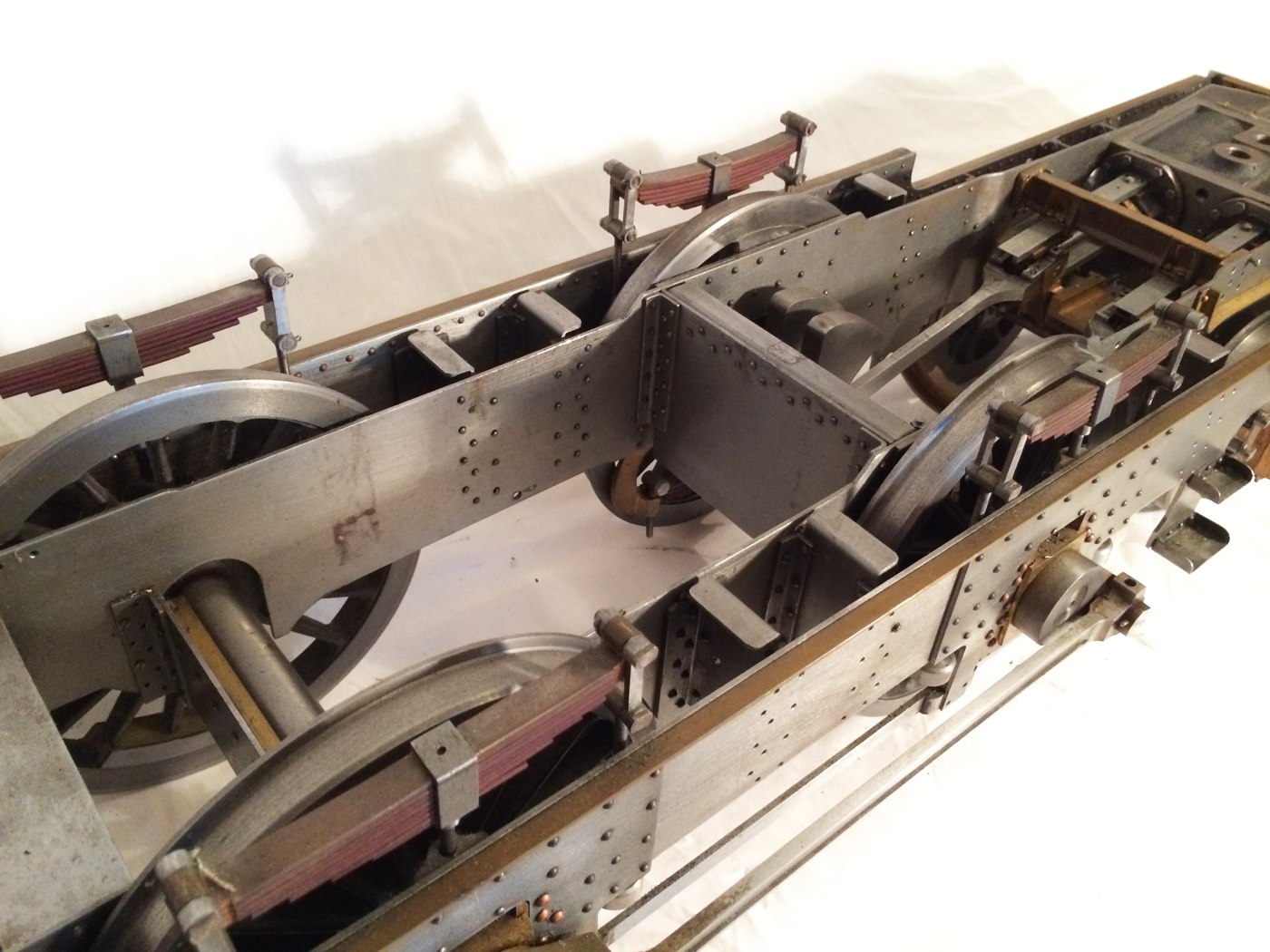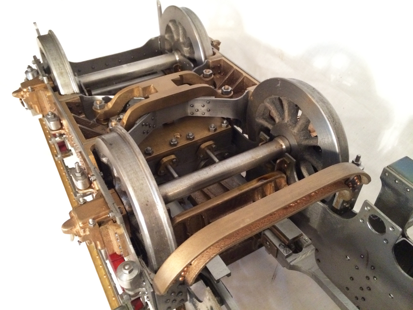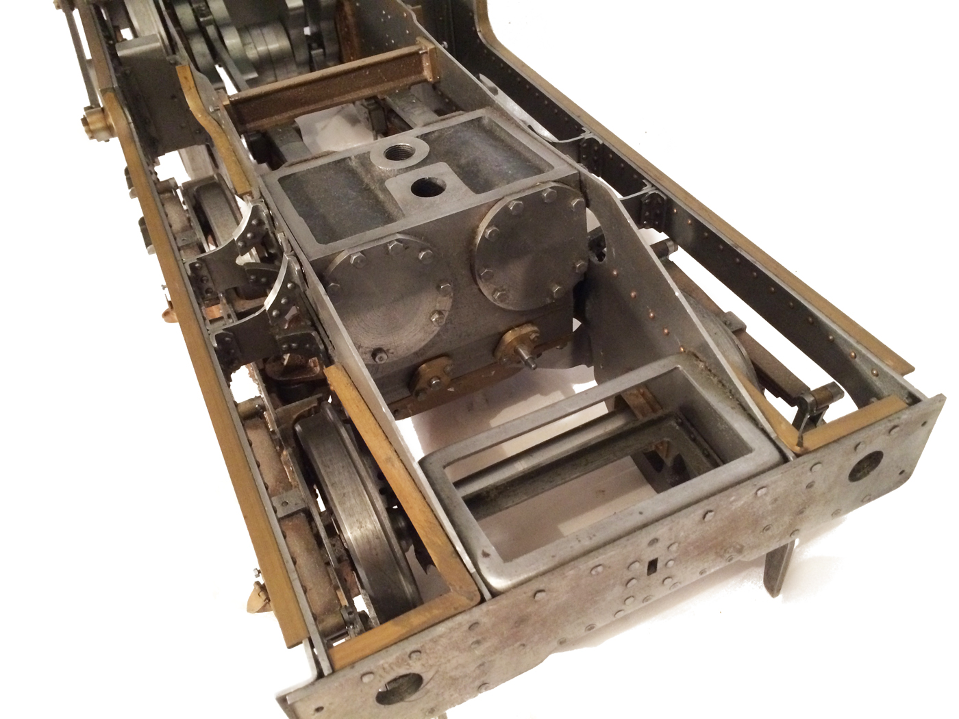 The chassis is well on the way, cylinders, crank axle, coupling and connecting rods are all finished and on, and the chassis rolls along very nicely. The valves and valve rods are in, but the majority of the valve gear is yet to be done, although the eccentric discs are on the axle. The quality of workmanship and machining is first class, and it's a very crisp job, on what is a fairly detailed model. The boiler is constructed by the same skilled engineer, and is solidly built, being caked in silver solder. It doesn't quite have the finesse of a professionally done product, but it is a good, new boiler, which we would expect to pass it's test with no issues.
