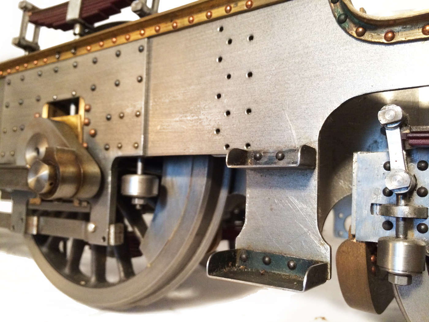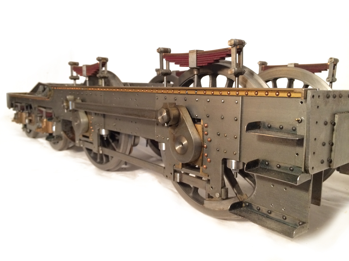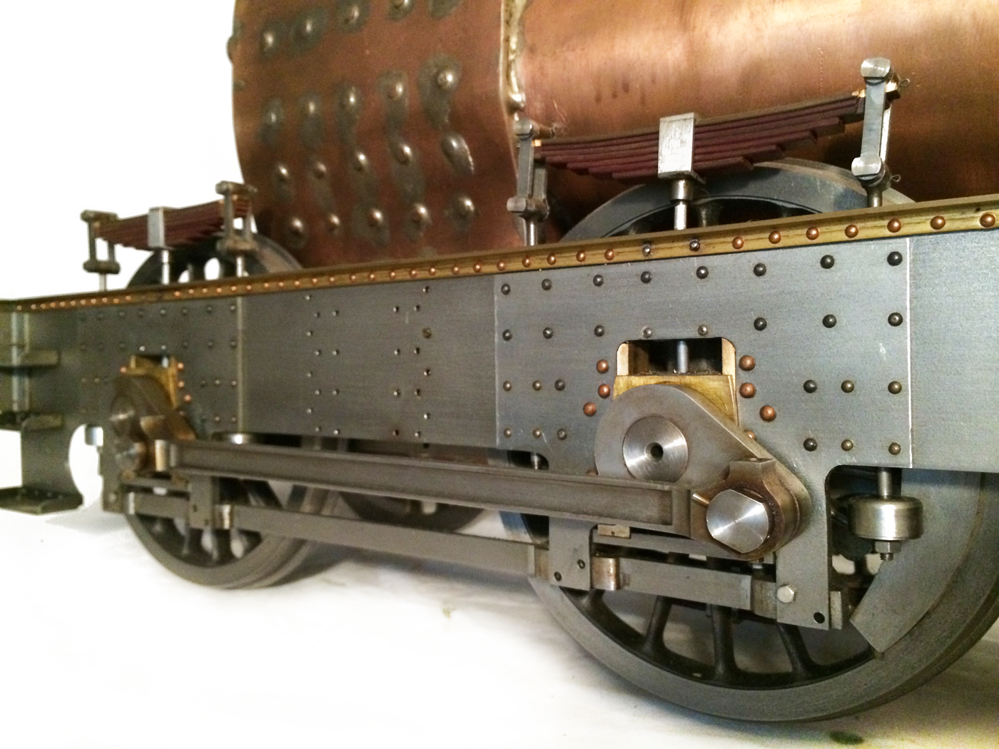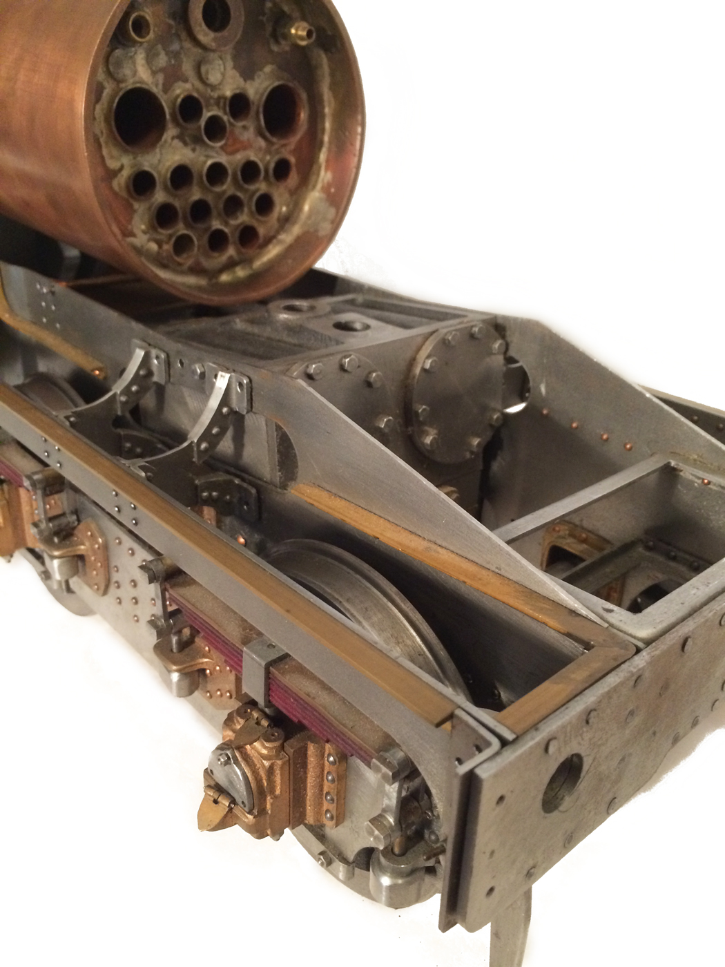 The chassis is well on the way, cylinders, crank axle, coupling and connecting rods are all finished and on, and the chassis rolls along very nicely. The valves and valve rods are in, but the majority of the valve gear is yet to be done, although the eccentric discs are on the axle. The quality of workmanship and machining is first class, and it's a very crisp job, on what is a fairly detailed model. The boiler is constructed by the same skilled engineer, and is solidly built, being caked in silver solder. It doesn't quite have the finesse of a professionally done product, but it is a good, new boiler, which we would expect to pass it's test with no issues.