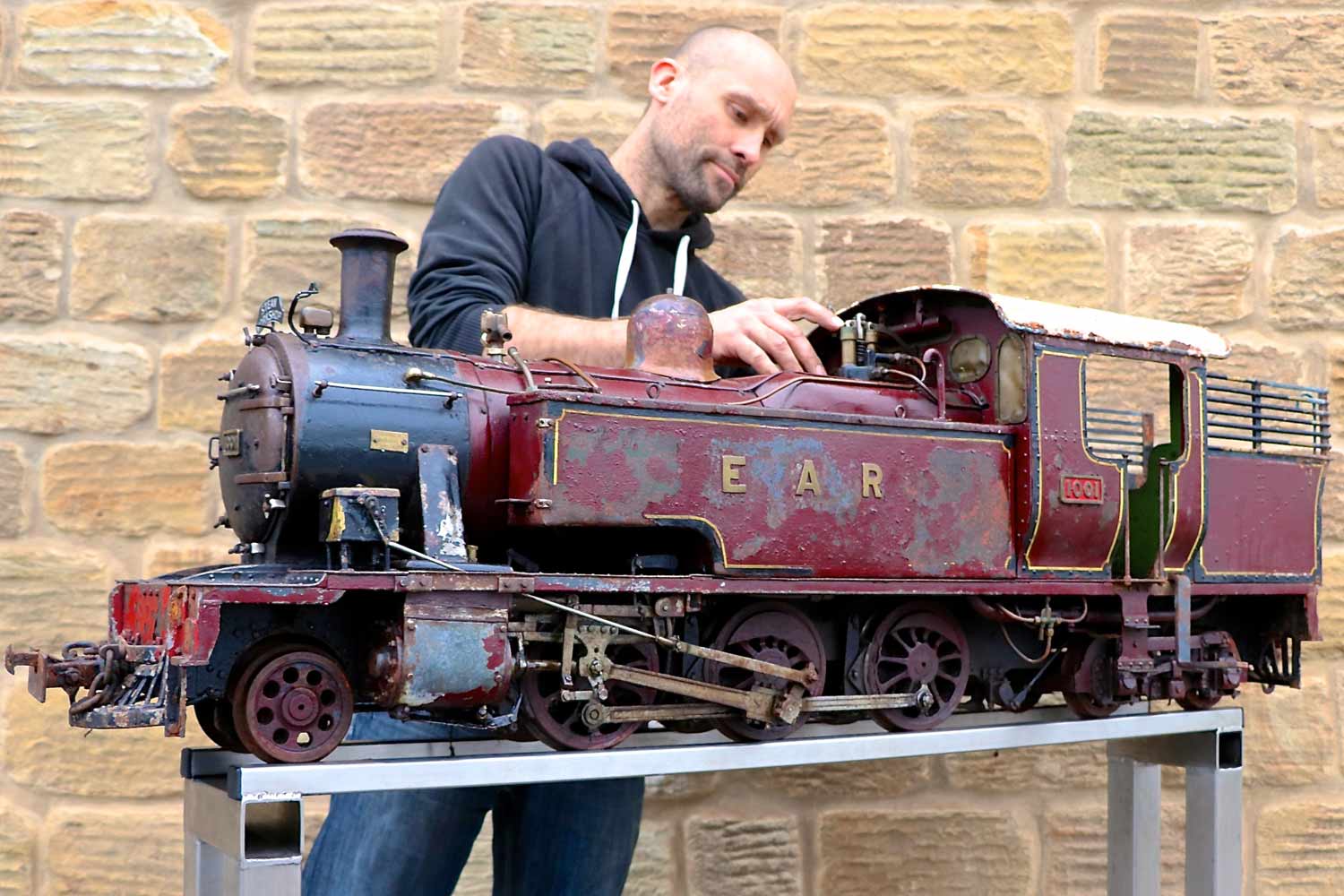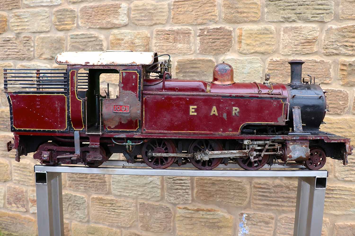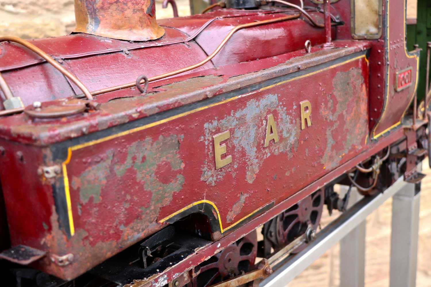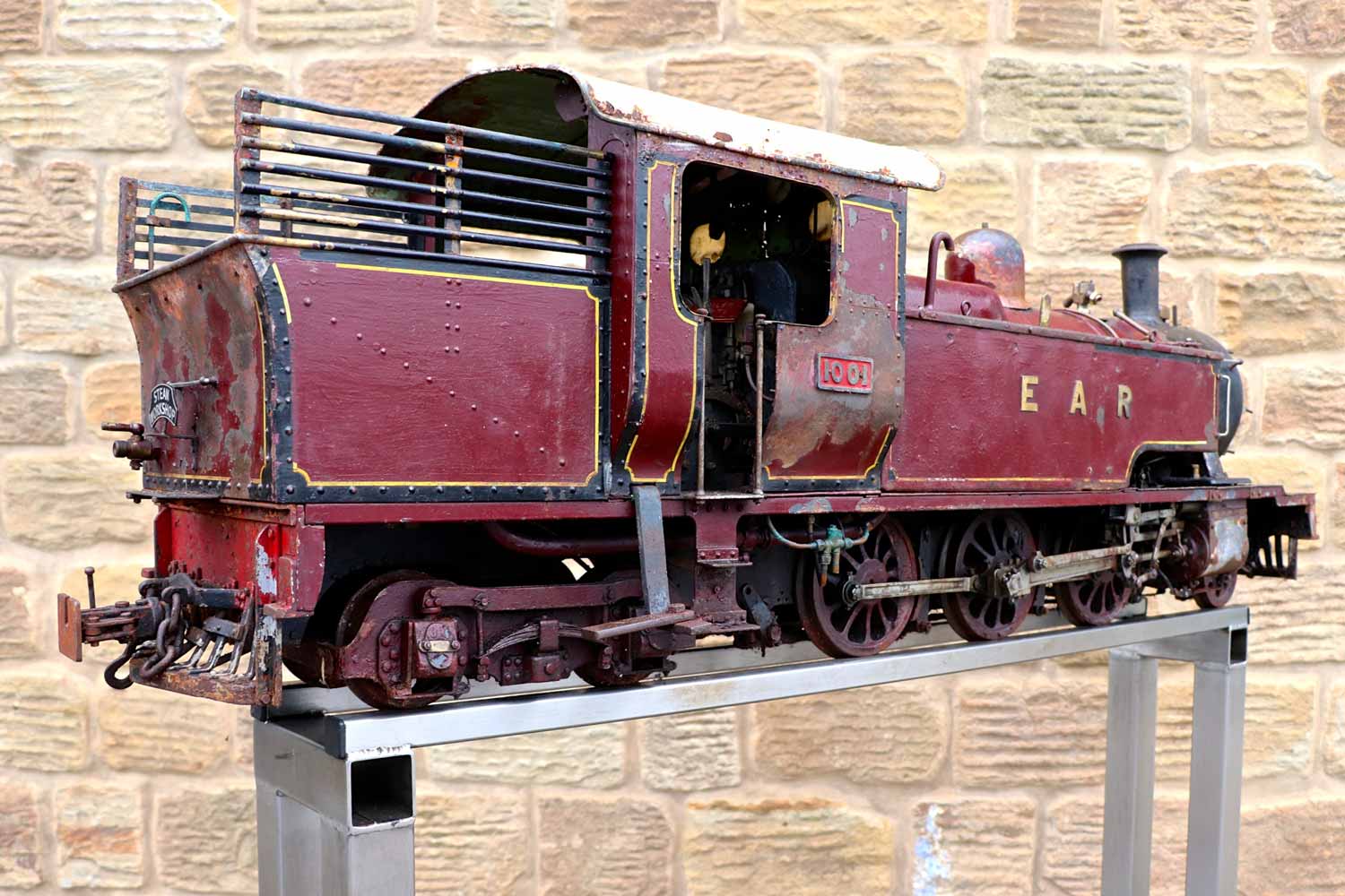 Here we have a bit of a spectacular beast,..... a 5" gauge East African Railways 10 Class 2-6-4 Tank, currently no 1001. She is shortly to undergo a full Steam Workshop rebuild so that she's as good as new again when finished, but currently, as you can see she is in cosmetically 'barn find' condition. You'll have to use your imagination a bit to see how good she will hopefully turn out, but do have a look at our other finished project locos for an idea of the standard of the finished product. As you can probably tell from previous rebuilds, we won't be just stripping her down and re-building,..... part of the fun is doing the research so that we can tweak and add detail as we go to push the end product closer toward the real thing, and at this stage, if you'd like to put your name on her, then you can literally choose the name we put on her! Essentially you can be involved in choosing and directing the final specification and detail, which makes this a genuinely unique opportunity and project.