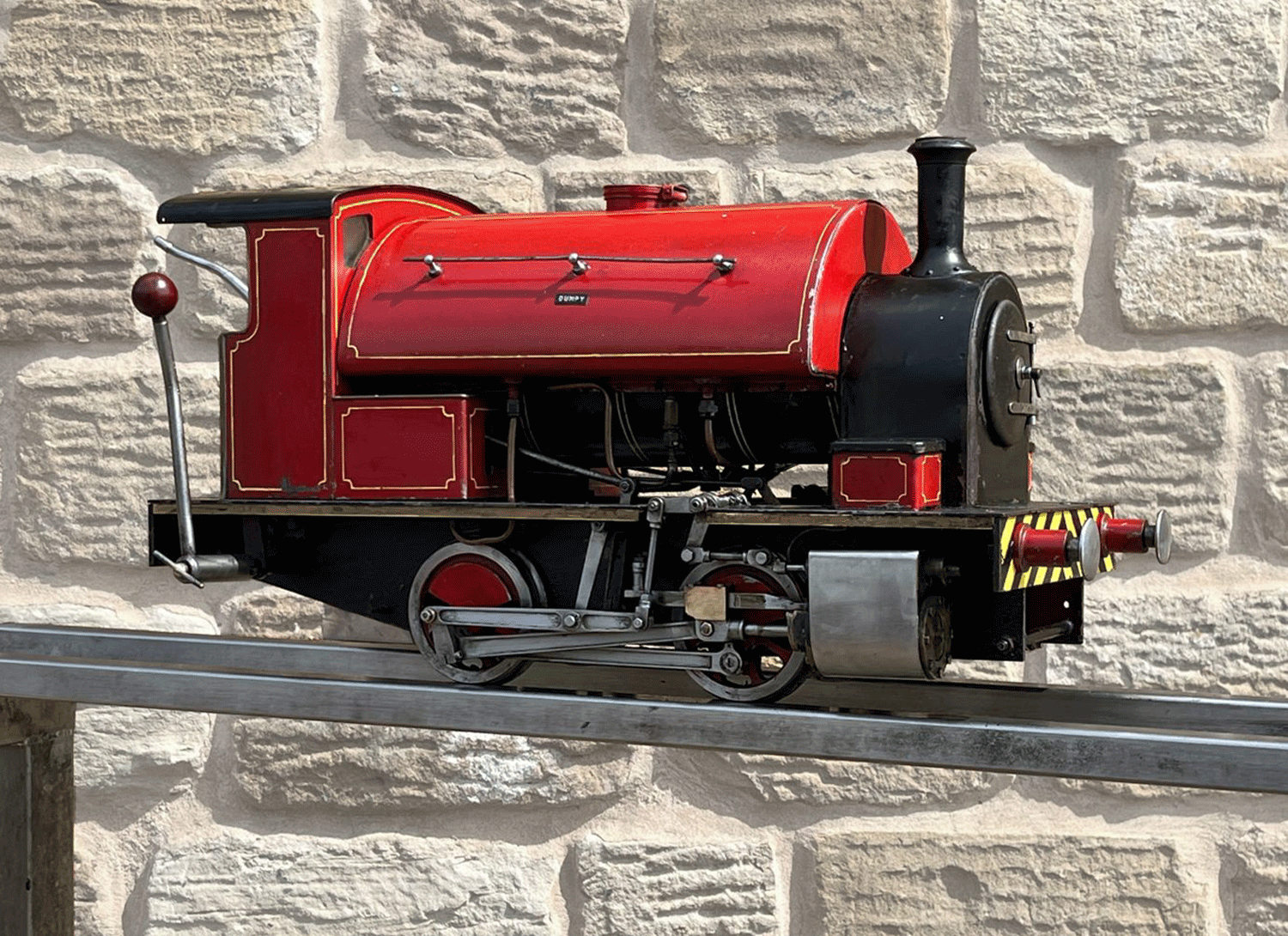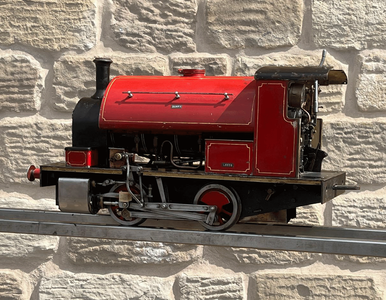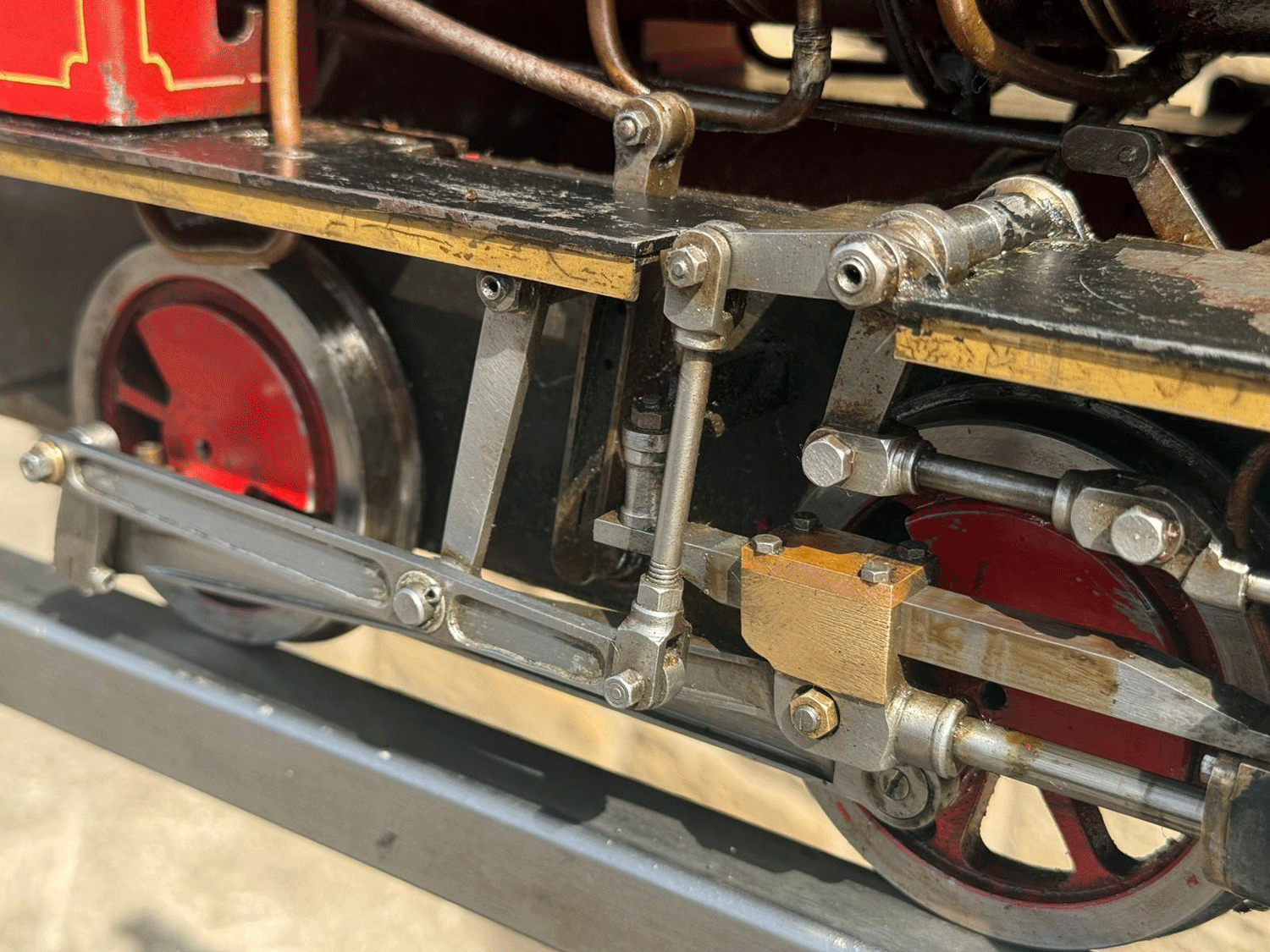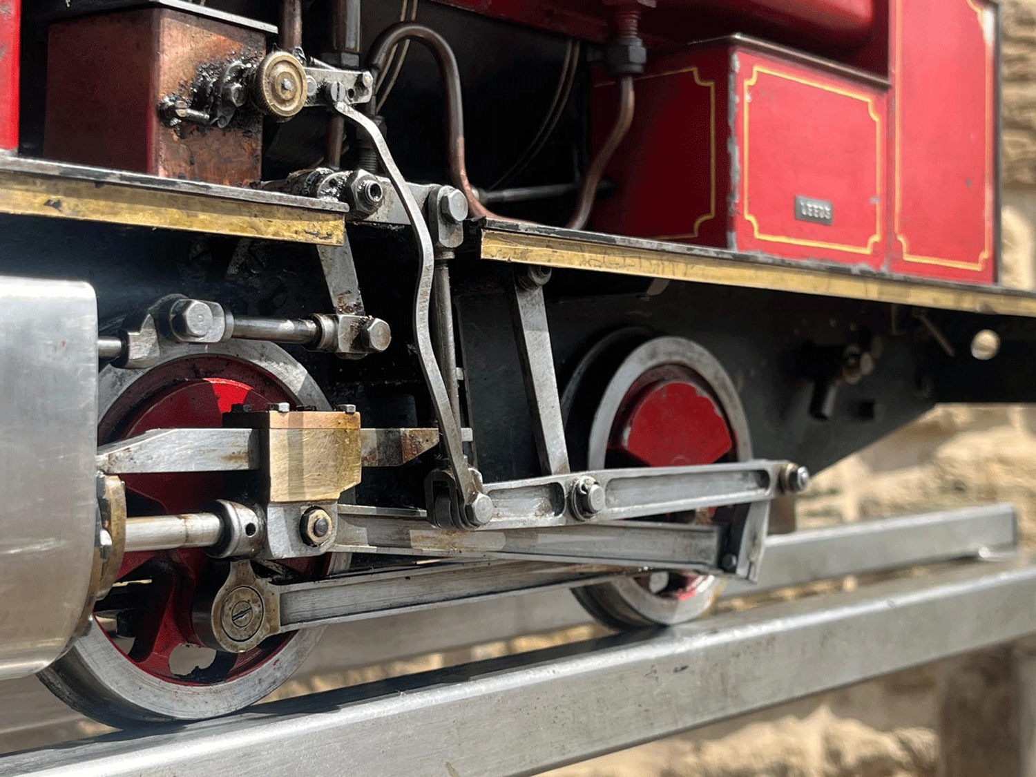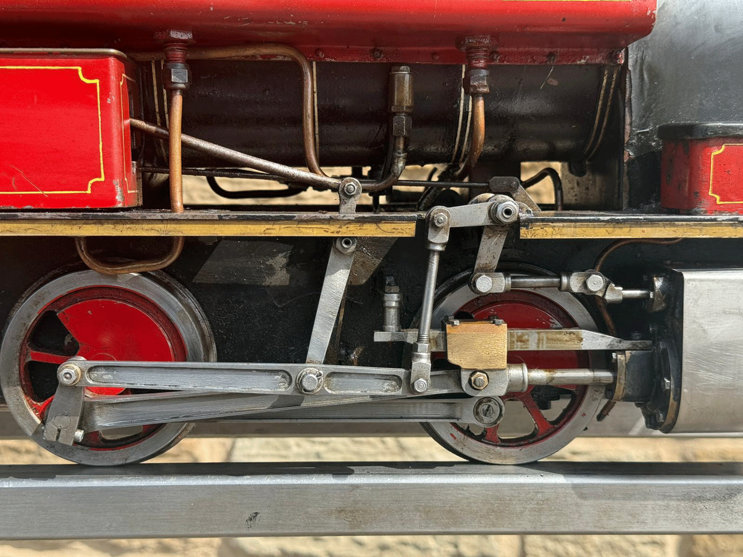 Here we have a really cute little 5" gauge freelance saddle tank sporting the rarely found 'Bremme' valve gear. Bremme is a derivative of Hackworth that corrects some of the functionality errors present in the earlier gear, and it always looks attractive when running with the two vertical levers bobbing up and down.