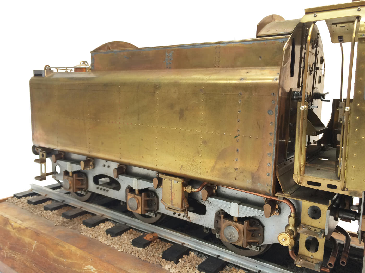 We think she's to a combination of the Perrier and the Spink drawings, and obviously contains no Modelworks bits at all. Most of the Hewson detailing castings are there, including the scale reverser, and pleasingly there is even a fully balanced water scoop on the tender! Already a cracker, that will finish off and paint up into a stunning model. Lots of photos so we will let them do the rest of the talking. Enjoy browsing through.