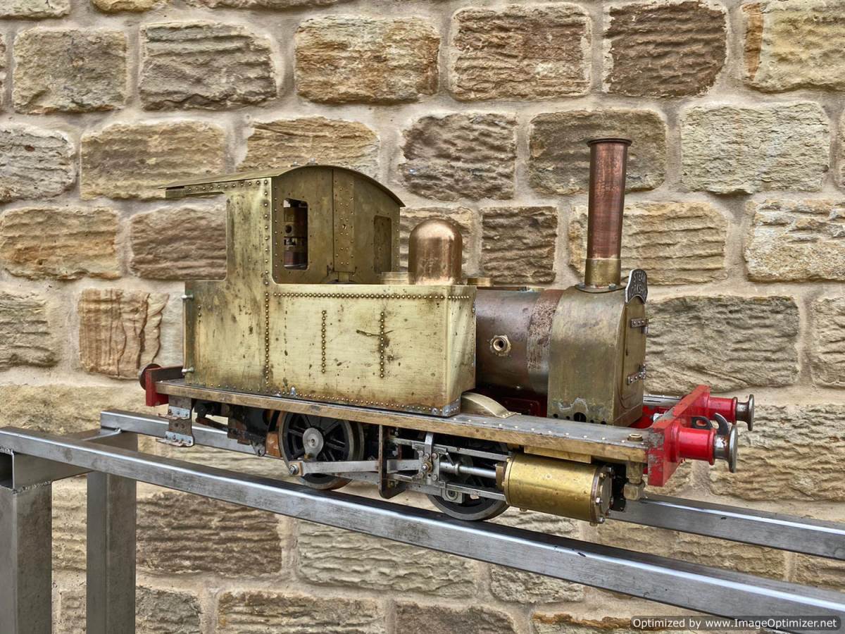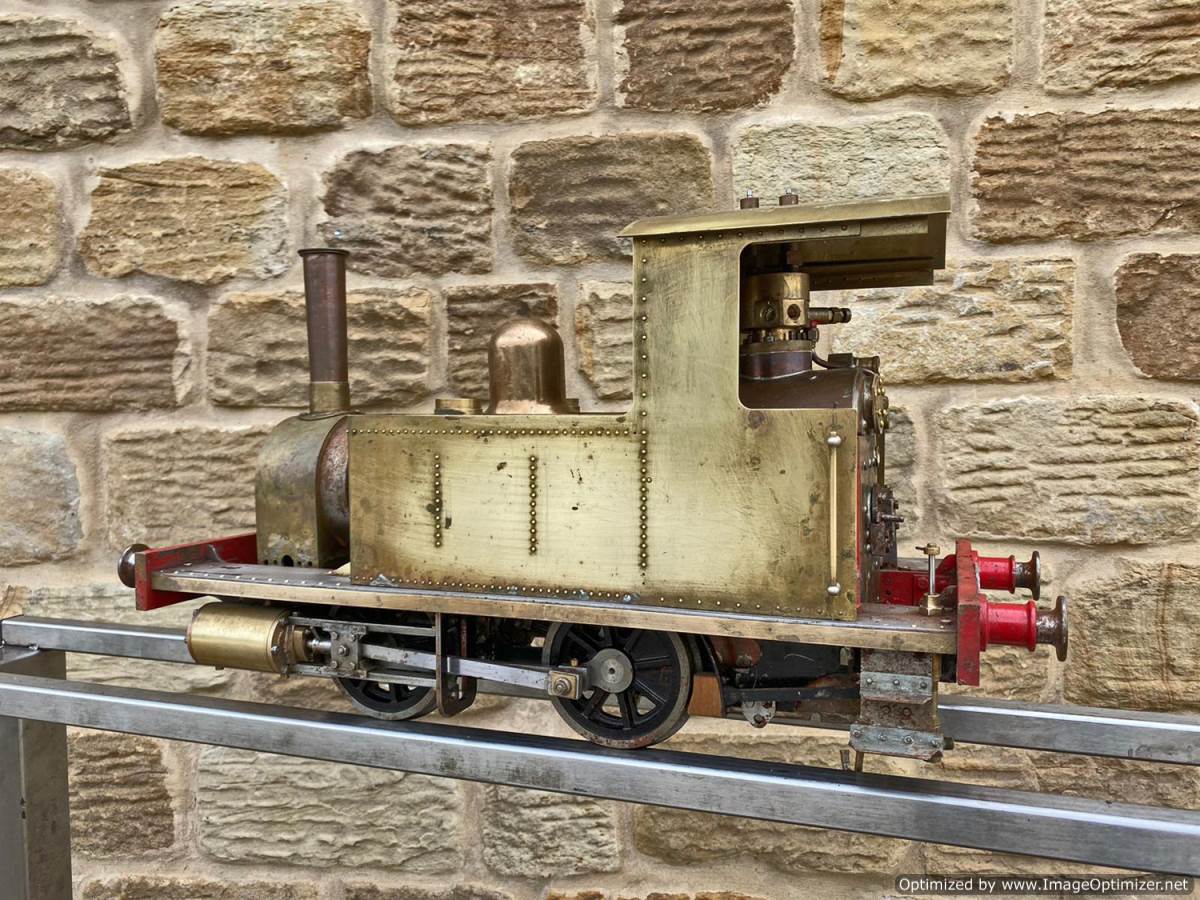 Here we have a really attractive little thing! She's a 5" gauge Gemma (Neilson Saddle tank) with a twist. The bones appear to be Gemma, frames, wheels, cylinders, valve gear and boiler. But then the platework and cosmetics have converted it to a rather handsome side tank which we think has been a pretty successful attempt to nudge the loco toward a Fletcher Jennings, perhaps similar to Baxter, as currently preserved on the Bluebell Railway.
