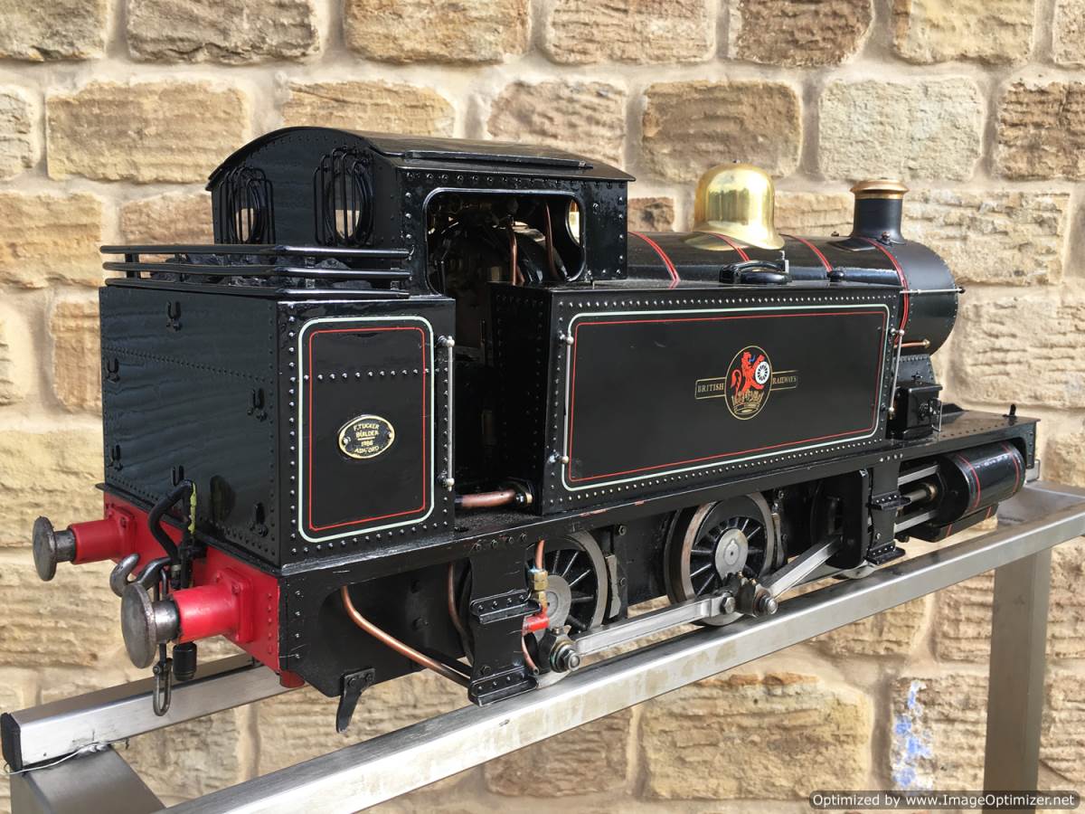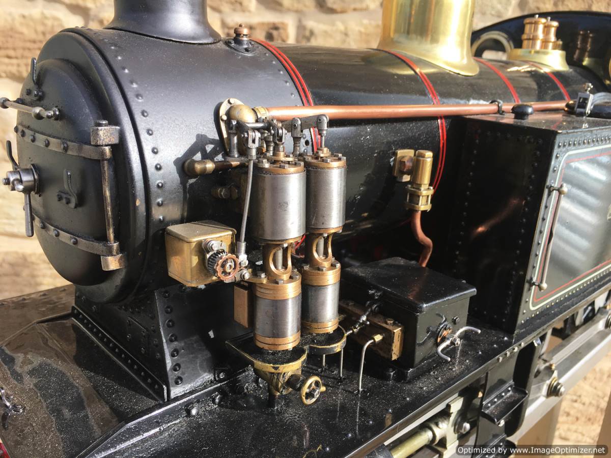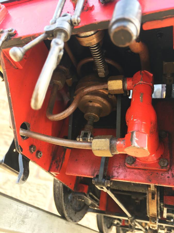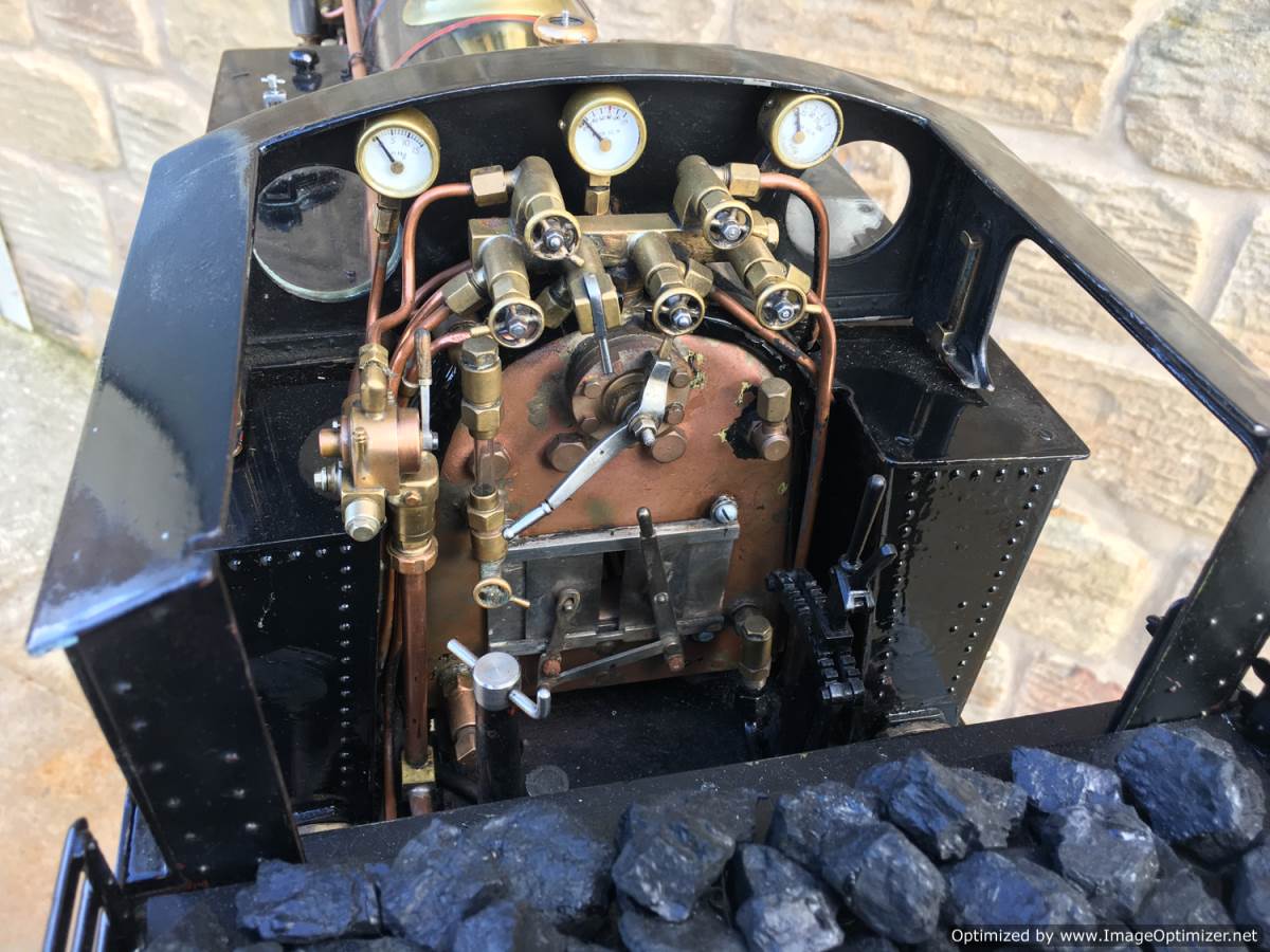 Here we have a particularly nicely made and well detailed 5" gauge 'Gert' 0-6-0. The loco has been the subject of what appears to be a thorough strip down and re-build back in 2014, and it hasn't yet been steamed since then. Fitted with a great deal of 'bells and whistles' that include all the usual suspects (injector, axle pump with footplate mounted bypass and a hand pump in the bunker), but also extends to a steam brake, a pair of snifting valves, a twin donkey pump for water (complete with it's own particularly lovely little mechanical lubricator) and the snazziest pair of mechanical lubricators each sporting 6 rams to pump oil to all the internal slidey bits that you can't get at with ease due to the tanks being in the way! It's both a wonder to behold and a rather functionally useful touch. In short this is a model that's been built with a huge amount of skill, effort and not just a little bit of flair! When you take it to your club track there will be a good 30 minutes where everyone crowds round it to wiggle the handles and wind the levers before you get chance to throw a fire in it! 🙂