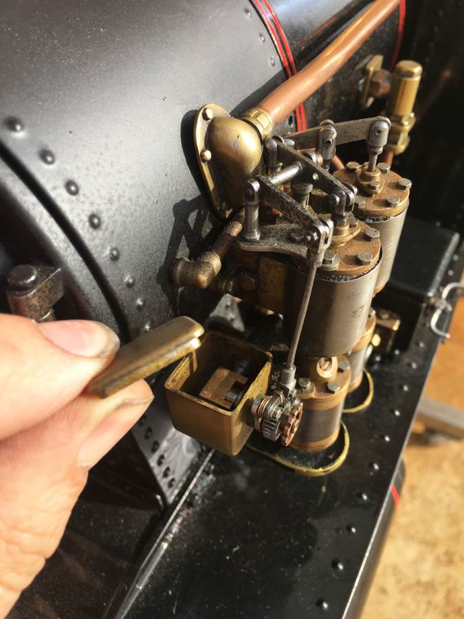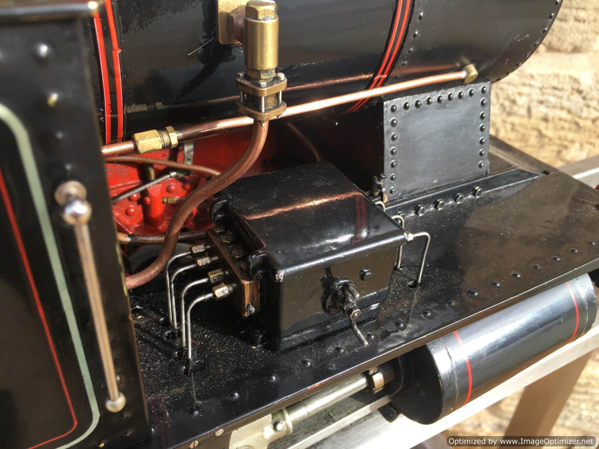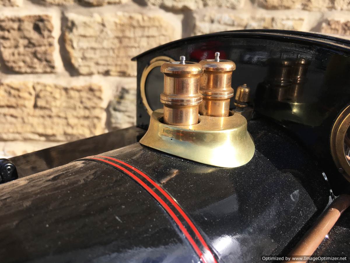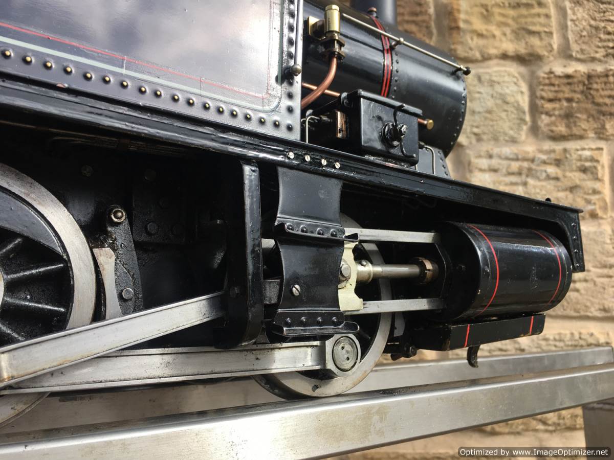 Here we have a particularly nicely made and well detailed 5" gauge 'Gert' 0-6-0. The loco has been the subject of what appears to be a thorough strip down and re-build back in 2014, and it hasn't yet been steamed since then. Fitted with a great deal of 'bells and whistles' that include all the usual suspects (injector, axle pump with footplate mounted bypass and a hand pump in the bunker), but also extends to a steam brake, a pair of snifting valves, a twin donkey pump for water (complete with it's own particularly lovely little mechanical lubricator) and the snazziest pair of mechanical lubricators each sporting 6 rams to pump oil to all the internal slidey bits that you can't get at with ease due to the tanks being in the way! It's both a wonder to behold and a rather functionally useful touch. In short this is a model that's been built with a huge amount of skill, effort and not just a little bit of flair! When you take it to your club track there will be a good 30 minutes where everyone crowds round it to wiggle the handles and wind the levers before you get chance to throw a fire in it! 🙂