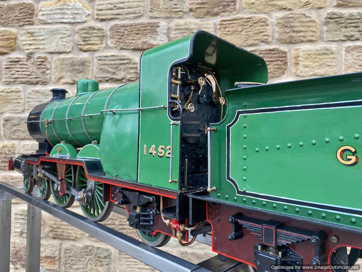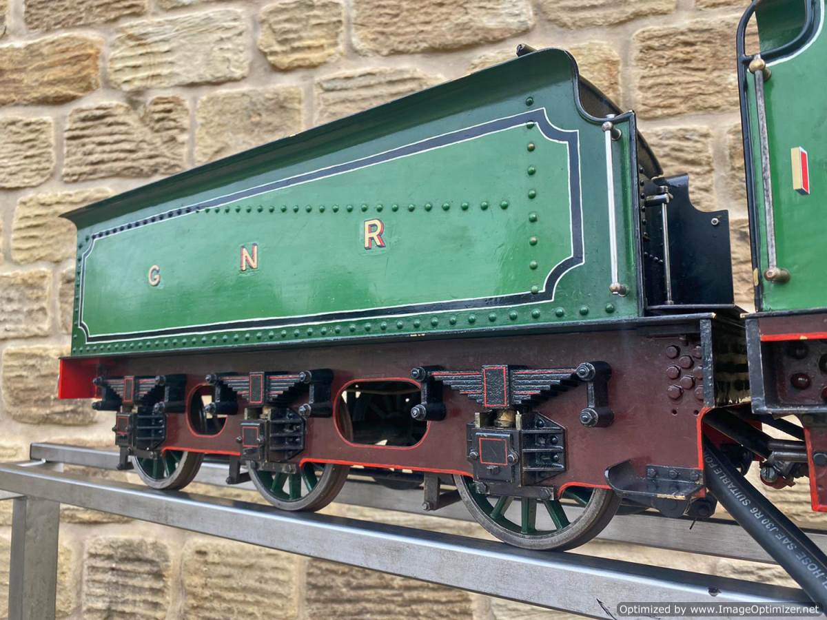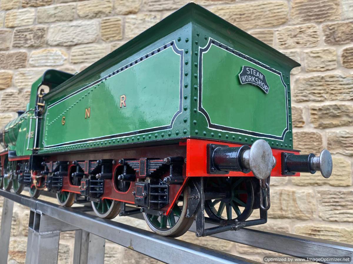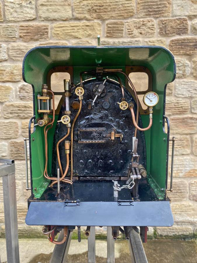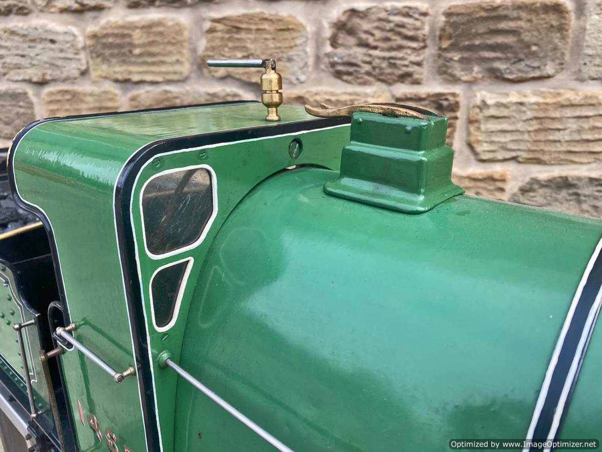 Here we have quite a rare beast. A 5" gauge GNR C1 Atlantic. Built we think to Henry Greenly's design, the model is slightly chunkily made and strongly built, but the machining work and finesse in the construction is to a nice standard. Although the backhead of the boiler is covered in a rather horrid layer of black paint, the boiler is copper, solidly made and as with the vast majority of our models, she will leave here with a fresh hydraulic test to twice working pressure rather than just 1 1/2 times, (because we are good like that), and a fresh annual steam test so you can be confident that she's ready to play. We might even strip off that paint and give it a nice smooth coat of high temperature satin black before it leaves as it's hurting our eyes!