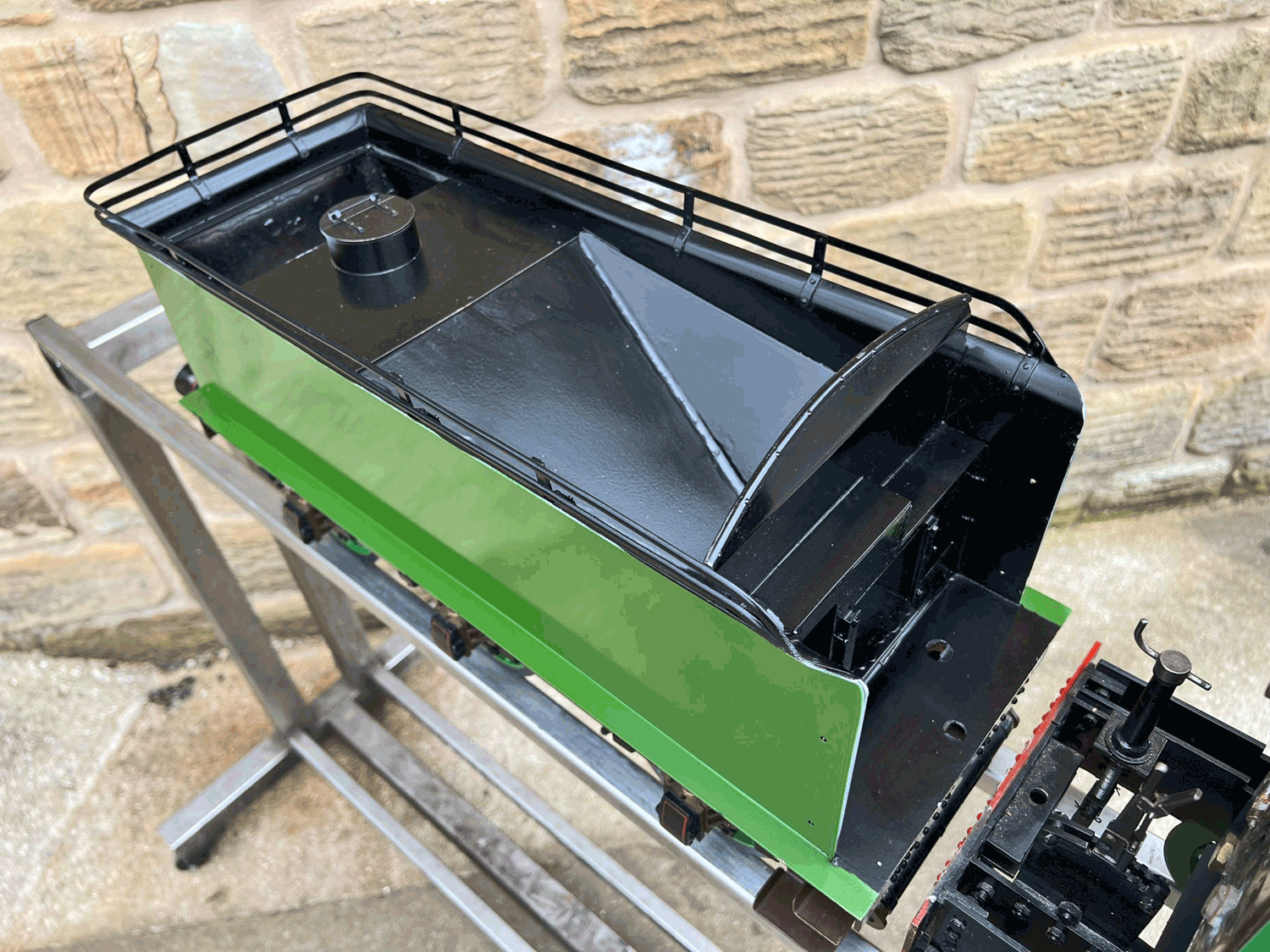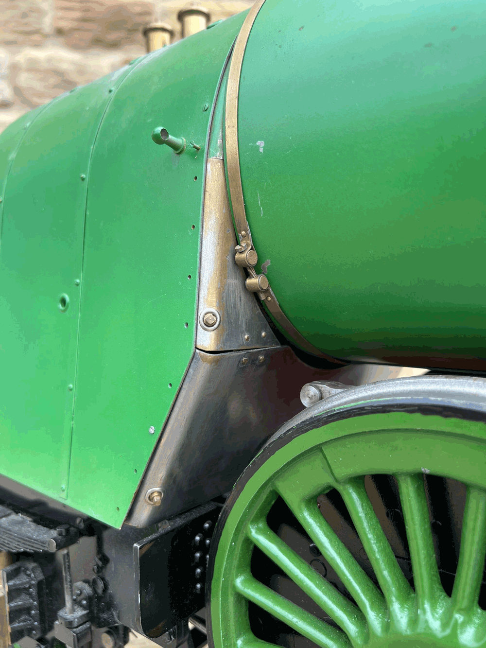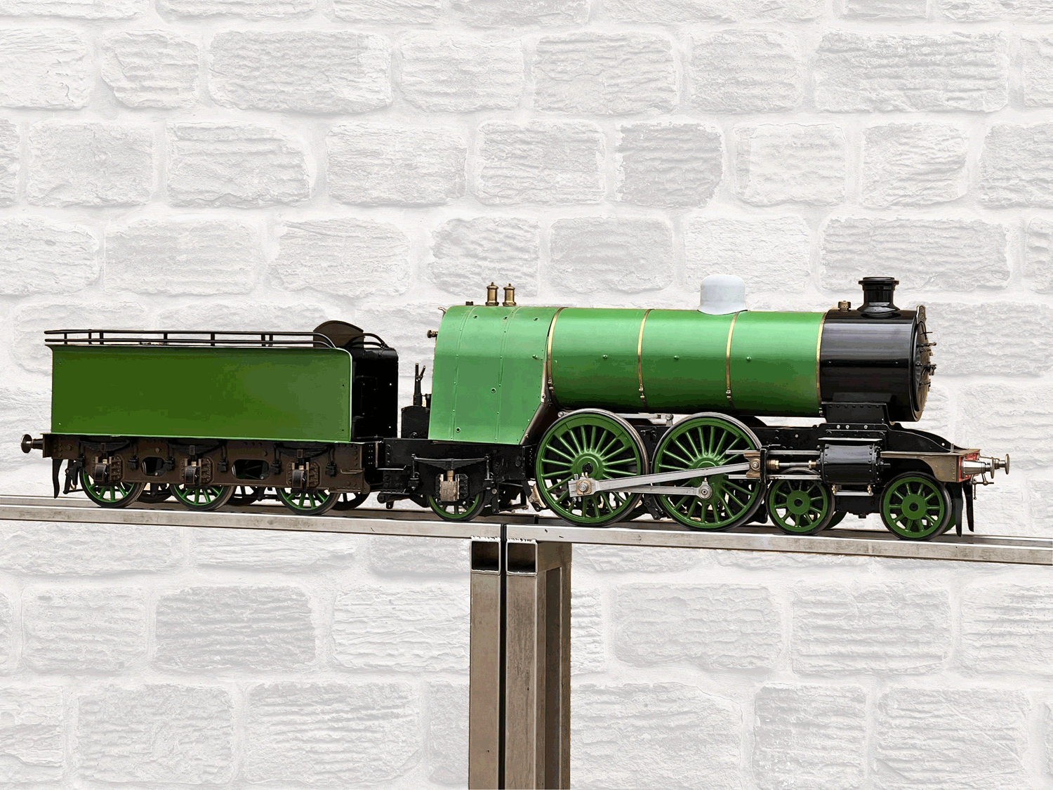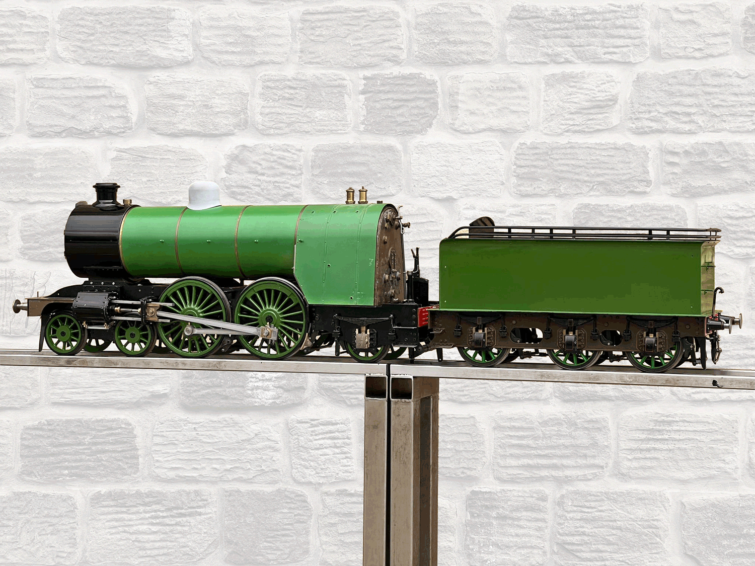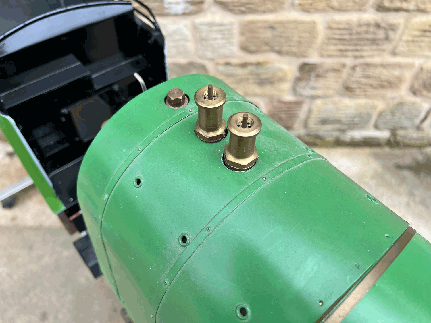 Here we have a 5" gauge GNR Atlantic. Again, we haven't seen many of these come up over the last 14 years, this being only the second, and the other one was presented as an LBSC Marsh Atlantic rather than an Ivatt as in this case. The silver soldered copper boiler, brand new, un-steamed and comes with it's initial club shell test certificate so it's hydraulically tight, but upon examination there's clearly a collapsed superheater tube, and the superheater has one flue blanked off. That aside, this looks to be ostensibly a nearly finished loco with what appears to be just some cosmetics and a bit of plumbing to complete.