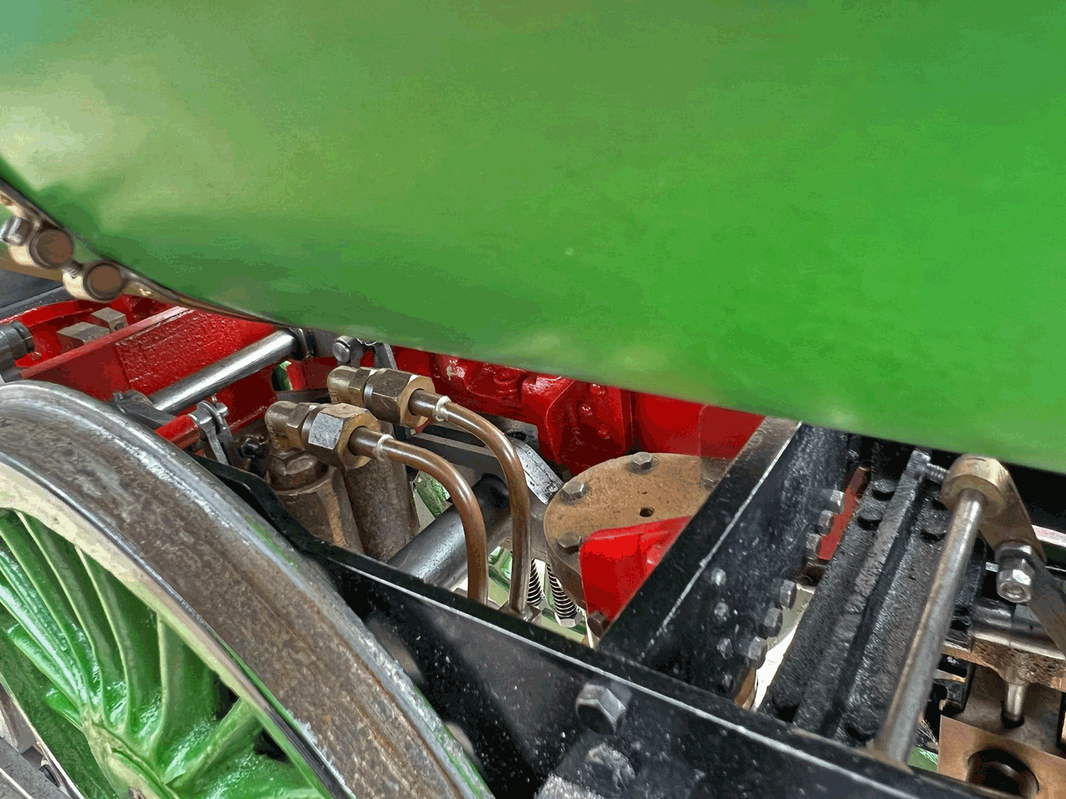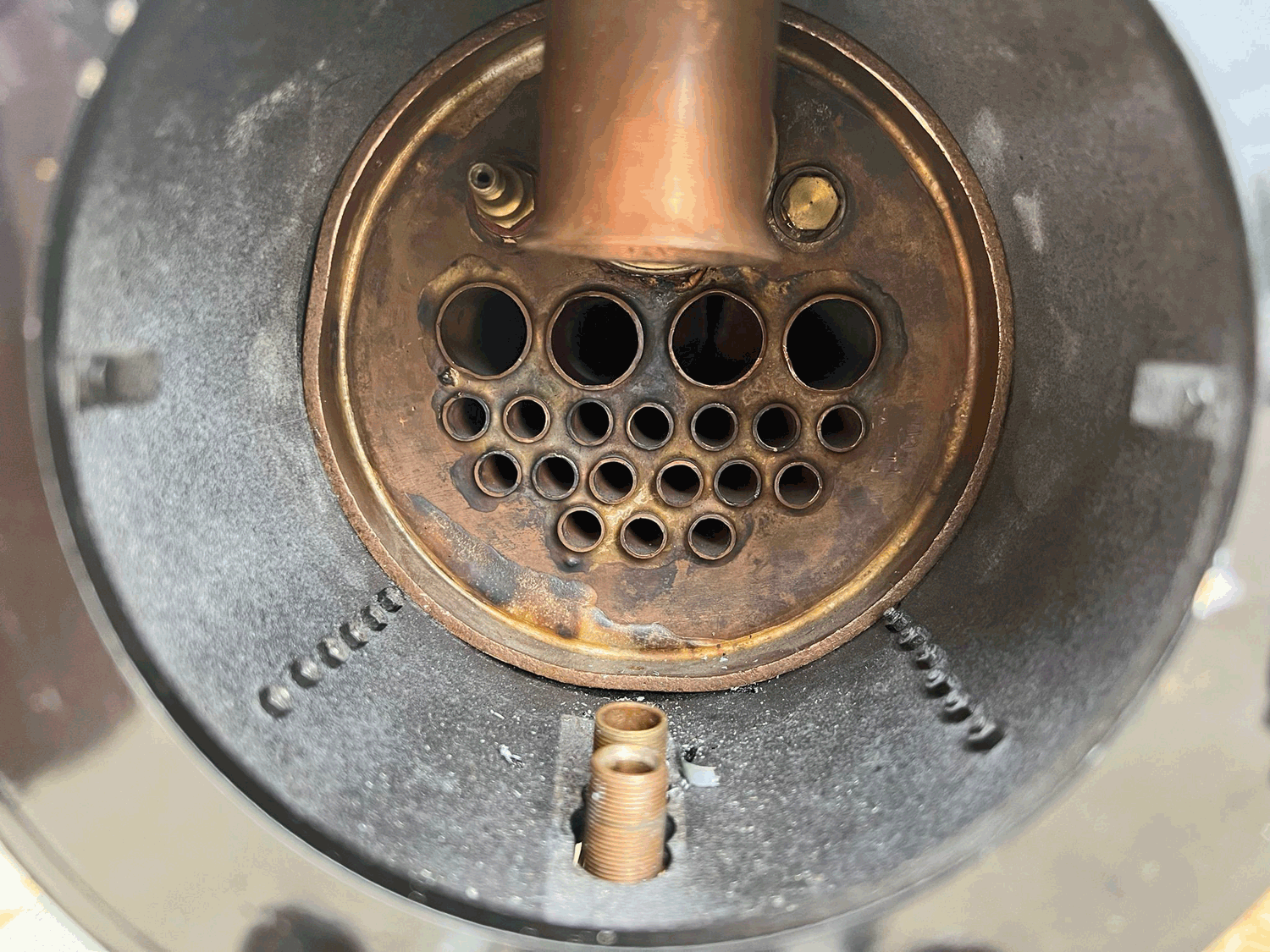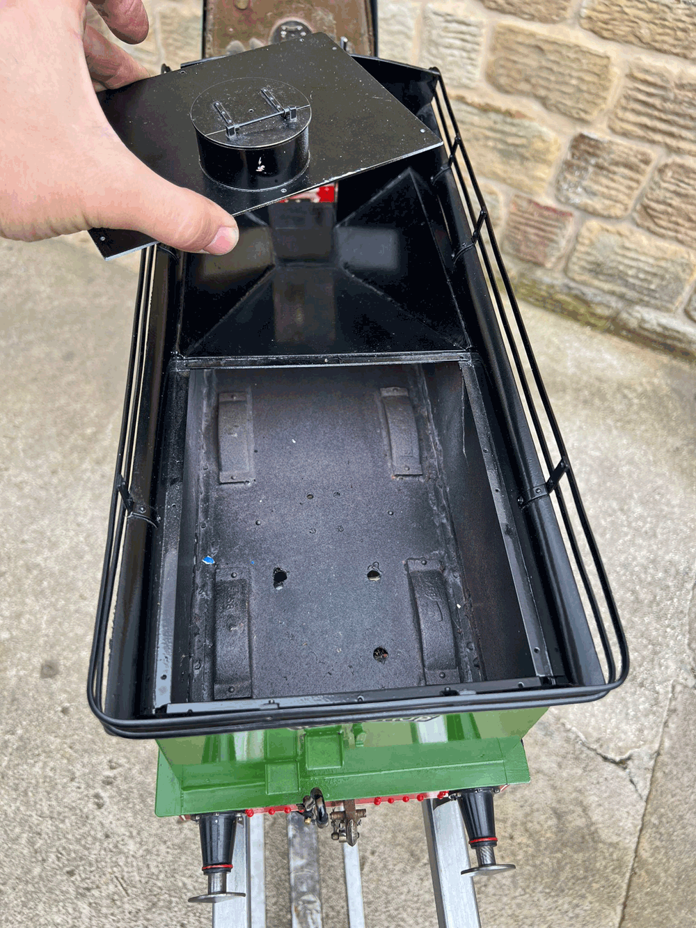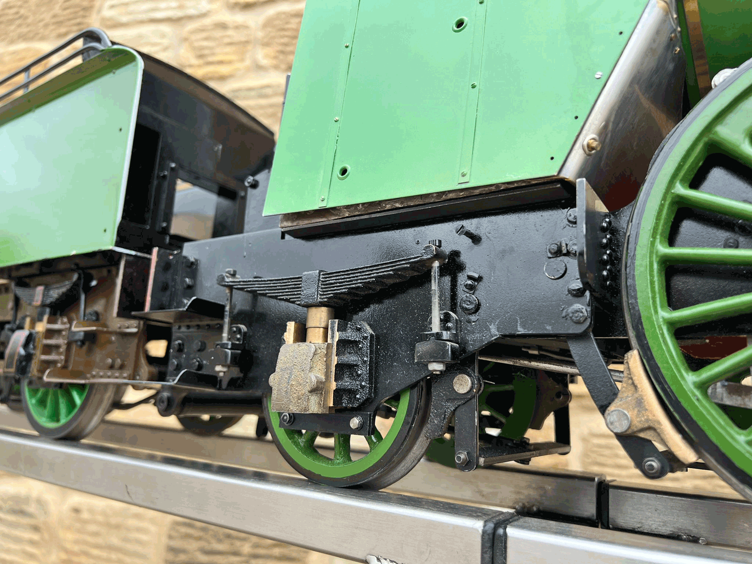 Here we have a 5" gauge GNR Atlantic. Again, we haven't seen many of these come up over the last 14 years, this being only the second, and the other one was presented as an LBSC Marsh Atlantic rather than an Ivatt as in this case. The silver soldered copper boiler, brand new, un-steamed and comes with it's initial club shell test certificate so it's hydraulically tight, but upon examination there's clearly a collapsed superheater tube, and the superheater has one flue blanked off. That aside, this looks to be ostensibly a nearly finished loco with what appears to be just some cosmetics and a bit of plumbing to complete.