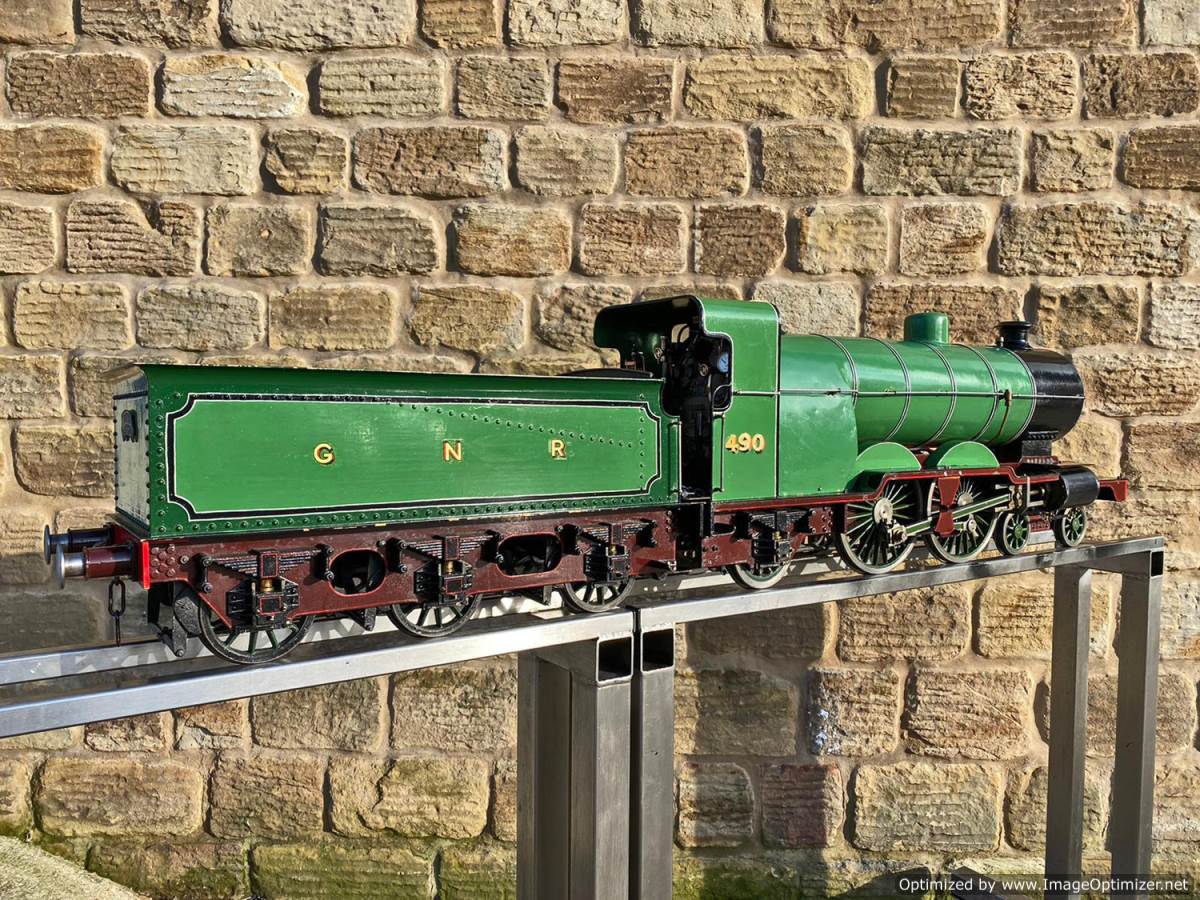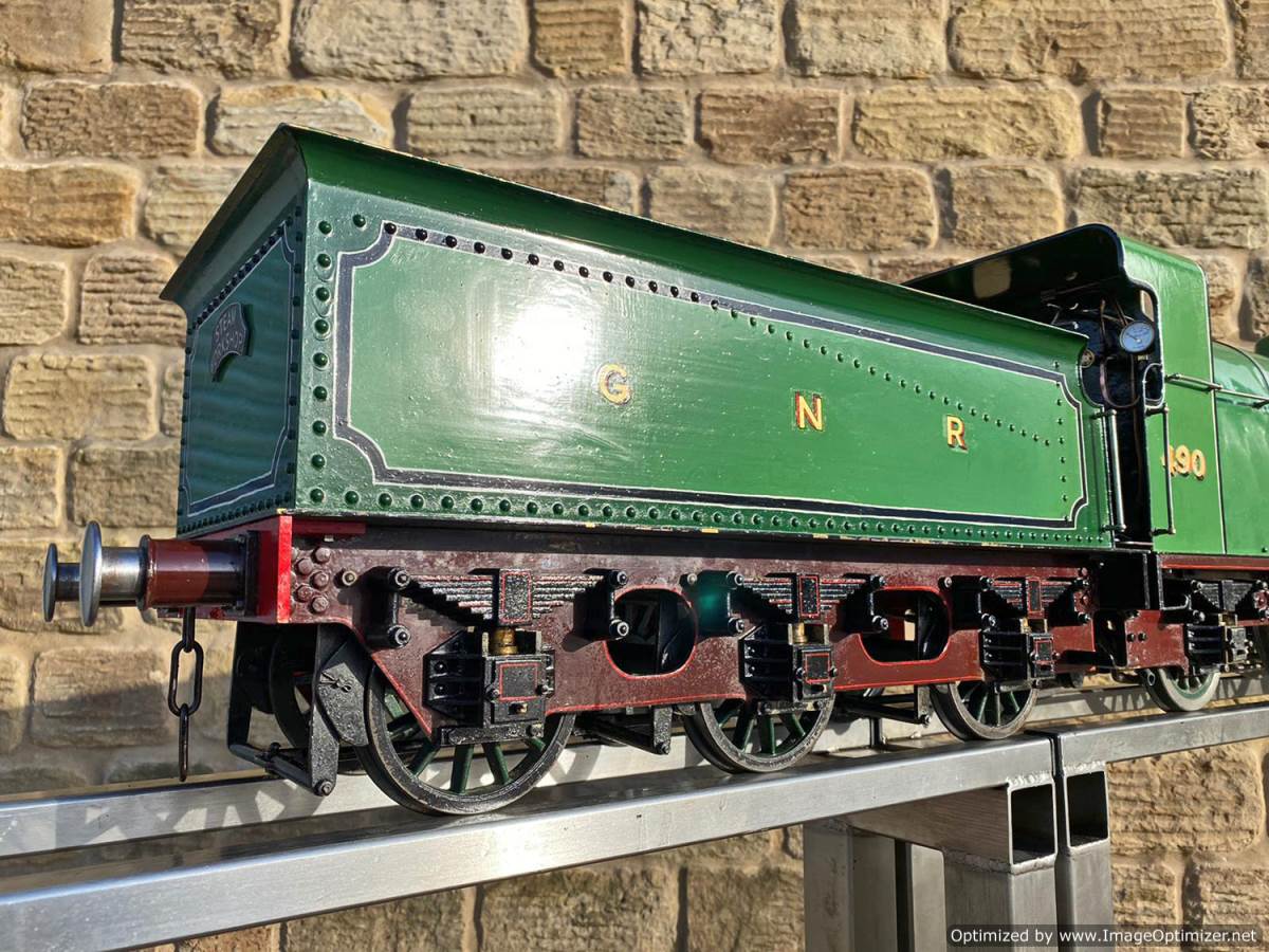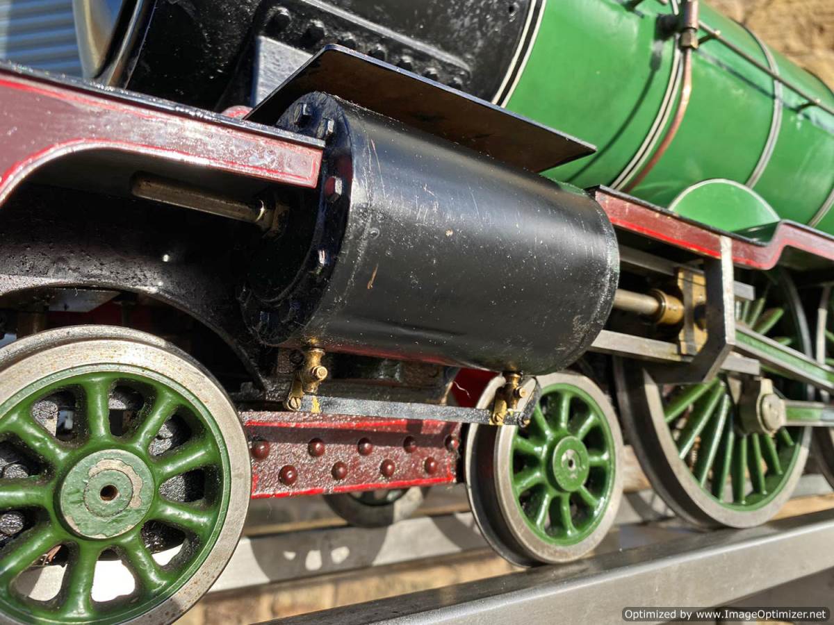 Here we have quite a rare beast. A 5" gauge GNR C1 Atlantic. Built we think to Henry Greenly's design, the model is slightly chunkily made and strongly built, but the machining work and finesse in the construction is to a nice standard. Although the backhead of the boiler is covered in a rather horrid layer of black paint, the boiler is copper, solidly made and as with the vast majority of our models, she will leave here with a fresh hydraulic test to twice working pressure rather than just 1 1/2 times, (because we are good like that), and a fresh annual steam test so you can be confident that she's ready to play. We might even strip off that paint and give it a nice smooth coat of high temperature satin black before it leaves as it's hurting our eyes!