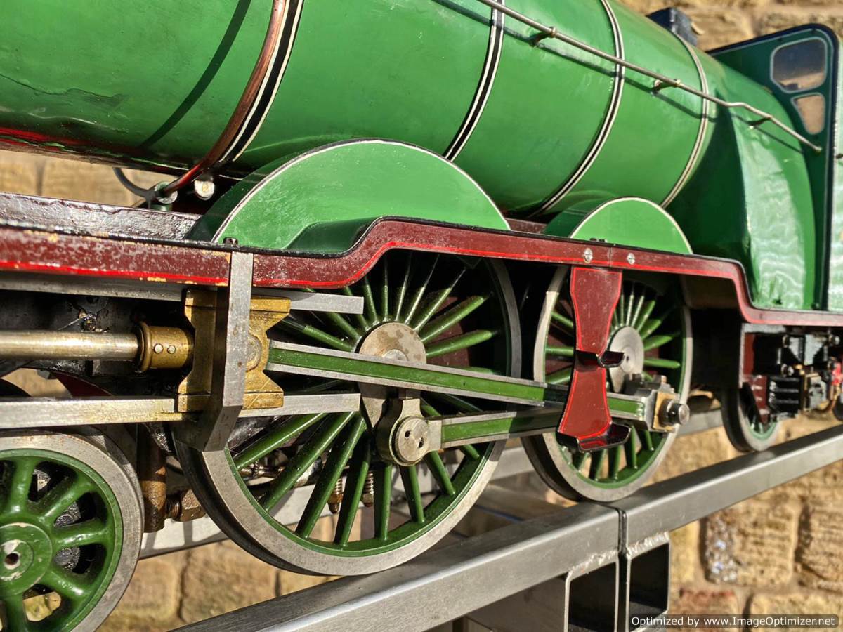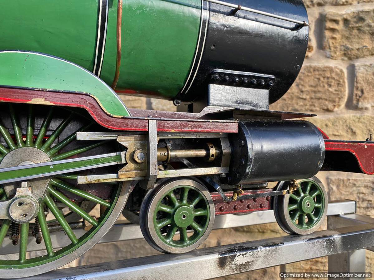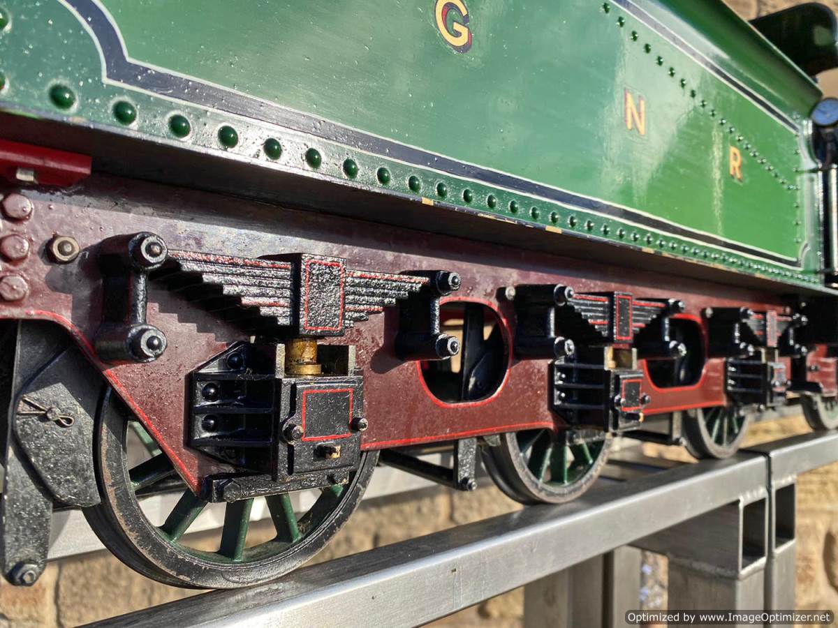Here we have quite a rare beast. A 5" gauge GNR C1 Atlantic. Built we think to Henry Greenly's design, the model is slightly chunkily made and strongly built, but the machining work and finesse in the construction is to a nice standard. Although the backhead of the boiler is covered in a rather horrid layer of black paint, the boiler is copper, solidly made and as with the vast majority of our models, she will leave here with a fresh hydraulic test to twice working pressure rather than just 1 1/2 times, (because we are good like that), and a fresh annual steam test so you can be confident that she's ready to play. We might even strip off that paint and give it a nice smooth coat of high temperature satin black before it leaves as it's hurting our eyes!
