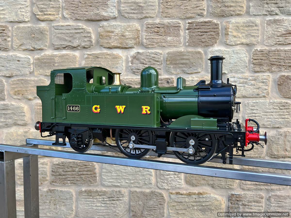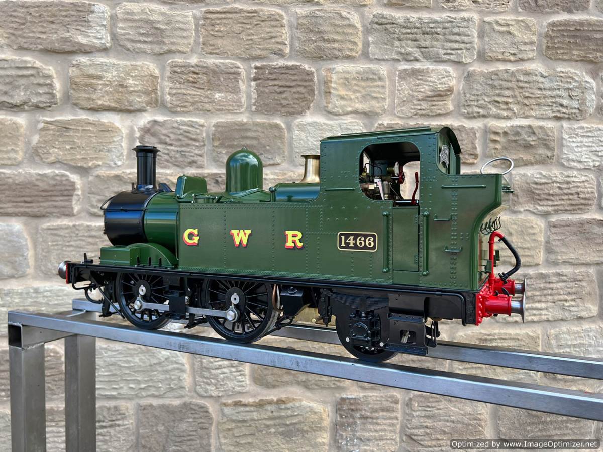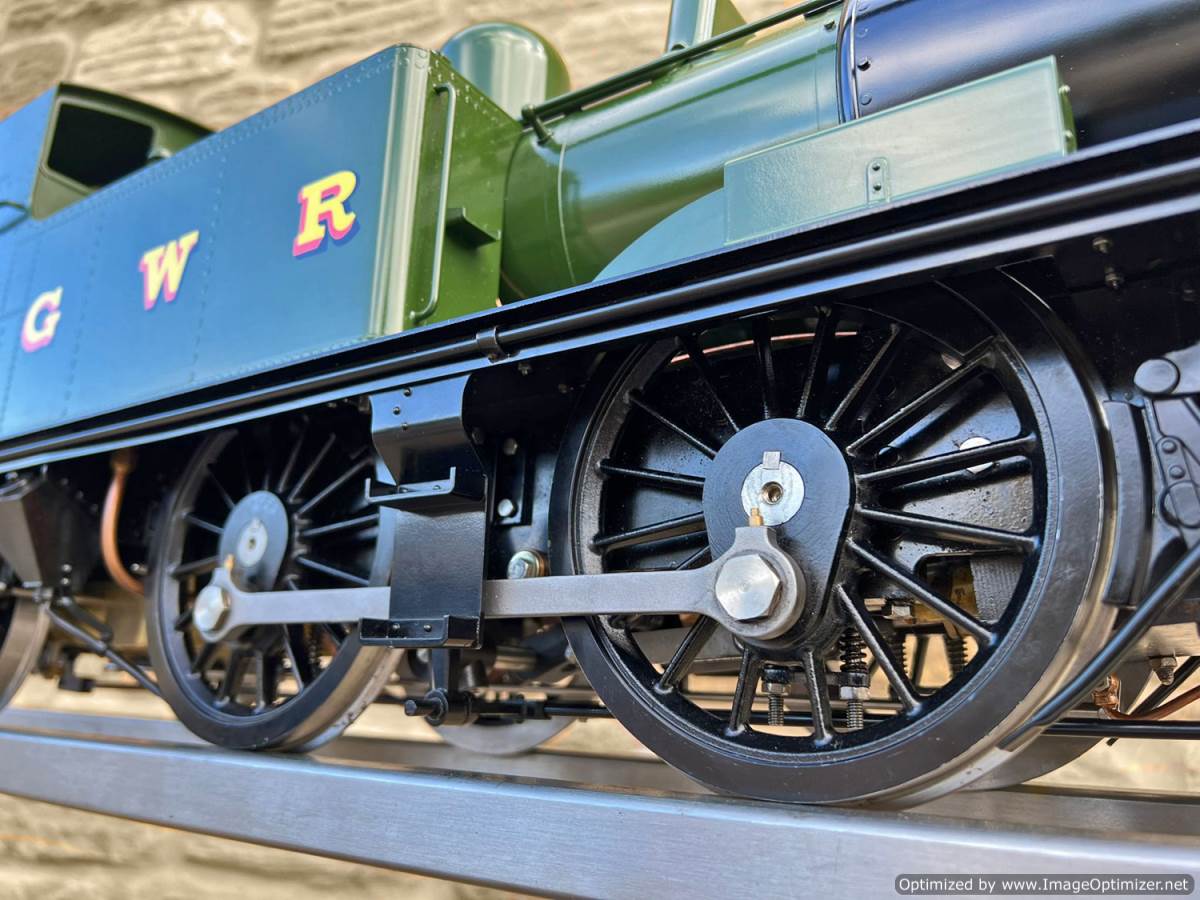 Here we have a 5" gauge GWR 14xx manufactured by Kingscale. Another brand new and unsteamed model. Most of us know the score with the Kingscale models by now, and this one is no exception. It's a very pretty looking model with loads of nice detailing, the boiler is professionally silver soldered copper and very neatly done. With the Kingscale models, everything essentially seems to work straight out of the box, so you can just get straight out on track and it'll all do what it was designed to do,..... however,.... (and we know you could sense the 'but' coming),.... the machining tolerances, the general fit of the bushes and valve gear, and indeed certain of the material choices on the bottom end are not quite the same as you'd expect from a new model built by a traditional model engineer.