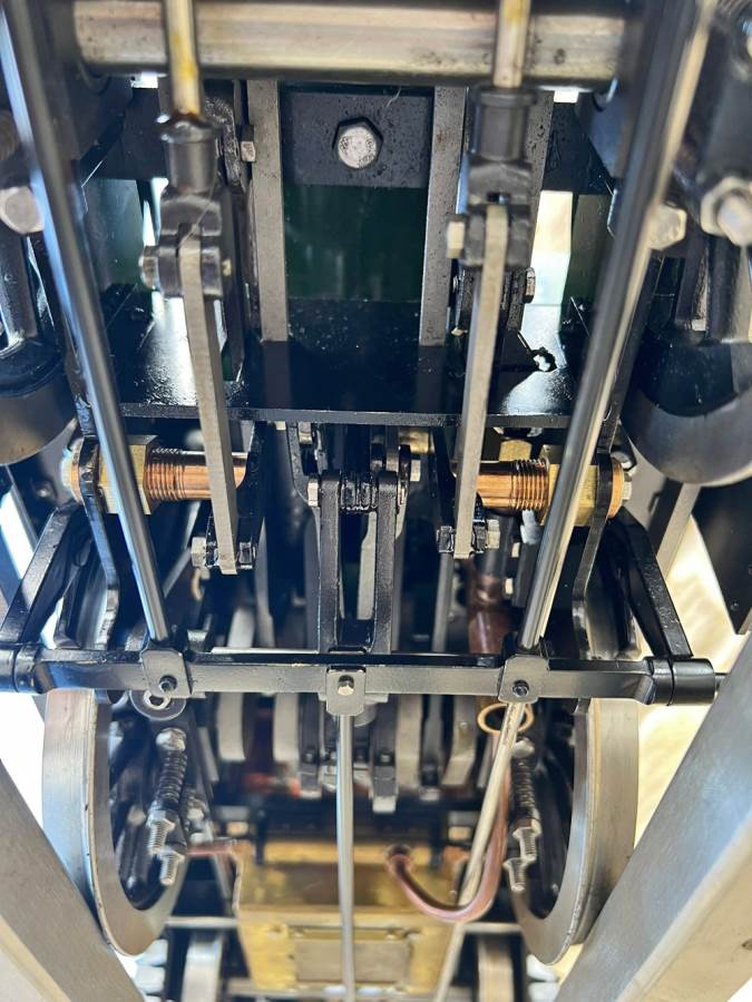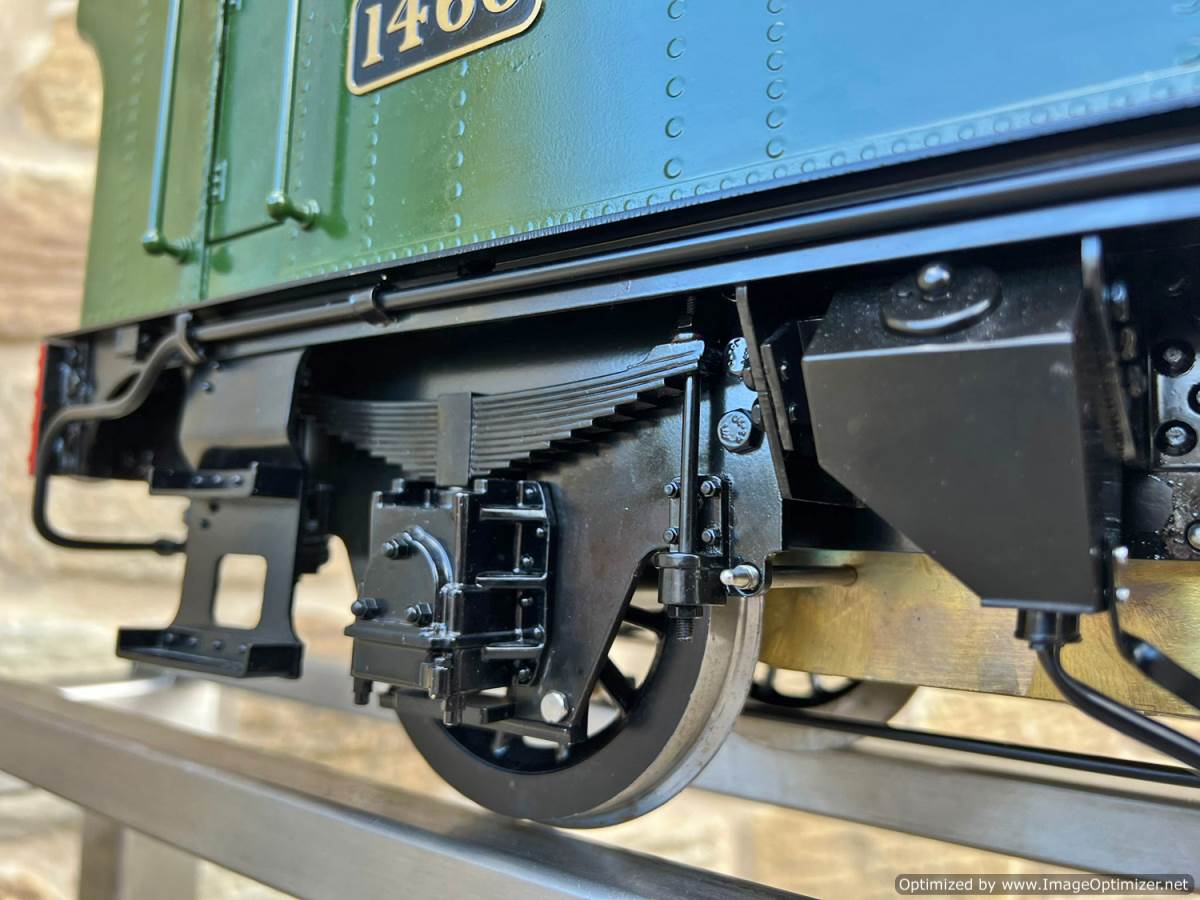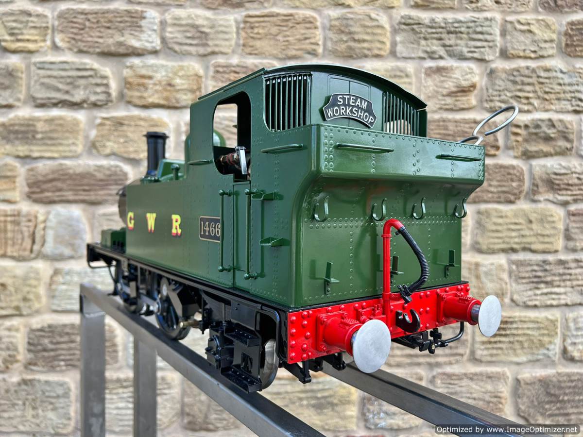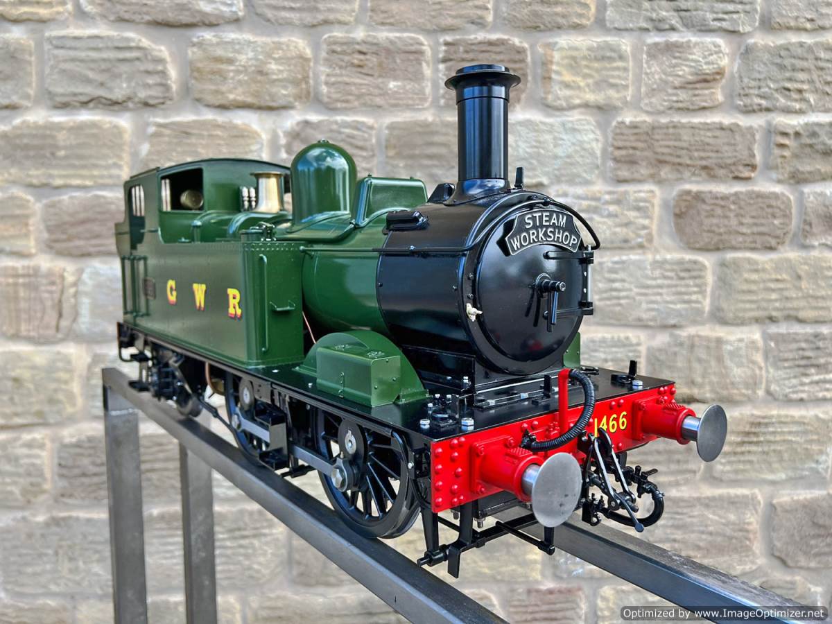 Here we have a 5" gauge GWR 14xx manufactured by Kingscale. Another brand new and unsteamed model. Most of us know the score with the Kingscale models by now, and this one is no exception. It's a very pretty looking model with loads of nice detailing, the boiler is professionally silver soldered copper and very neatly done. With the Kingscale models, everything essentially seems to work straight out of the box, so you can just get straight out on track and it'll all do what it was designed to do,..... however,.... (and we know you could sense the 'but' coming),.... the machining tolerances, the general fit of the bushes and valve gear, and indeed certain of the material choices on the bottom end are not quite the same as you'd expect from a new model built by a traditional model engineer.