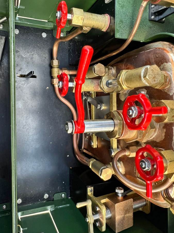 That all said, it's a relatively inexpensive route into 5" gauge model engineering, and we think that as long as you know what you are buying they represent very good value for money. So there's an injector fitted, a crosshead pump with footplate mounted bypass valve and of course a hand pump in the tank. Lubrication is simple displacement type,.... the addition of a simple sight feed regulator in the footplate would be a definite improvement, but again, as it stands it does work and will run and work well enough as it stands.