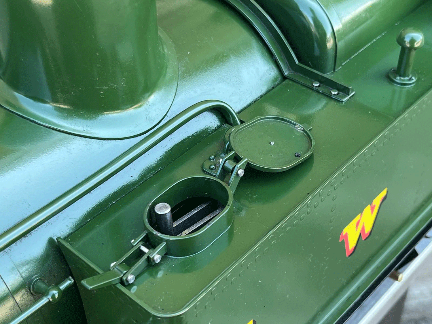 There's a crosshead pump fitted with footplate mounted bypass valve and of course a hand pump in the tank. There is also a steam valve for an injector, so it wouldn't take much at all to plumb on in for you if you'd like. Lubrication is simple displacement type,.... the addition of a simple sight feed regulator in the footplate would be a definite improvement, but again, as it stands it does work and will run and work well enough in it's current format, and can of course come with fresh hydraulic and steam tests.