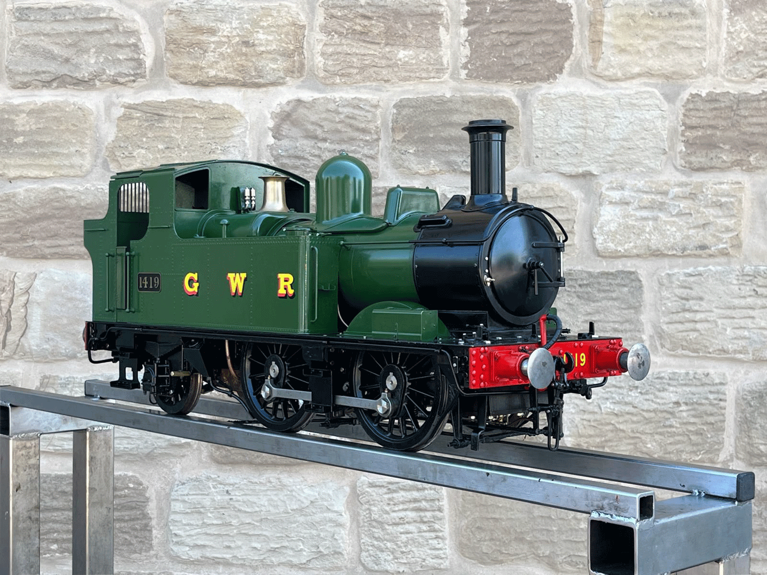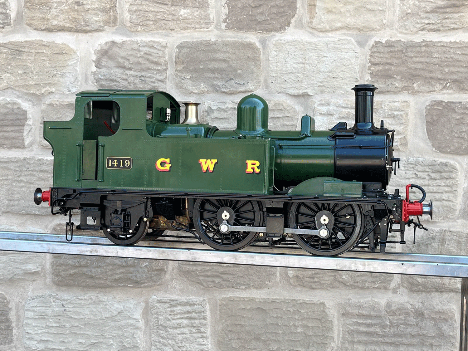 Here we have a 5" gauge GWR 14xx manufactured by Kingscale. This one has been steamed and run, but as you can see from the tidy condition, it's certainly not been run very much.