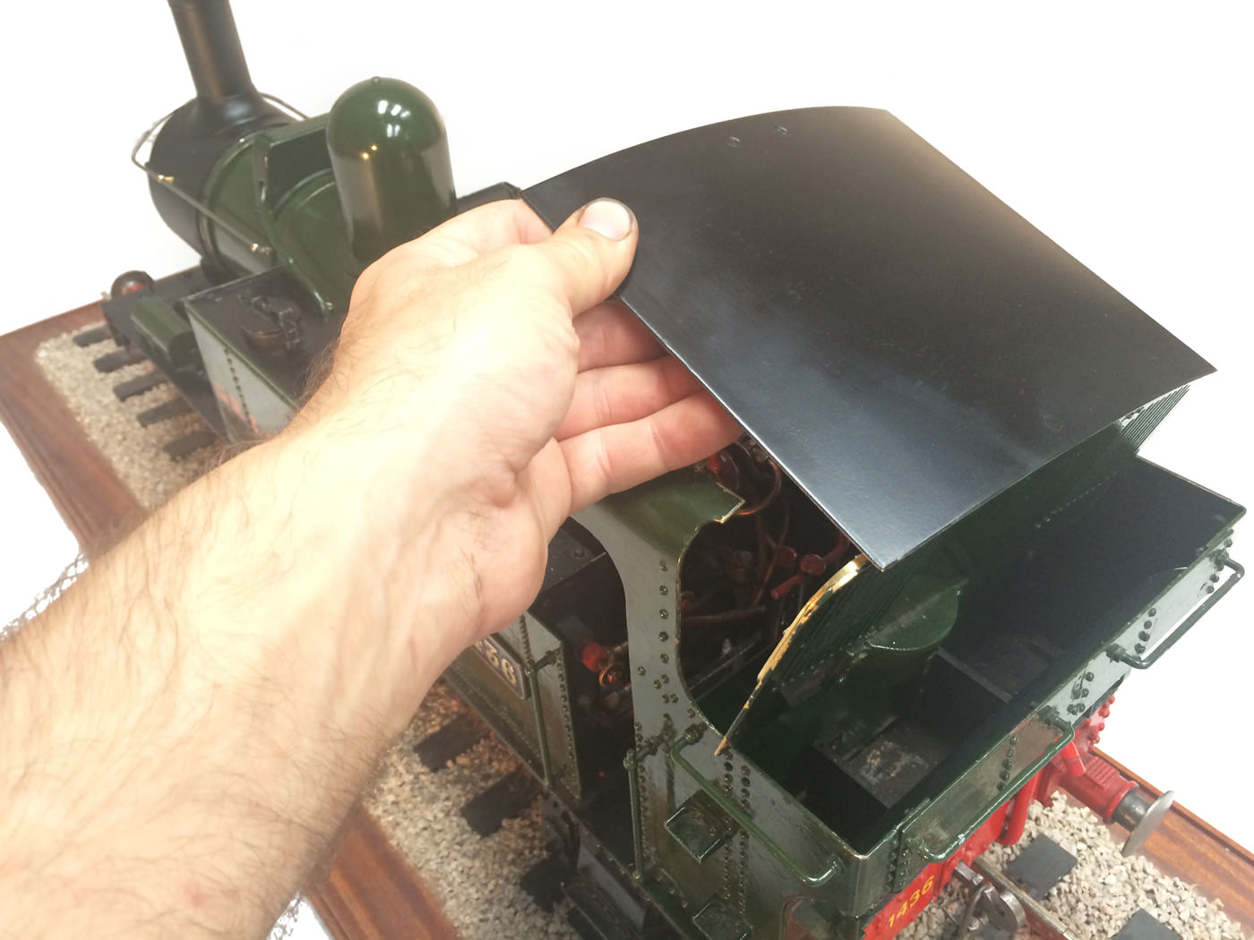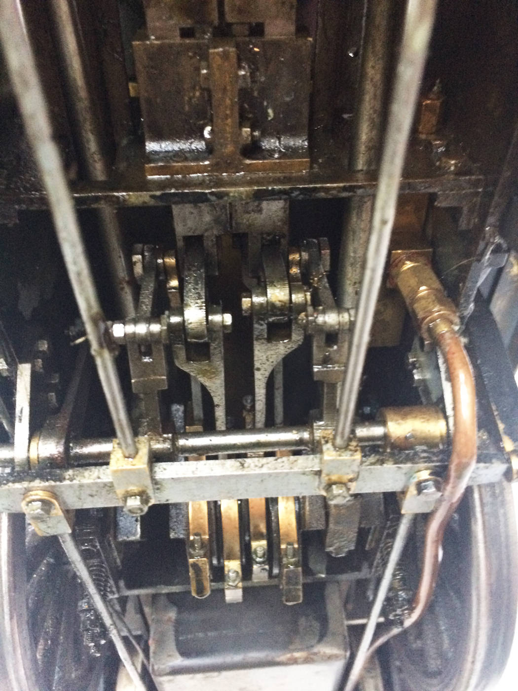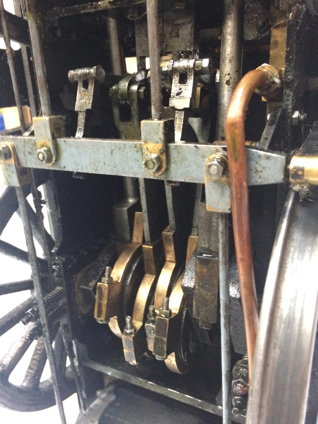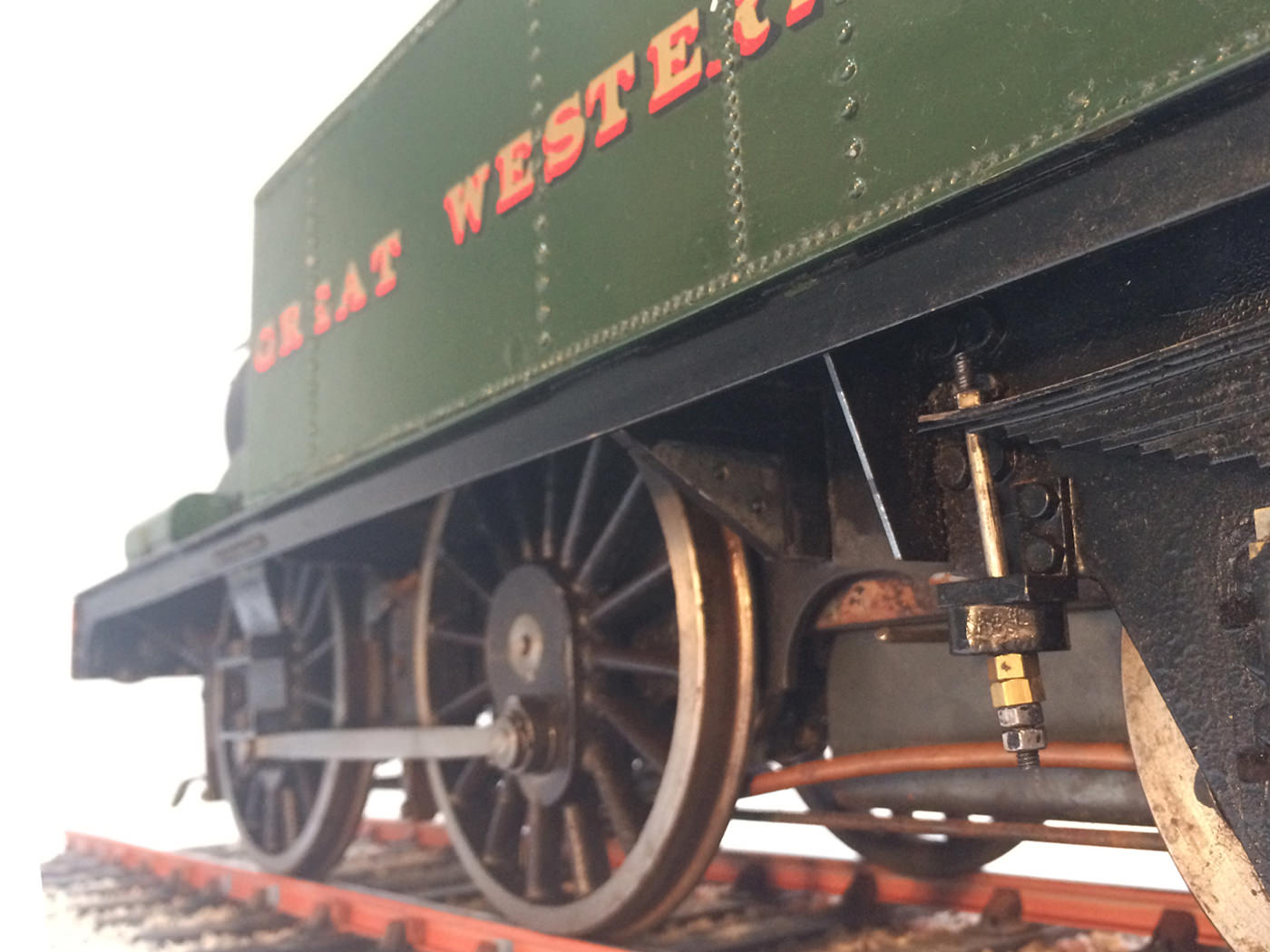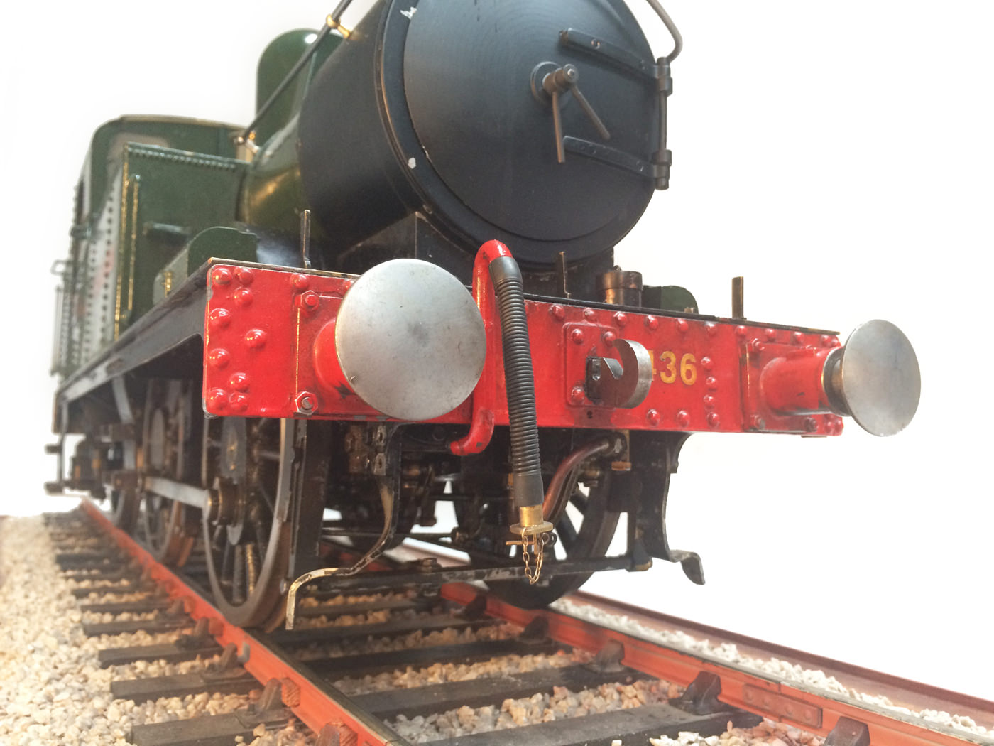 It's been fitted with a decent mechanical lubricator under the front footplate rather than the standard Modelworks one in the coal bunker! Happily the valve gear shows the tell tale signs of having been 'tweaked' to make it run properly as well. There is an injector fitted, as well as the mechanical crosshead pump between the frames (bypass valve on the footplate), and then there is the ubiquitous hand pump hidden in the right hand tank. Draincocks are proper jobs, (the modelworks ones having been ditched), and control is again from the footplate.