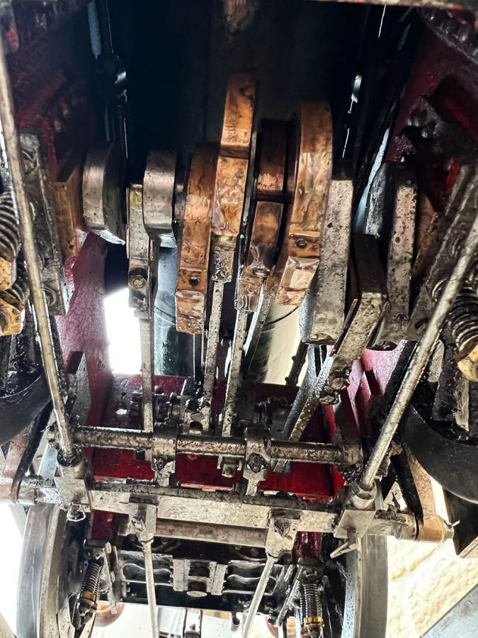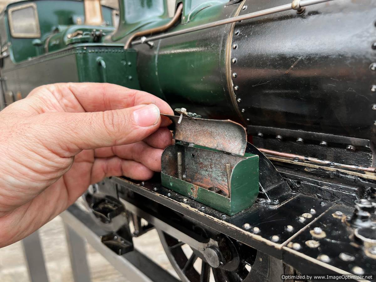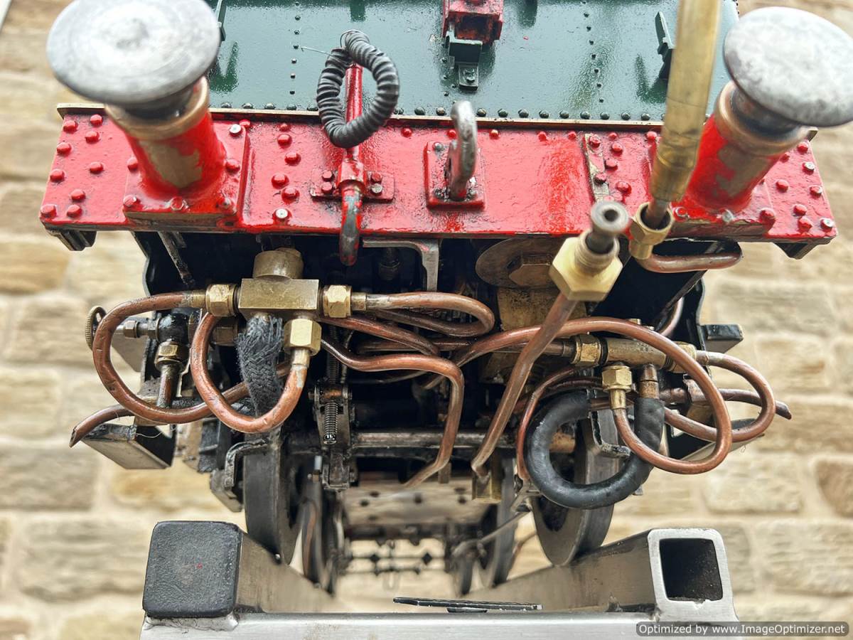 Fitted with two injectors and a hand pump on the footplate, lubrication is mechanical with two rather lovely little dip sticks in the bunker to keep an eye on how much each cylinder is using.