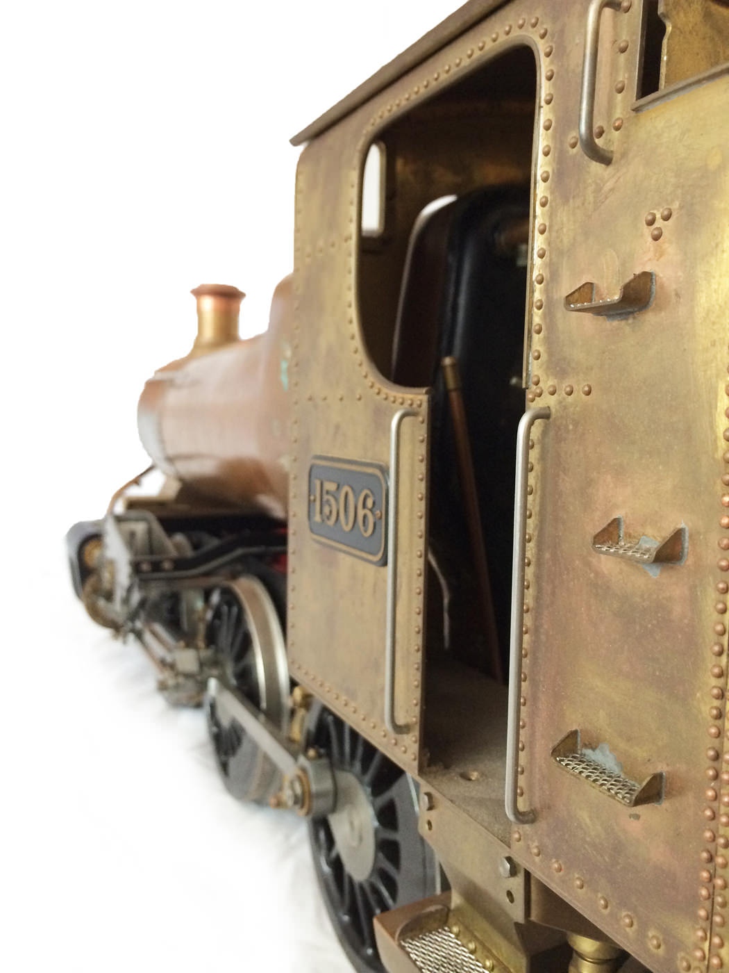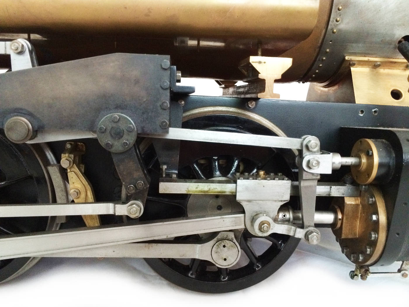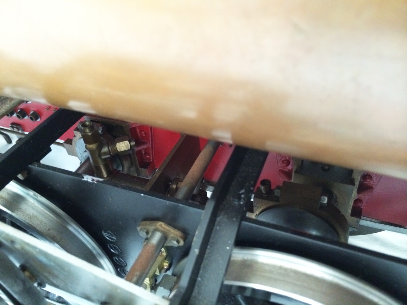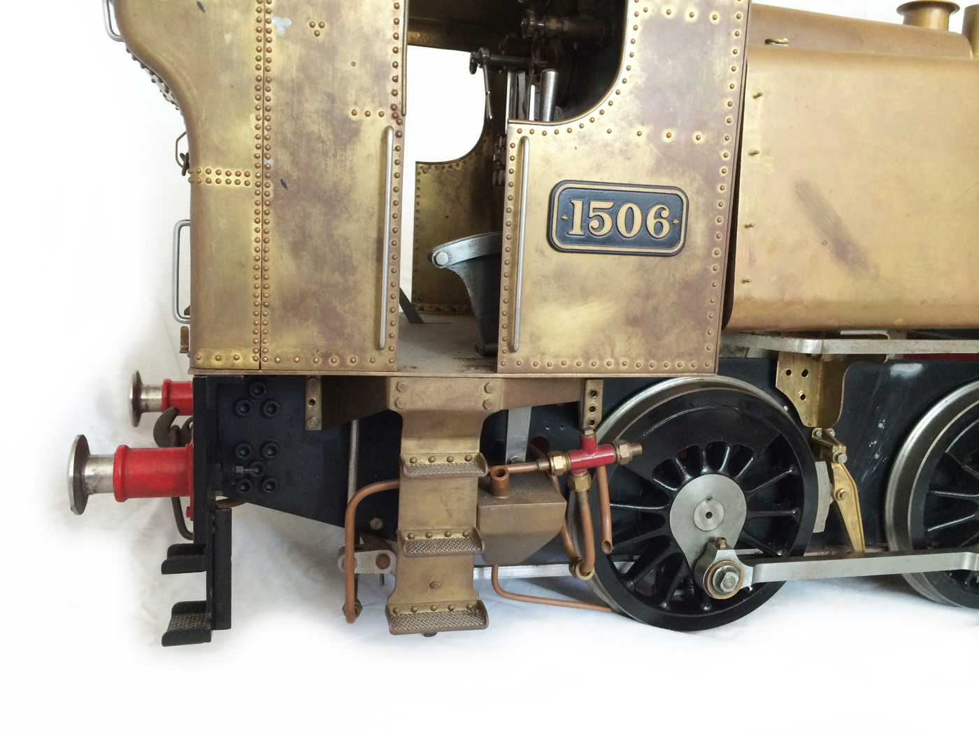 The model is probably 95% there, with the vast majority of the work is done,. As a short, but probably not exhaustive list we would say that only the ashpan (for which there is a cardboard pattern included), various jobs to the left hand pannier tank, plumbing up of the remaining pipework and a small amount of platework at the front end remains before the engine can be test steamed, stripped, primed and painted. A very nice model it will make as well. The boiler is very solidly made by the builder, and we have shell tested it to twice working pressure to ensure that it is good to go. You can also see from the photos that she is fitted with stainless superheaters.