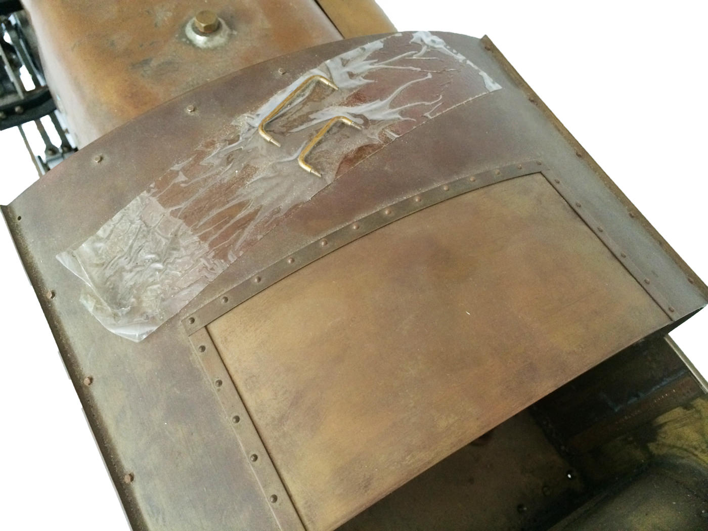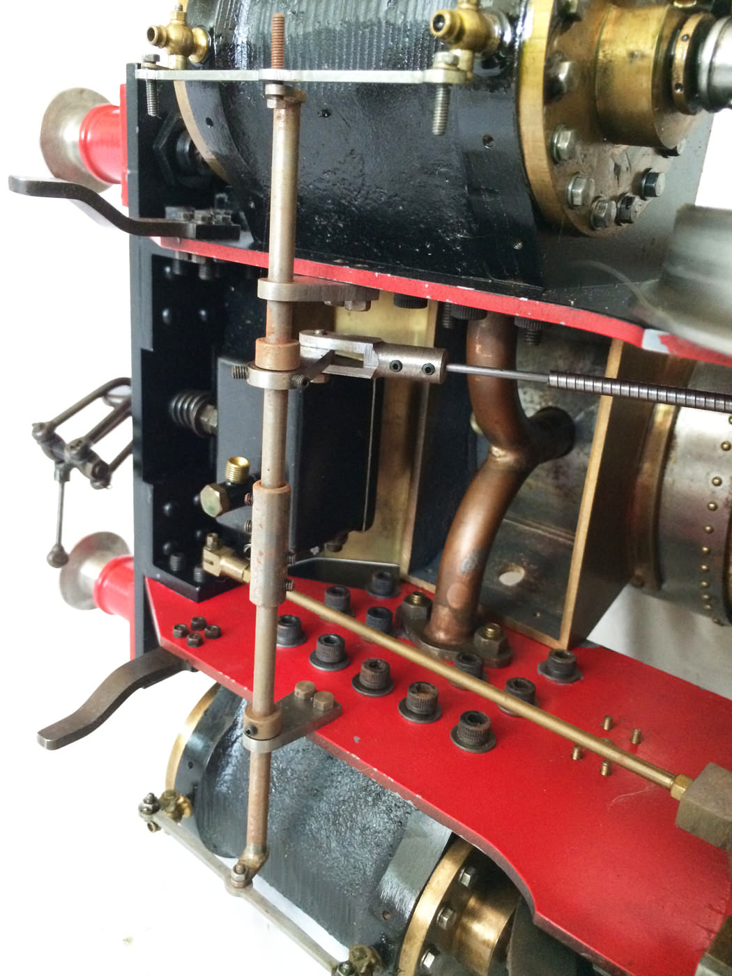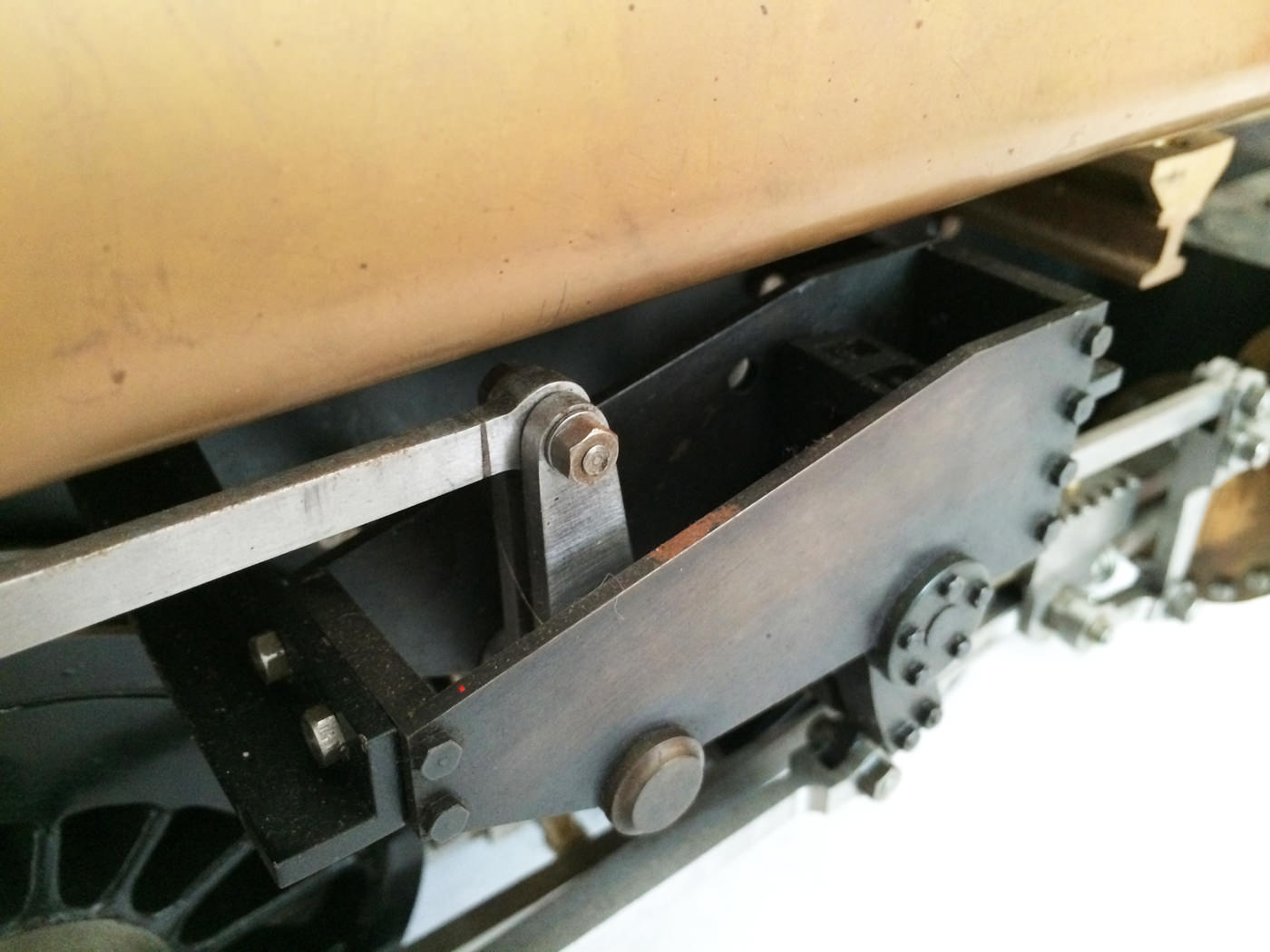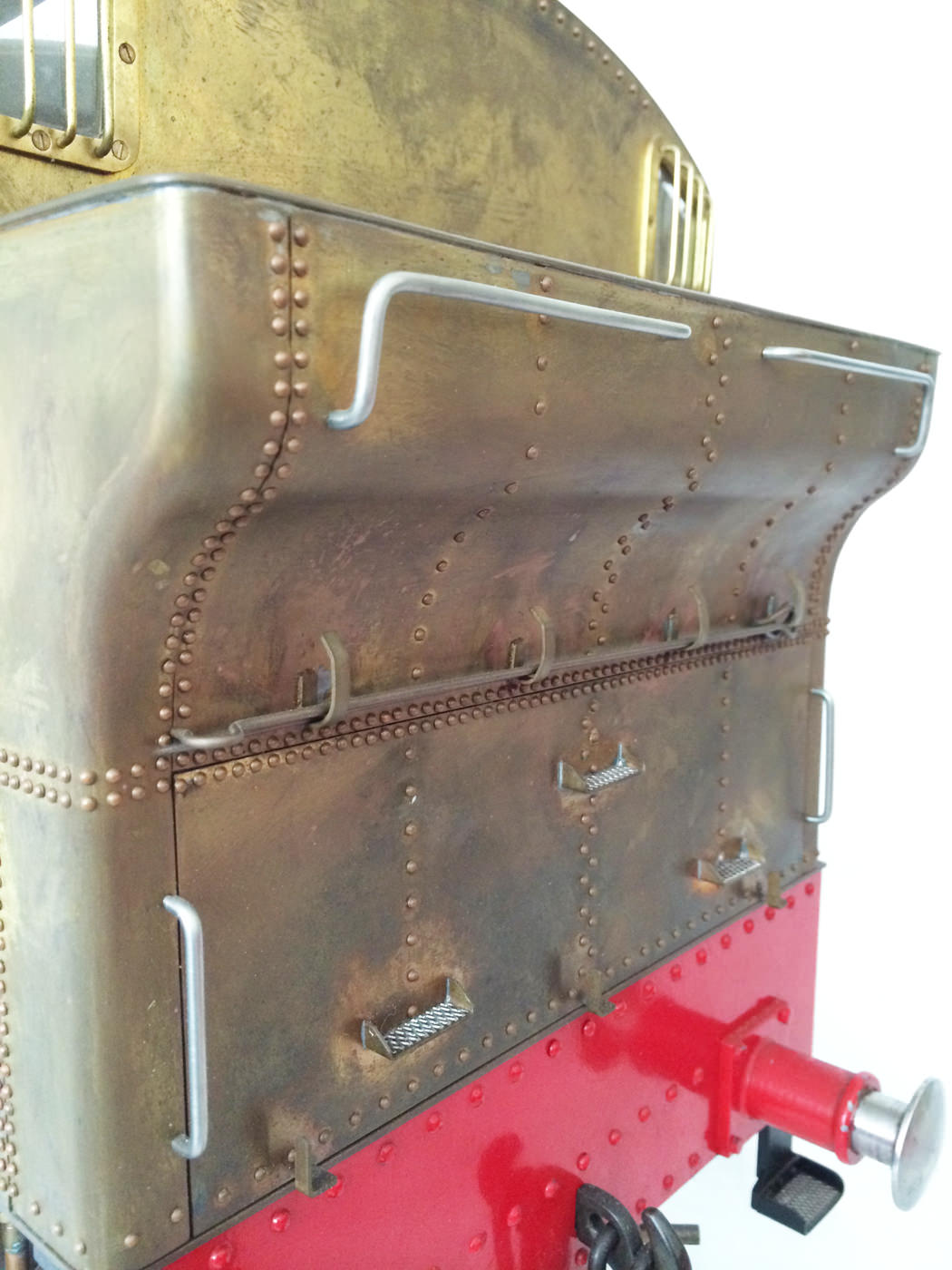 The model is probably 95% there, with the vast majority of the work is done,. As a short, but probably not exhaustive list we would say that only the ashpan (for which there is a cardboard pattern included), various jobs to the left hand pannier tank, plumbing up of the remaining pipework and a small amount of platework at the front end remains before the engine can be test steamed, stripped, primed and painted. A very nice model it will make as well. The boiler is very solidly made by the builder, and we have shell tested it to twice working pressure to ensure that it is good to go. You can also see from the photos that she is fitted with stainless superheaters.