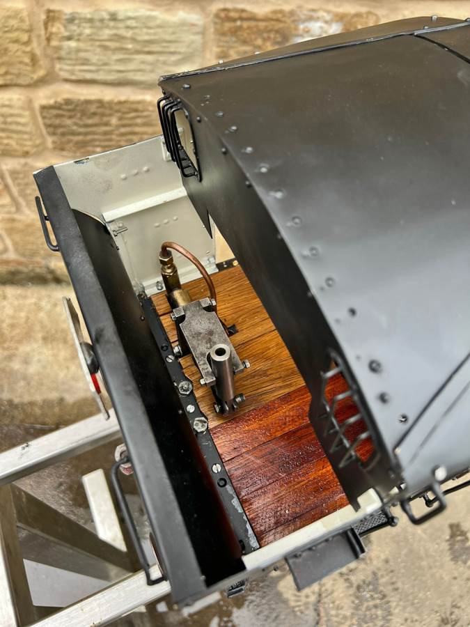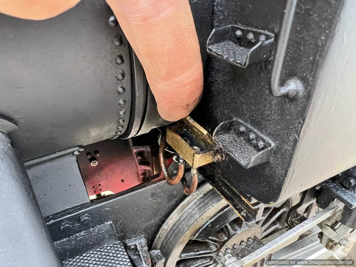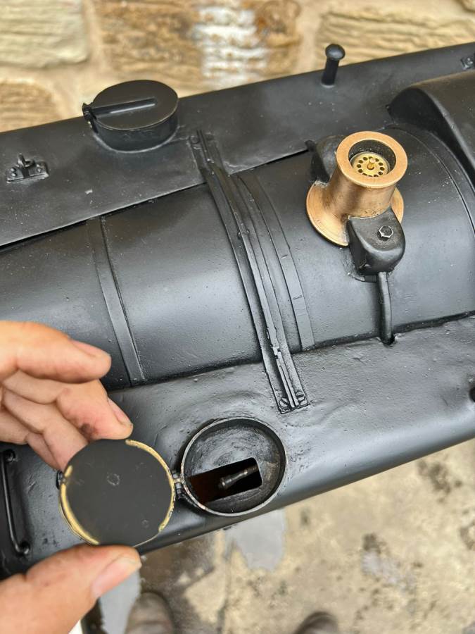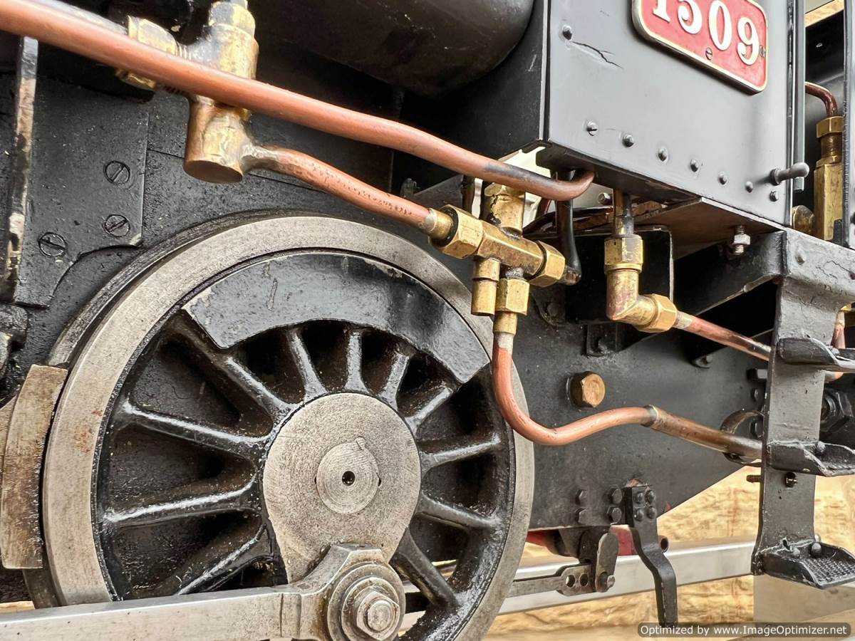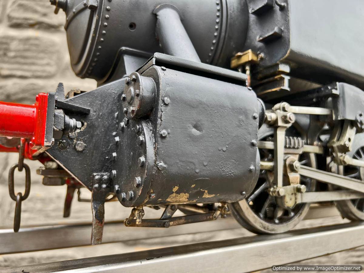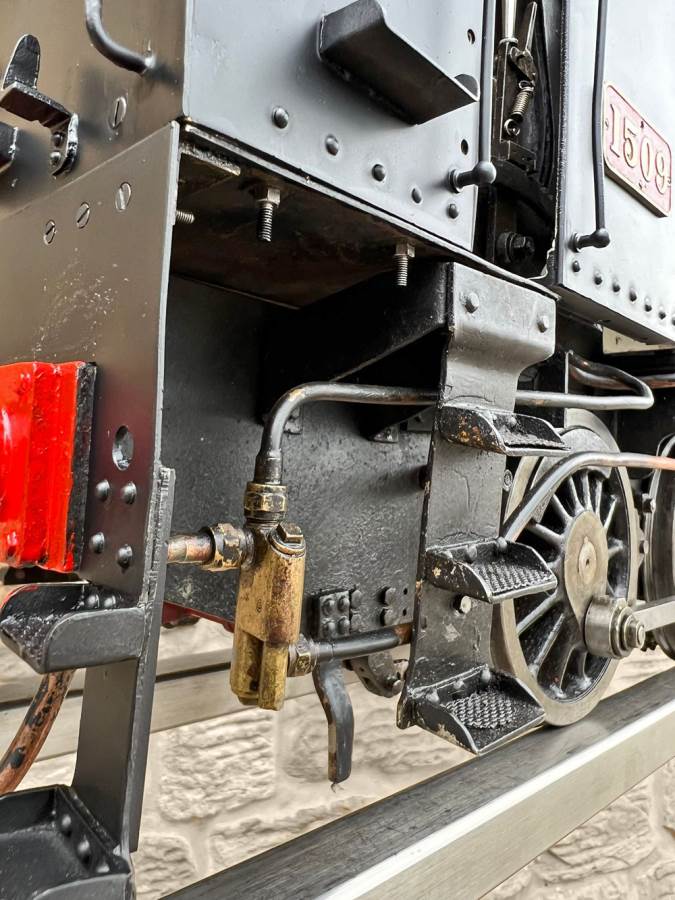 There are two injectors fitted, one being a Chiverton vertical the other a horizontal. There is an axle pump with footplate mounted bypass and over flow visible in the filler on the pannier tank, and there is also a hand pump on the footplate. Lubrication is mechanical and tucked under the front running board. There's even a steam brake fitted, although the chances of that working in any meaningful way are limited! All in all a decent and powerful model that you can enjoy without worrying about chipping the paint with your shovel!