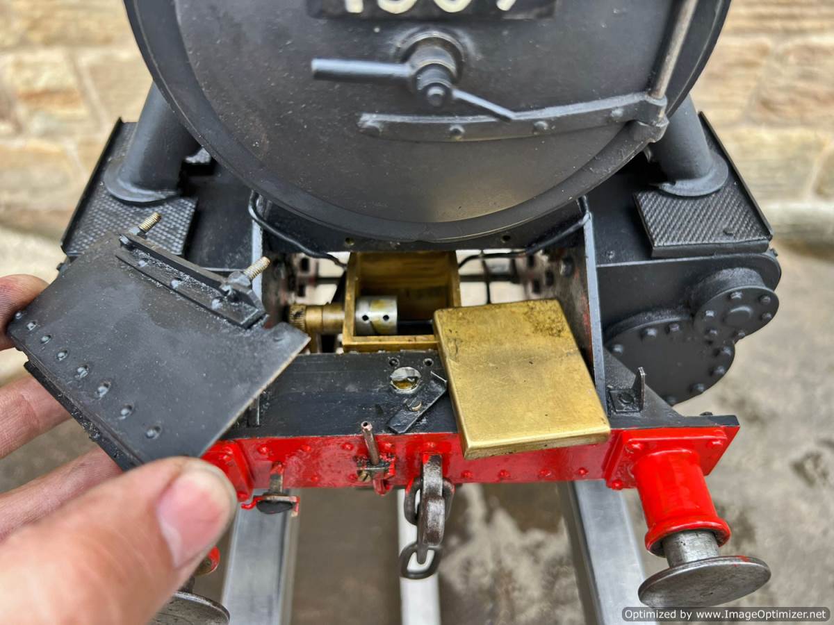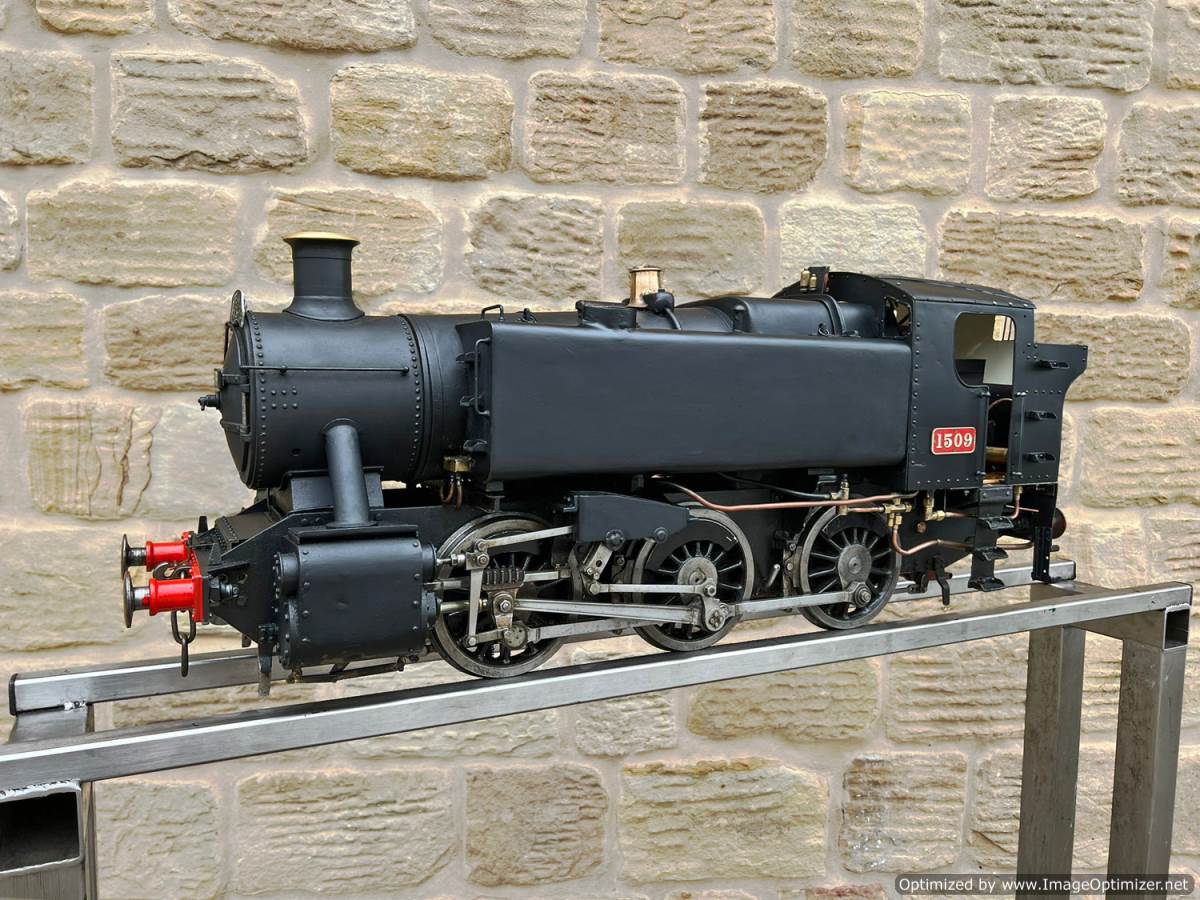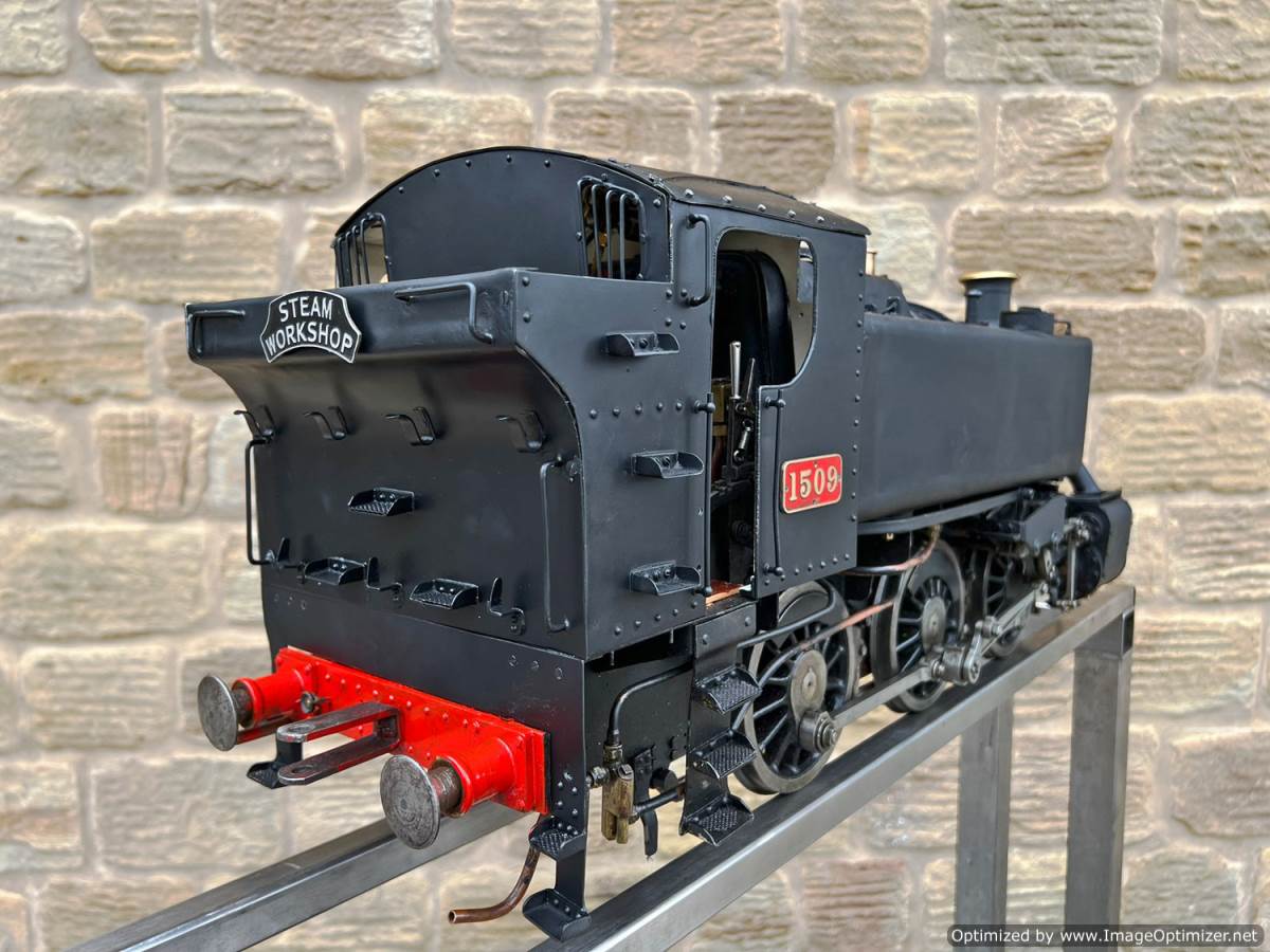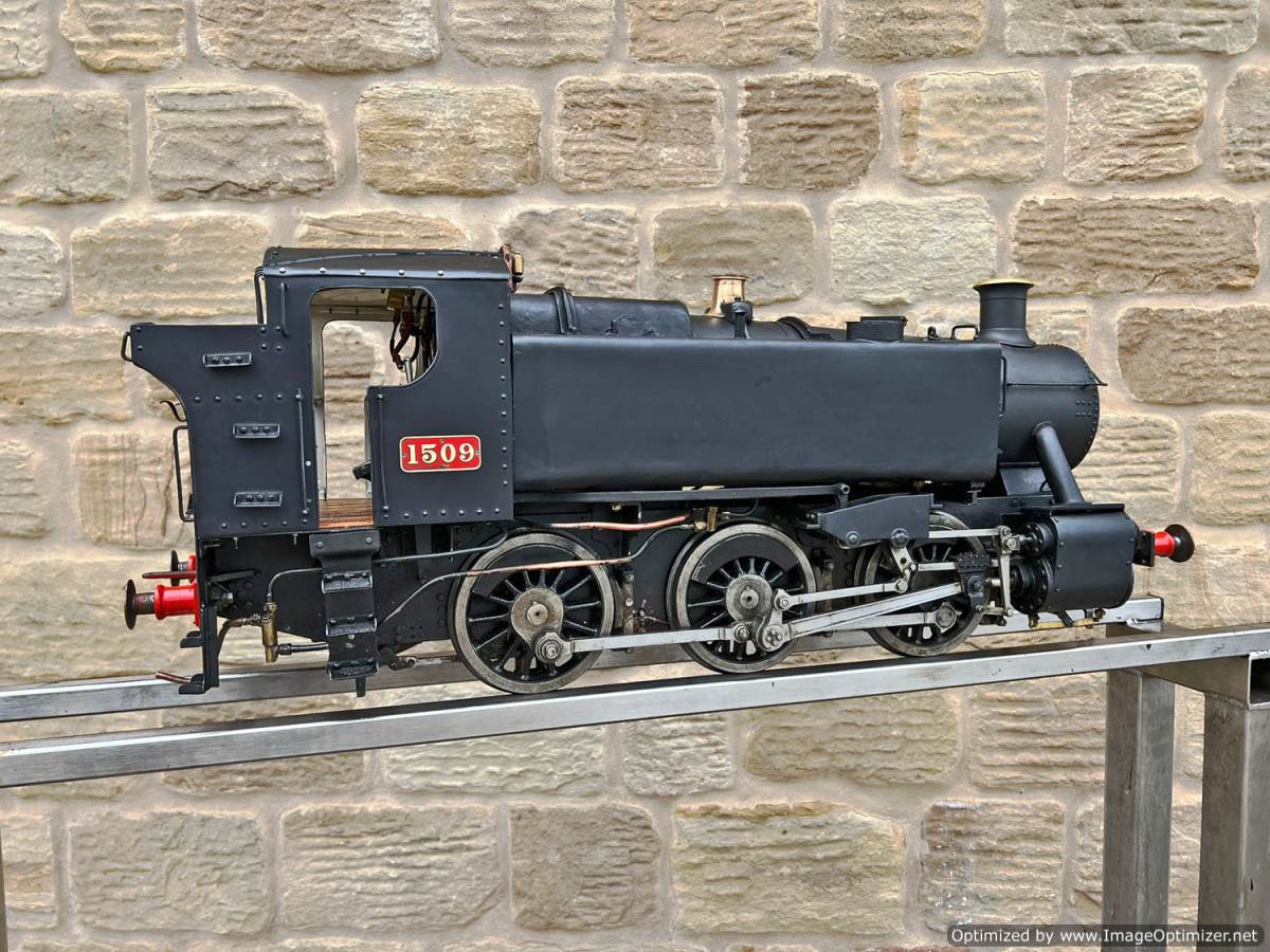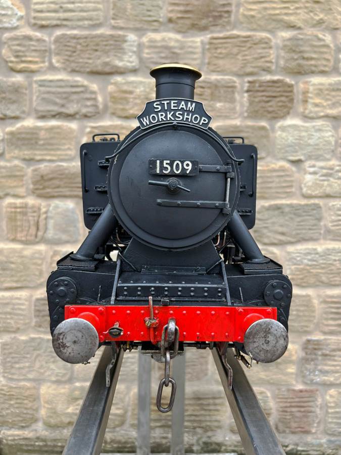Here we have a 5" gauge GWR 15xx to the powerful 'speedy' design. This is a mechanically sound loco with a decent boiler, coming as usual with a fresh 4 year hydraulic test and a fresh annual steam test with everything fully checked and working. Cosmetically it's a little basic here and there on the bodywork with a simple paint job, and although that detracts a little from it's visual appeal it does nothing to impair it's performance. Mechanically it's actually a nicely machined and well detailed model, and has the distinctive crosshead detailing of the prototype often omitted on 15xx models.