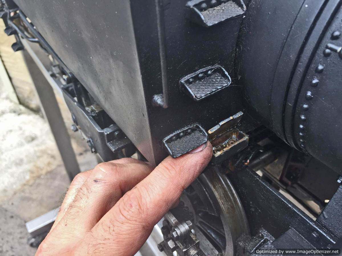 There is a pair of injectors fitted as well as an axle pump with footplate mounted bypass valve. There is a hand pump as well at the rear of the footplate as well. Lubrication is mechanical and hidden under the front footplate as usual.