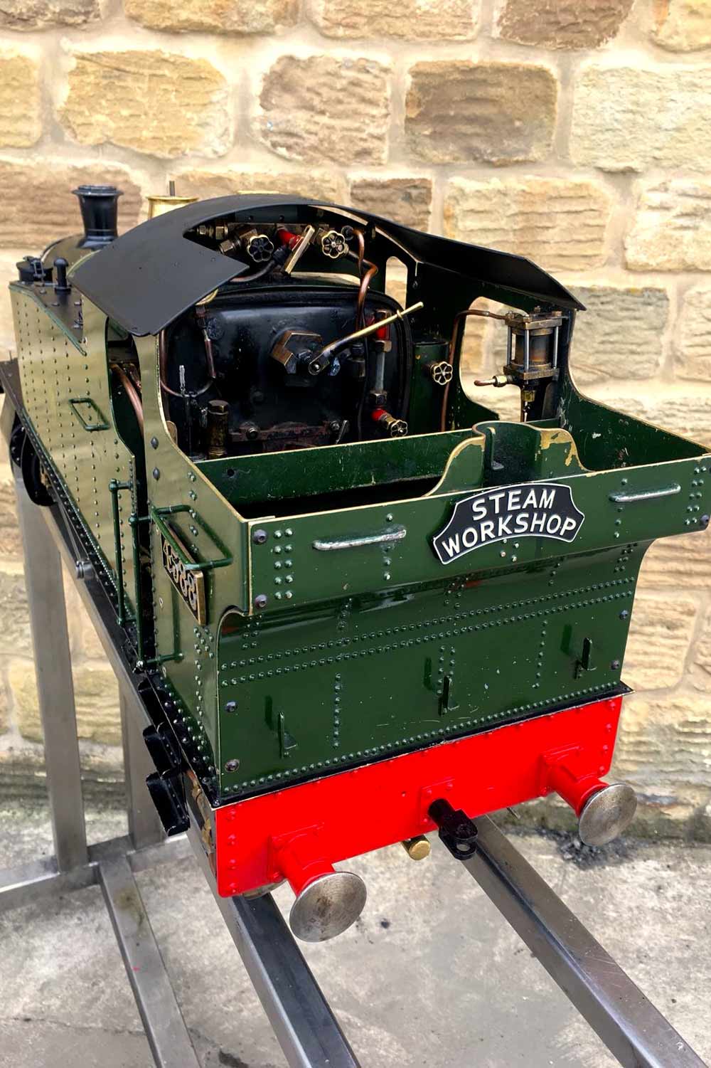 Here we have a 5″ gauge GWR small prarie tank 45xx, or rather 4575 class. We’ve sold this one before, and it’s recently come back into stock due to it’s owner moving on to other toys! Based upon a Winson/Modelworks kit, this one has been extensively re-worked mechanically to turn it into the well proven hauler that it is. The previous owner had a fetish for pulling lots of wagons, so things have been fettled and tweaked to ensure the loco was satisfyingly capable in that department.