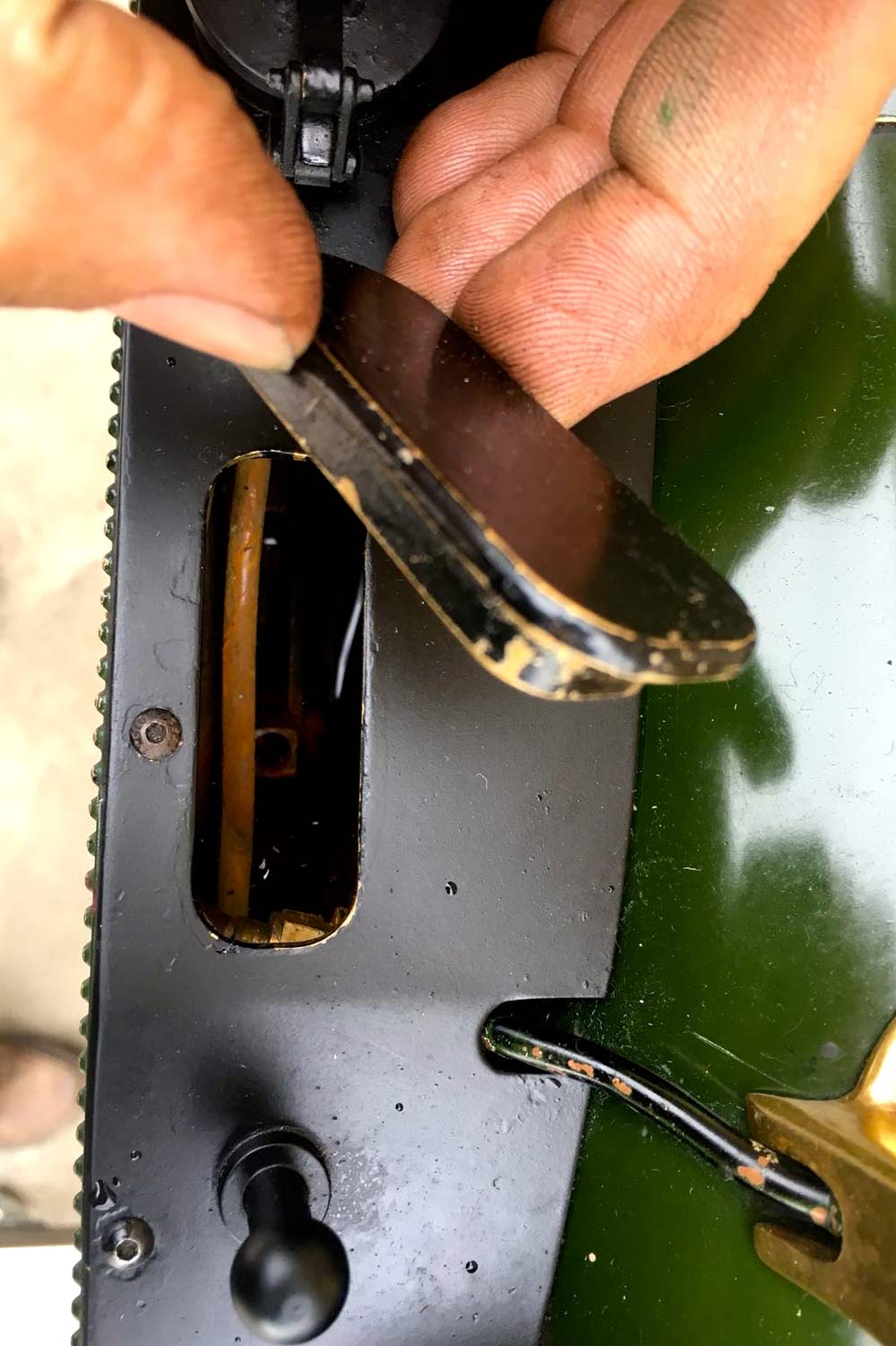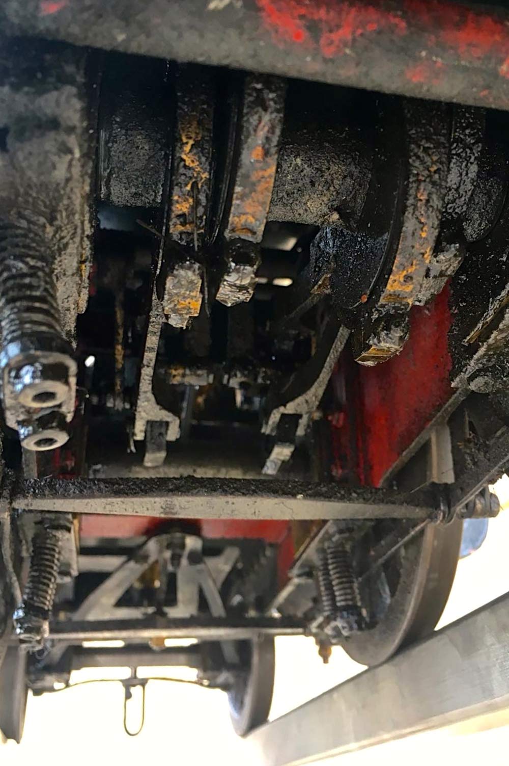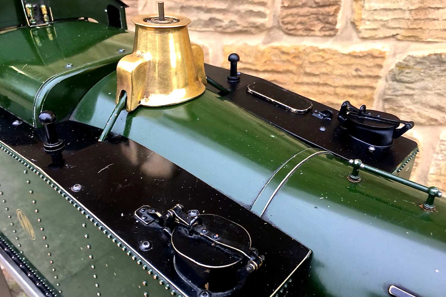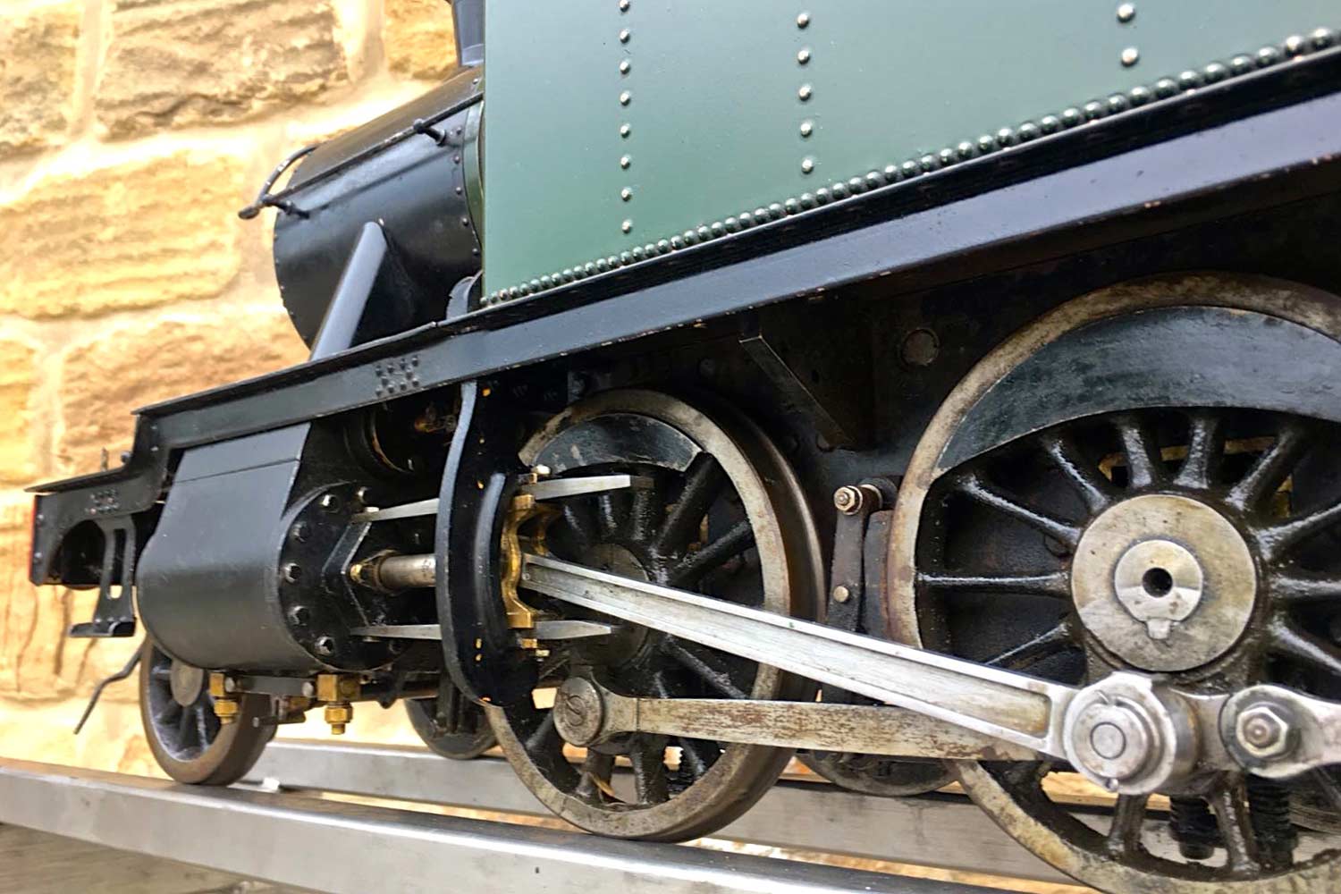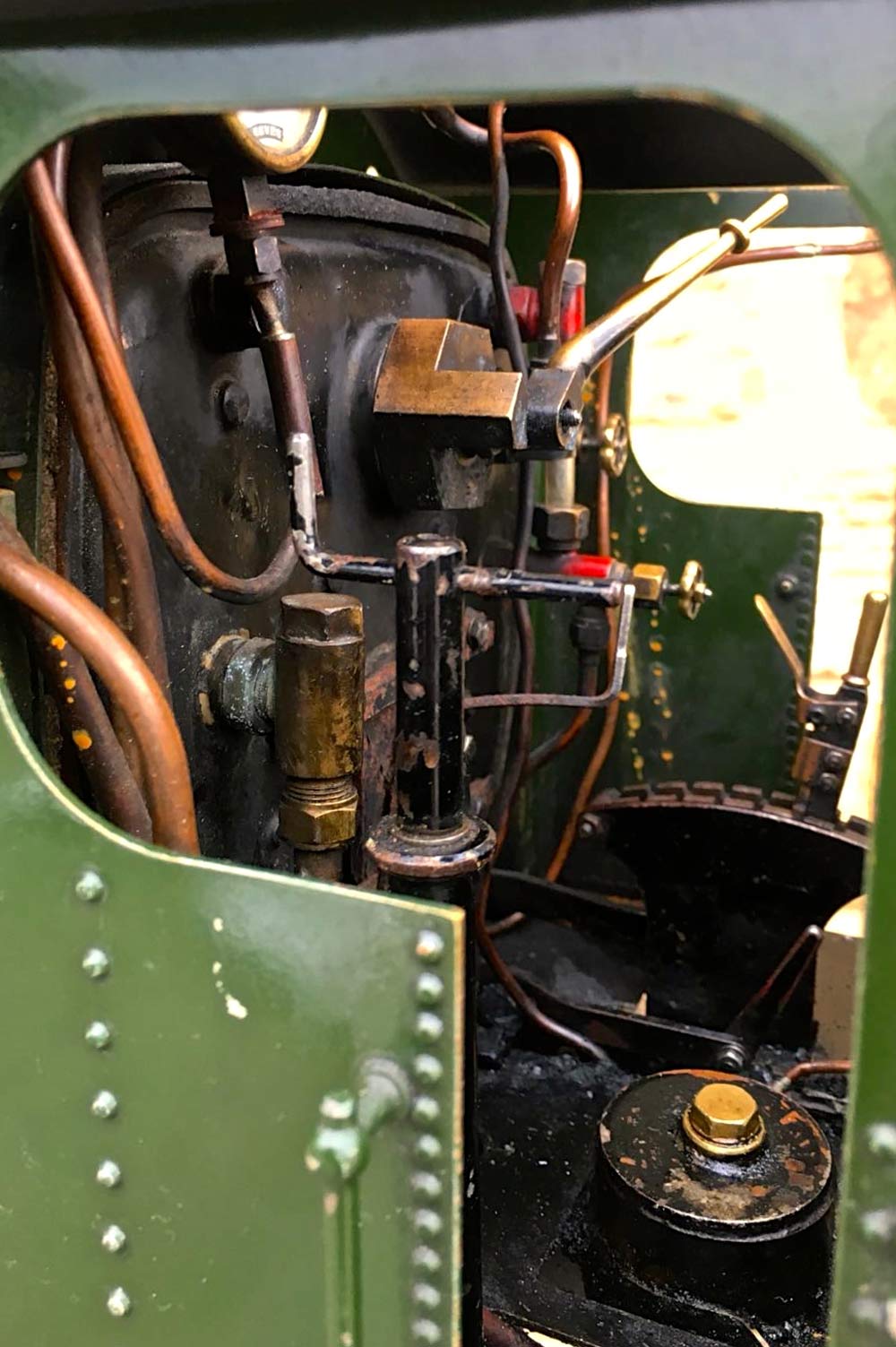 Whilst the paintwork definitely has the patina of a working loco,…. it has it’s fair share of shovel scratches and scuffs, the general appearance is purposeful and workmanlike rather than scruffy. It certainly doesn’t need a re-paint just yet! There is an injector, a hand pump in the tank and a crosshead water pump in the usual prototypical GWR location, with footplate mounted bypass valve. Draincocks are footplate operated, and lubrication on this one is via a large displacement reservoir under the footplate floor and regulateable sight feed glass in the cab.