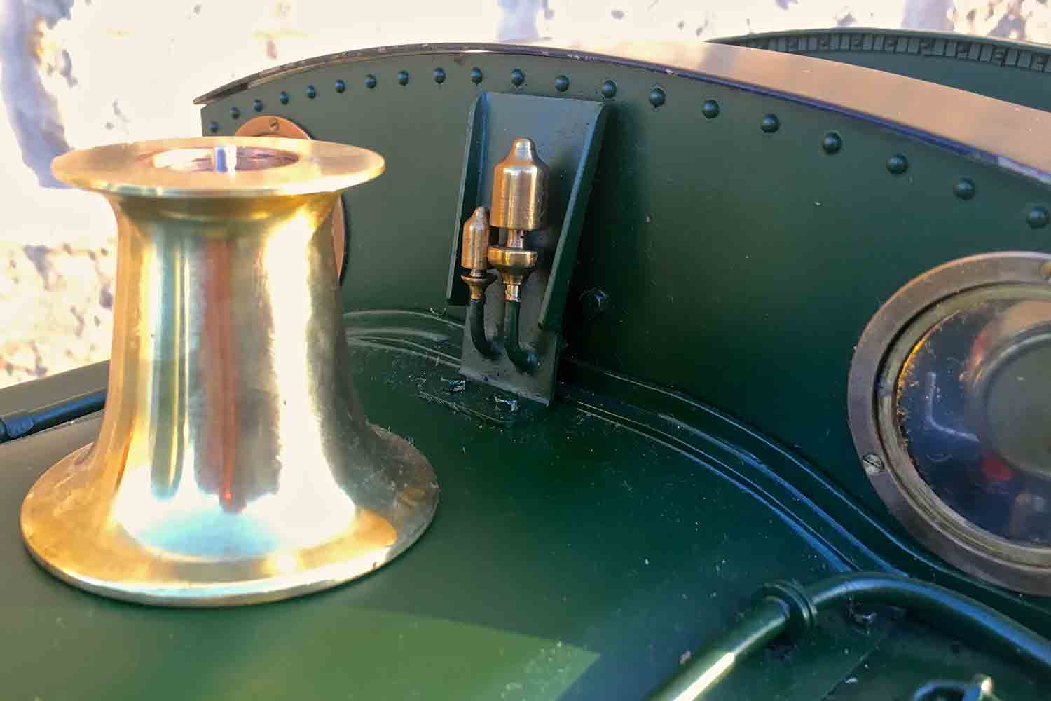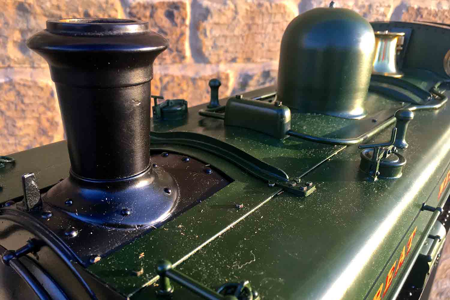 The boiler is of course silver soldered copper, and can be given a full fresh 4 year hydraulic boiler test as well as a fresh annual steam test so that the engine is ready for you to play. Currently although not unsteamed, the model doesn't look or feel like it's seen much action at all. It's been very well looked after by it's previous owner. The motion is still nice and tight and we are confident that it will run very smoothly when we steam her up.