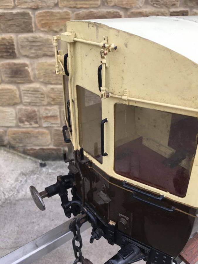 Here we have a particularly nicely detailed 5" gauge GWR Autocoach. Based upon the kit produced by Modelworks, this one has had the wheelsets 'tweaked' (as the kit required) so that the back to backs were correct for ground level running and points.