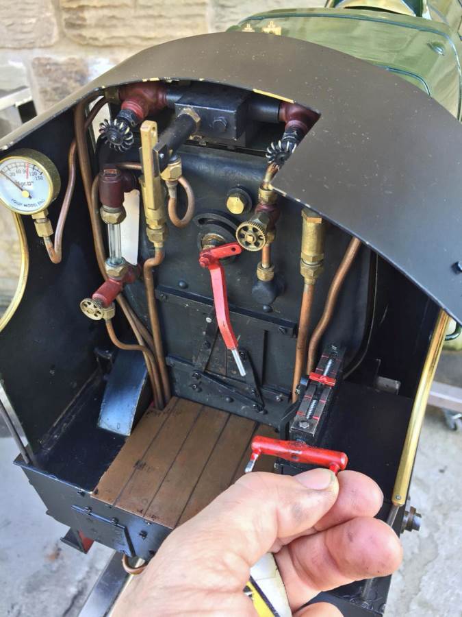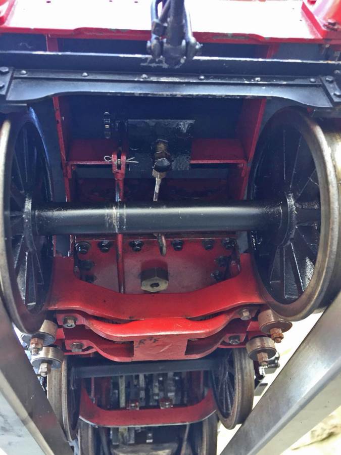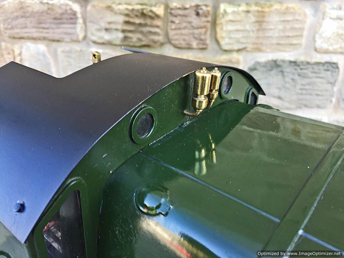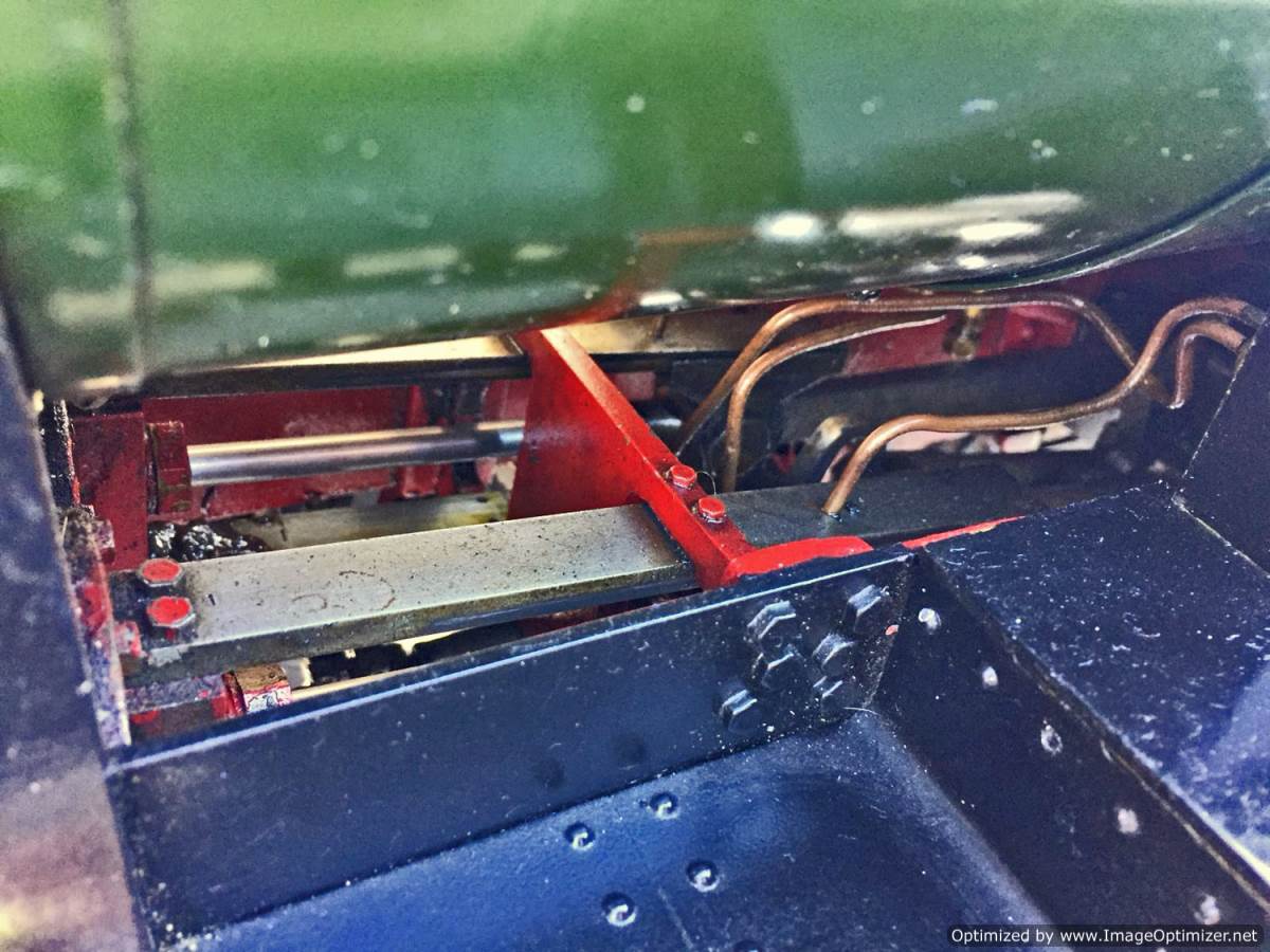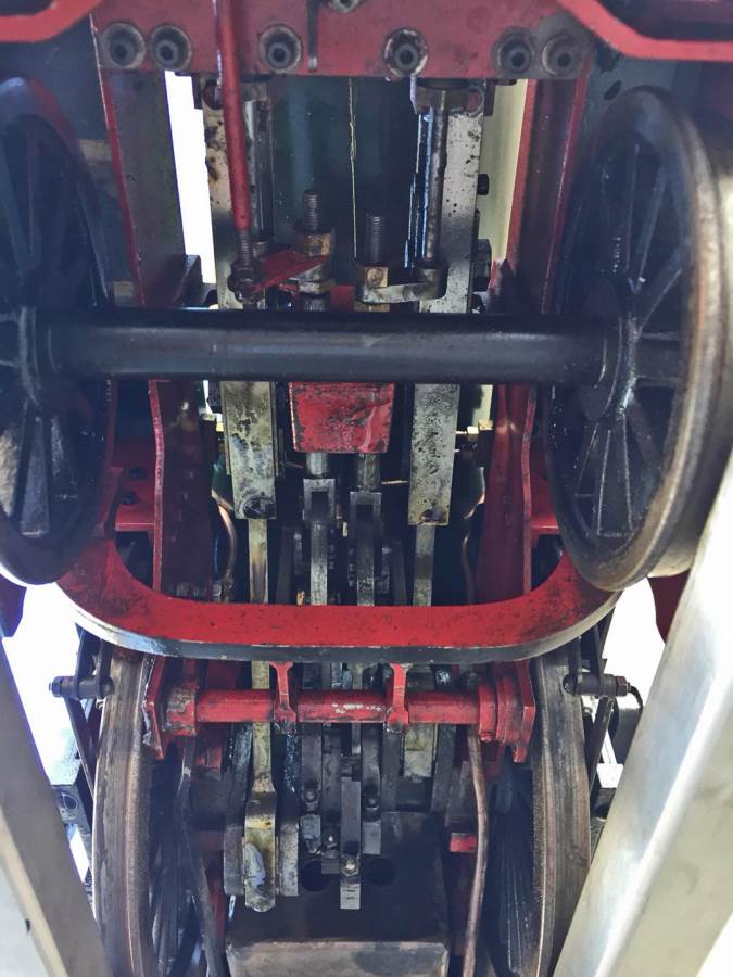 Lots of good thought has been put into getting lubrication into the difficult to reach bits between the frames, and as you can see from the photographs and film, the sand boxes are actually oil pots for the internal valve gear. Main cylinder lubrication is mechanical and hidden under the front running board. There are two injectors fitted and both pick up beautifully first time. The engine has a hand pump in the tender as well.