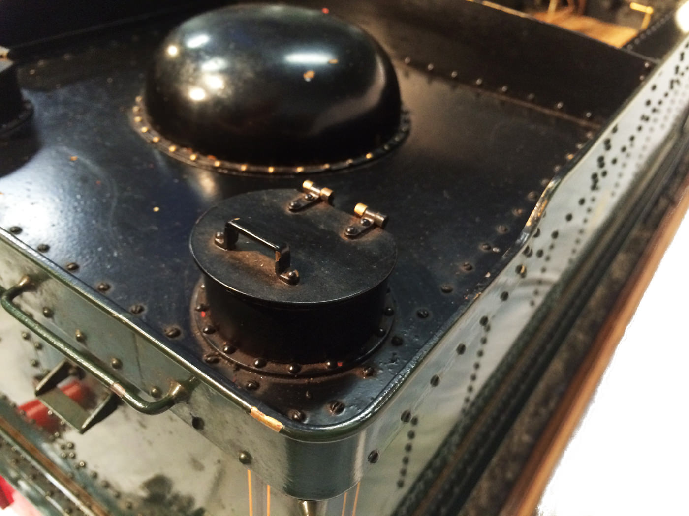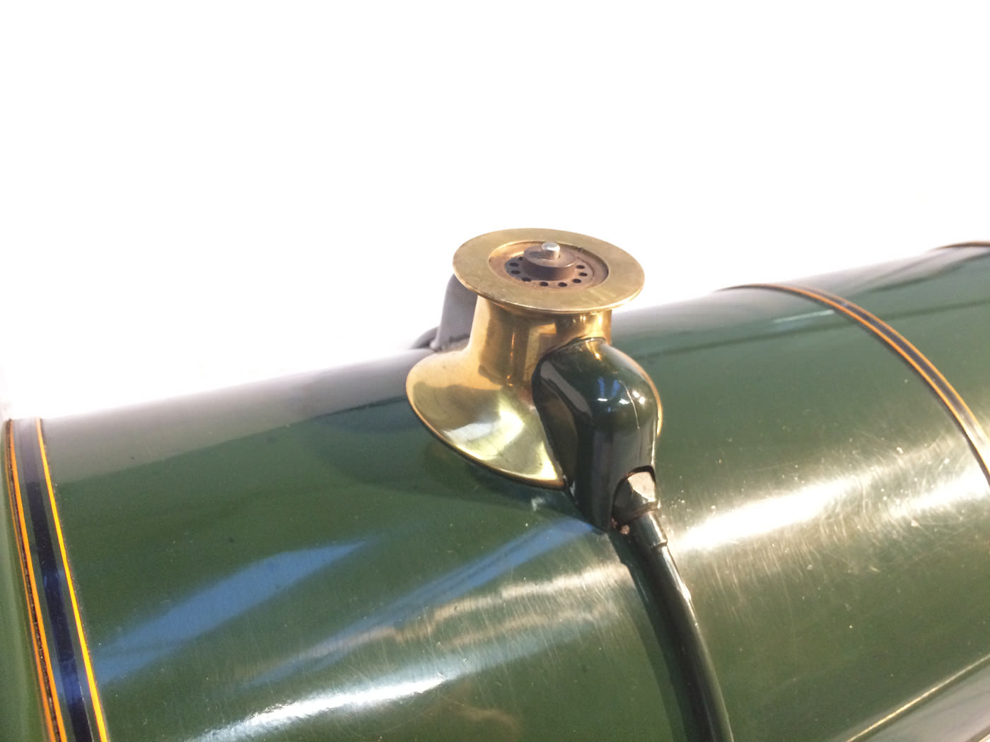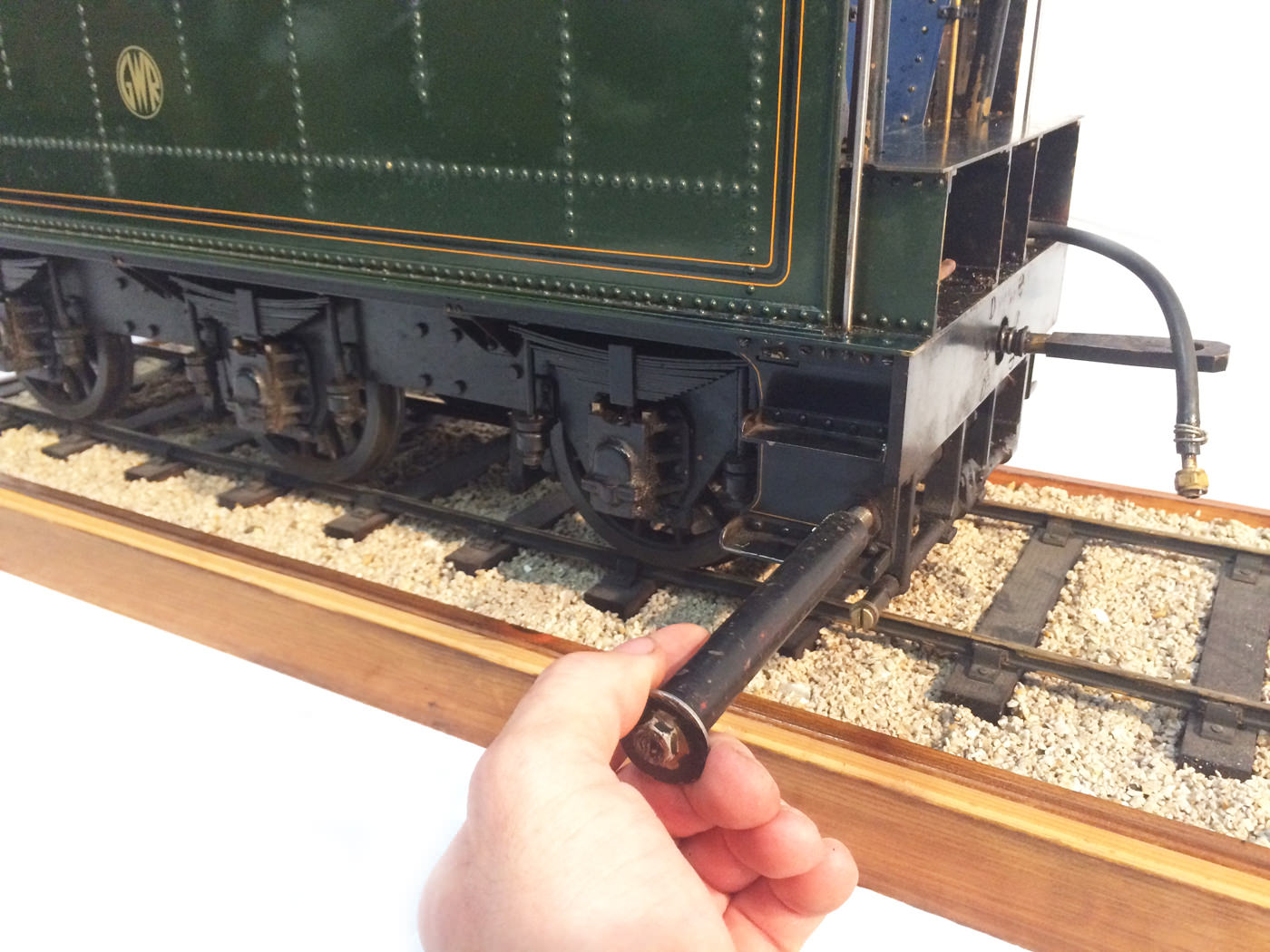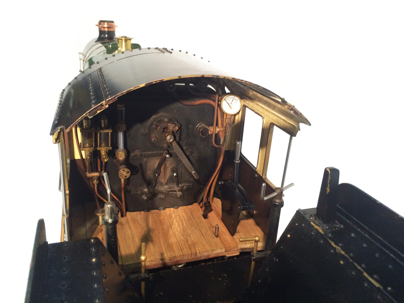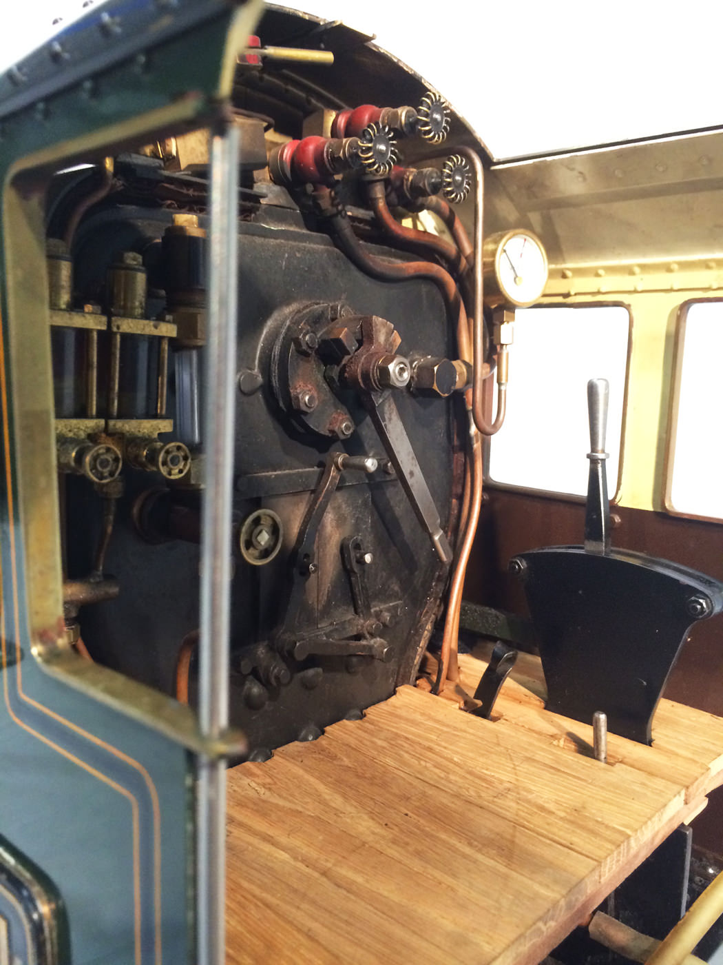 As implied, this is made to the Greenly drawings, and as such is not an absolutely perfect, prototypically accurate and detailed model. That said, it's not far off, and is certainly a very nice looking and reliable steamer ready to perform. There are twin injectors, a mechanical axle pump and of course the hand pump in the tender for the water. Lubrication is through a displacement hydrostatic lubricator, feeding through twin sight feeds on the footplate. Draincocks are of course footplate operated, and the reverser is quite an unusual sprung pole reverser. You push down on the lever and it releases from a notch under the arc. It's surprisingly comfortable to use, and certainly does away with all that winding if you intend using the loco on the ground level where points and the opportunity to shunt present themselves. A great loco to perhaps get involved with the GL5 world!
