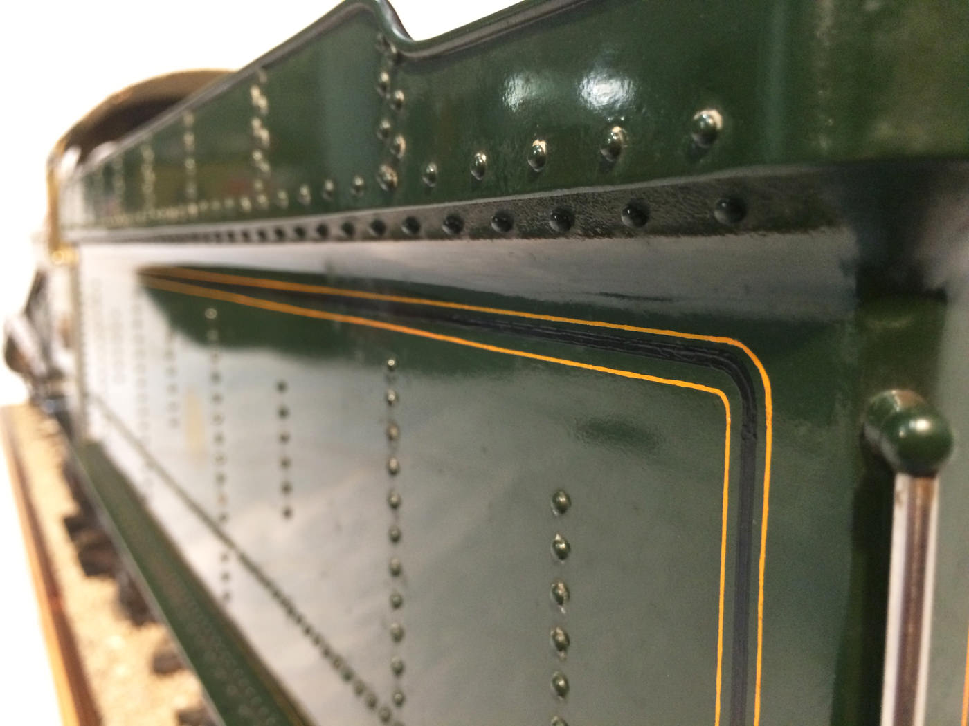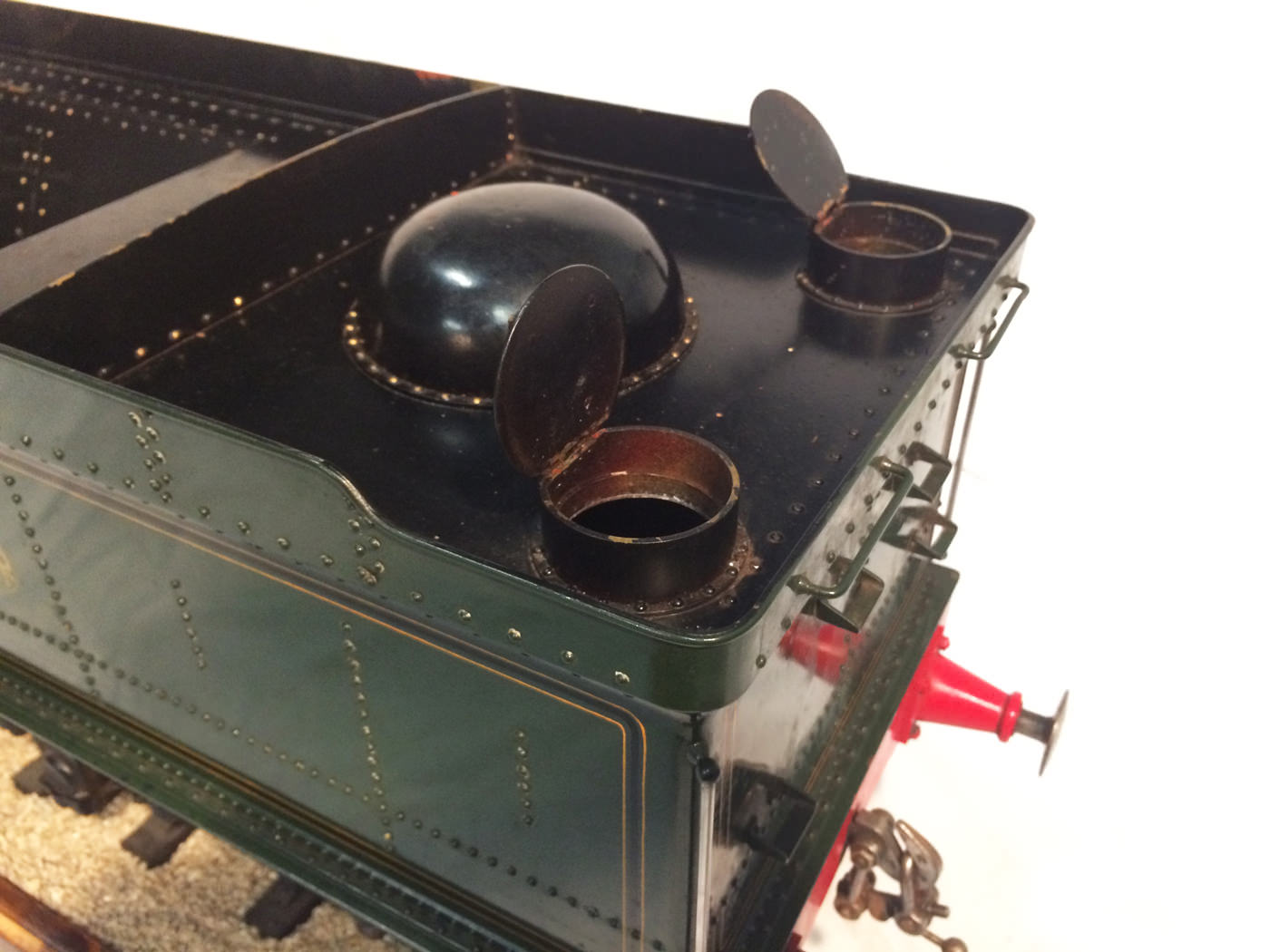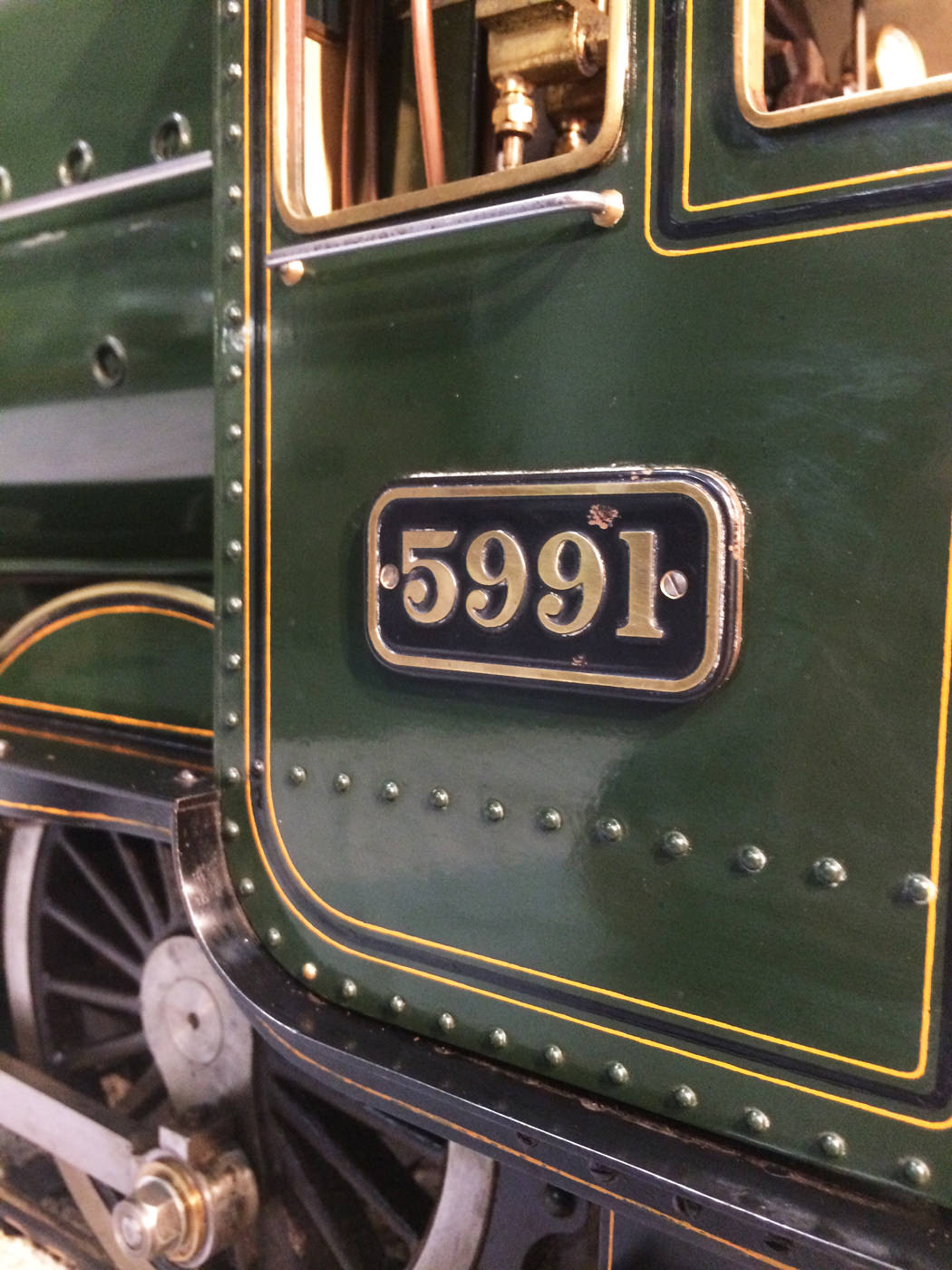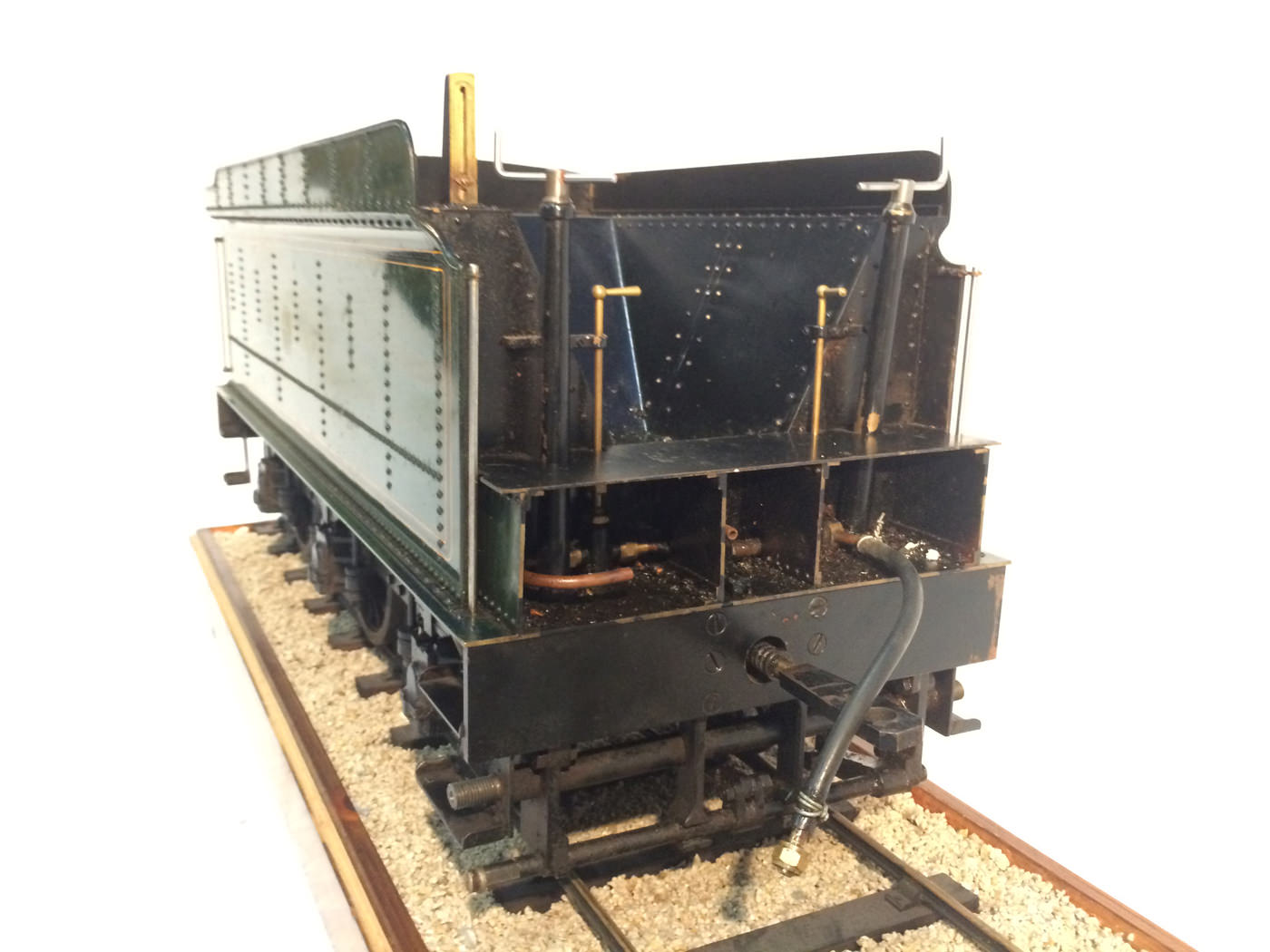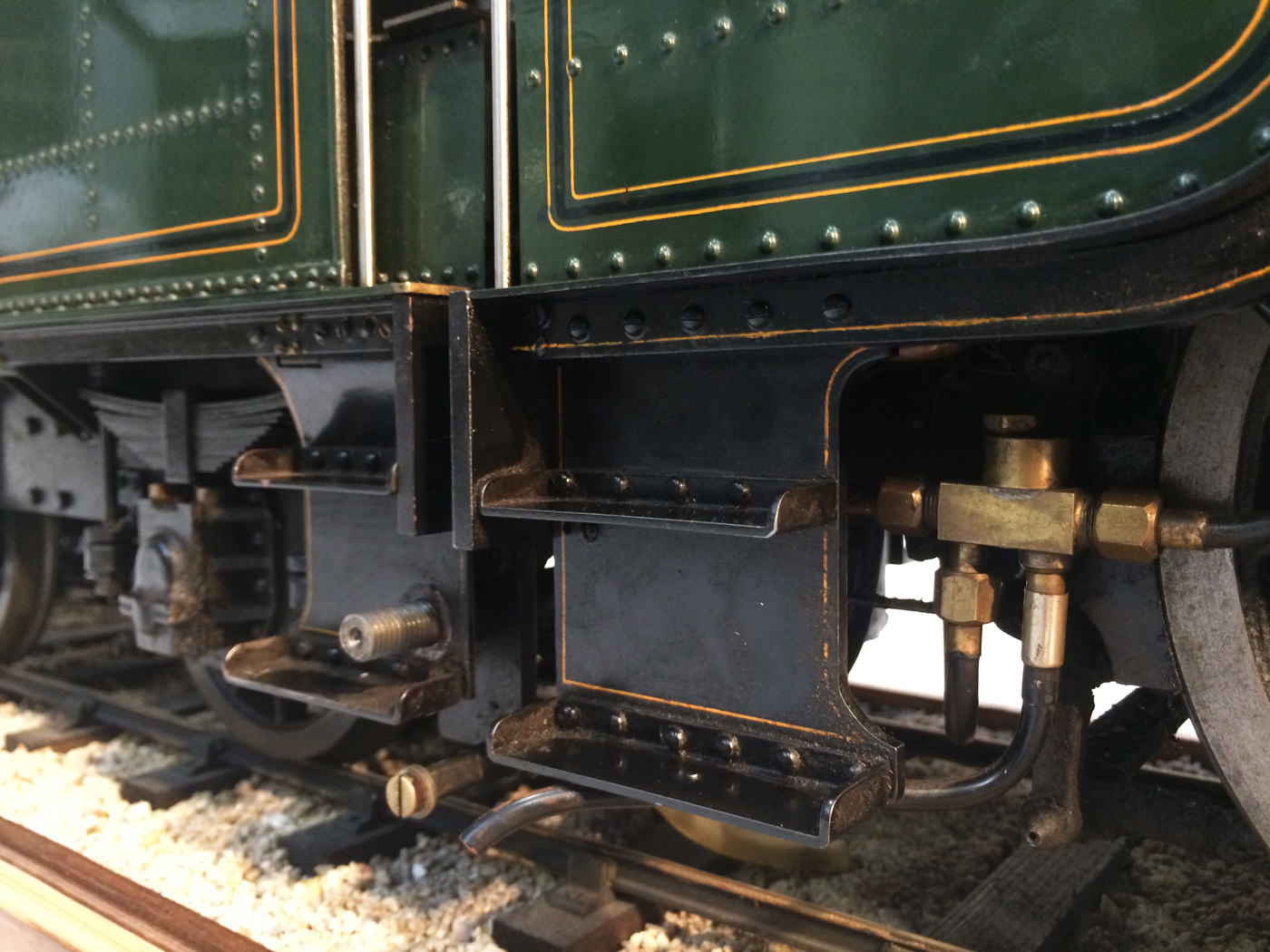 As implied, this is made to the Greenly drawings, and as such is not an absolutely perfect, prototypically accurate and detailed model. That said, it's not far off, and is certainly a very nice looking and reliable steamer ready to perform. There are twin injectors, a mechanical axle pump and of course the hand pump in the tender for the water. Lubrication is through a displacement hydrostatic lubricator, feeding through twin sight feeds on the footplate. Draincocks are of course footplate operated, and the reverser is quite an unusual sprung pole reverser. You push down on the lever and it releases from a notch under the arc. It's surprisingly comfortable to use, and certainly does away with all that winding if you intend using the loco on the ground level where points and the opportunity to shunt present themselves. A great loco to perhaps get involved with the GL5 world!
